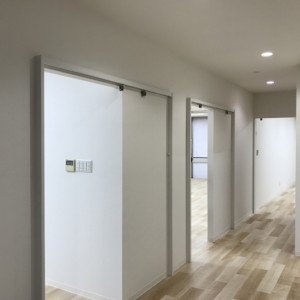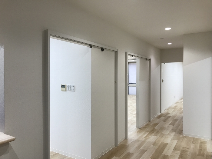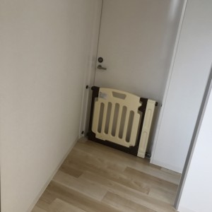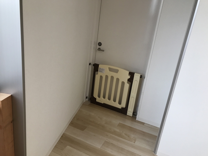 ドアに手を挟まないように隙間の空いたドアを取り付けています。柵や、施錠できるドアなど、安全対策も行っています。
