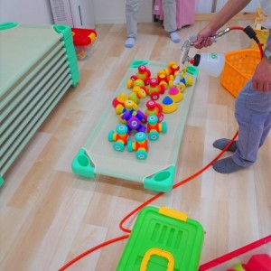 園内は、人にも環境にも優しい光触媒のコーティング施工(ナノゾーンソリューション)をしております。成分は酸化チタン・水・極微量のエタノールのみです。
