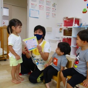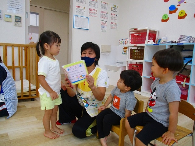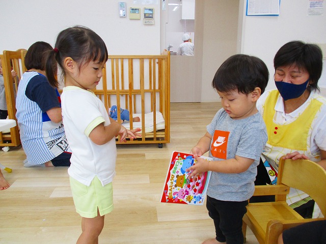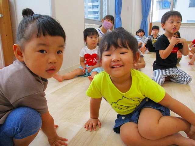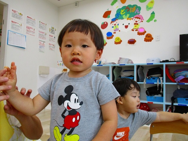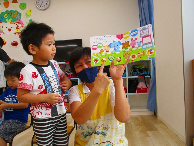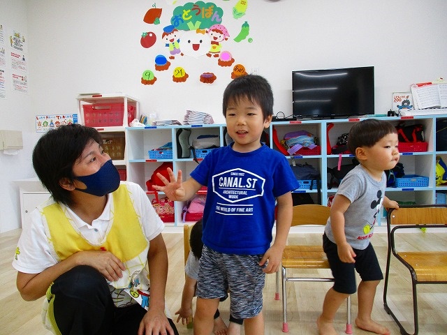 自分の名前や指で何歳になったのかを恥ずかしがりながらも 自分で言えていましたよ👍