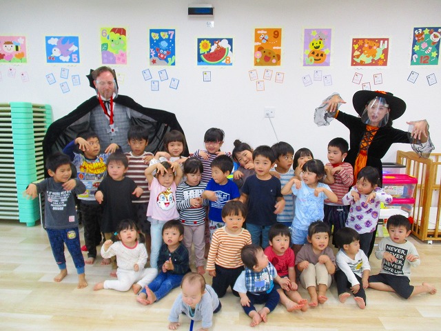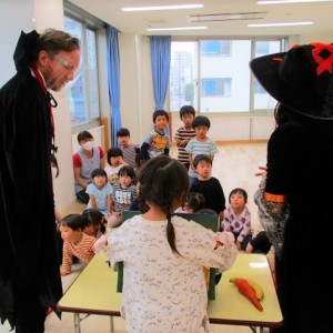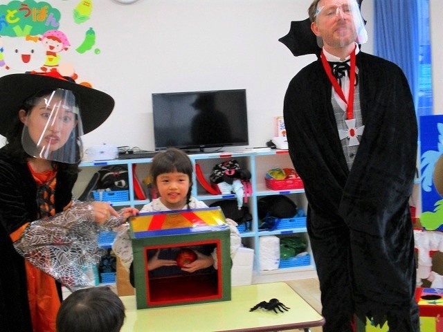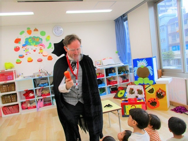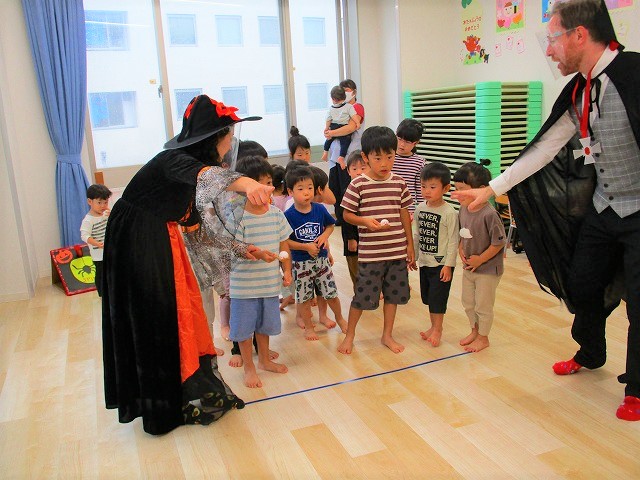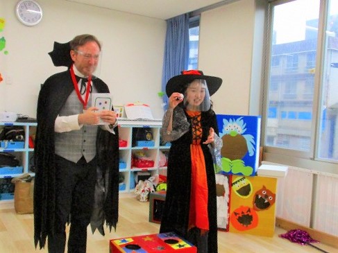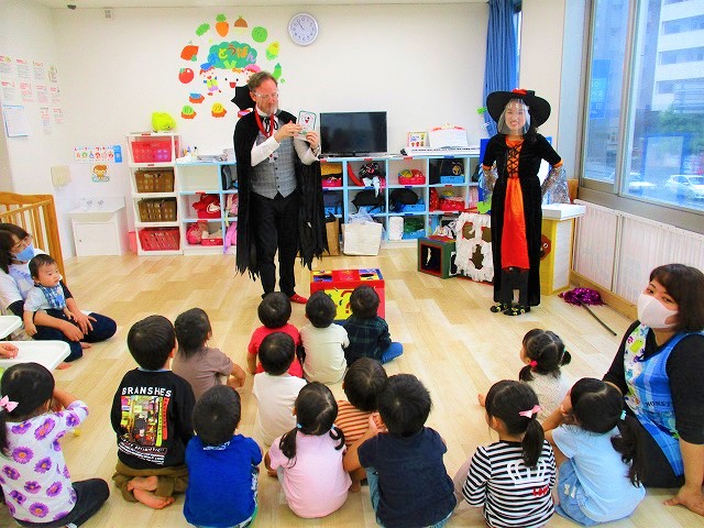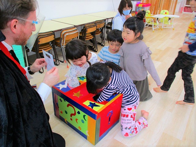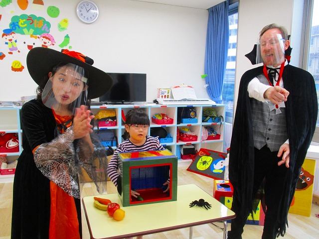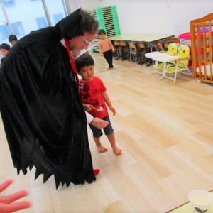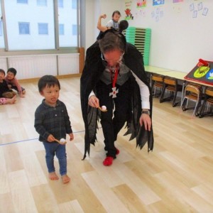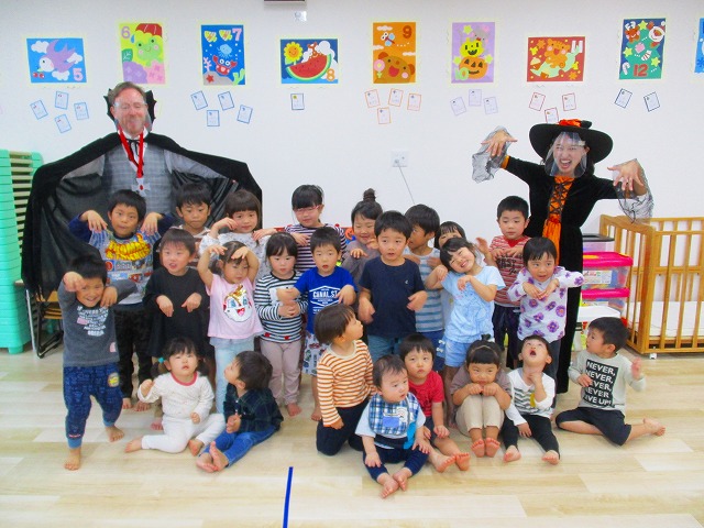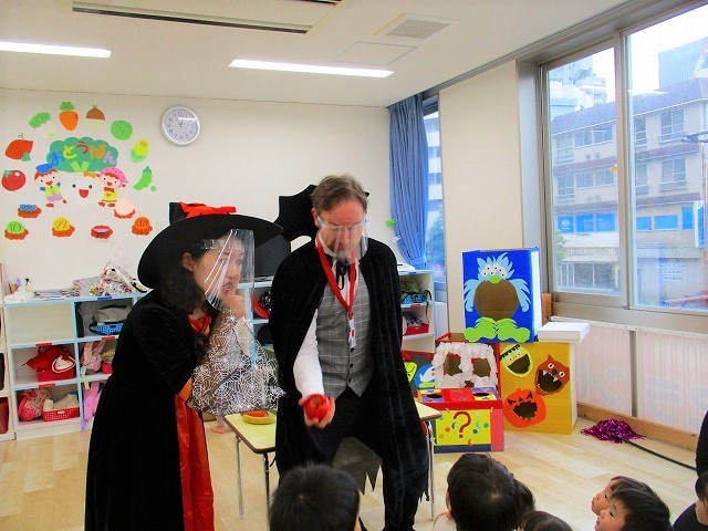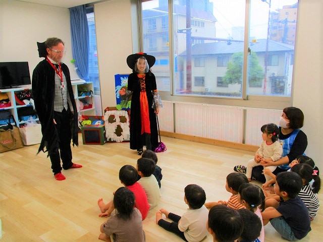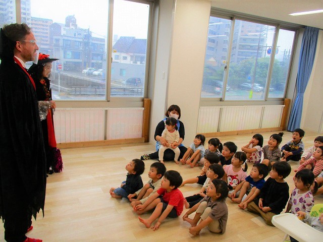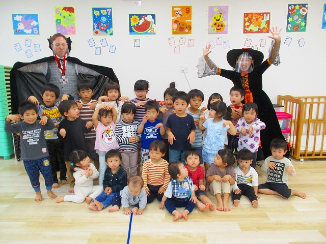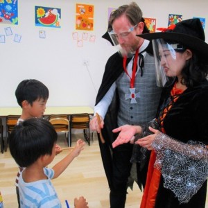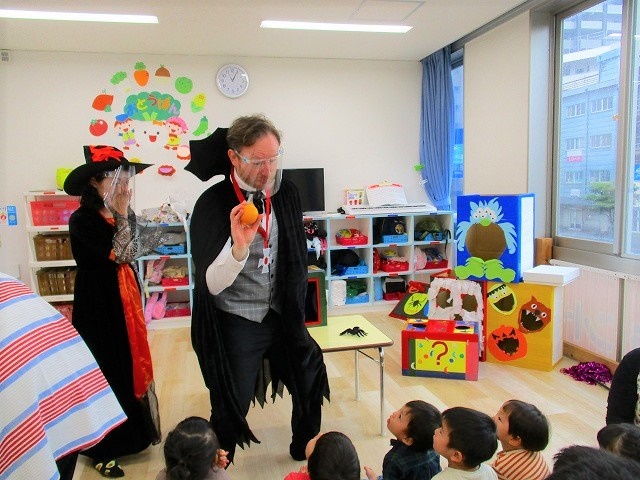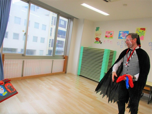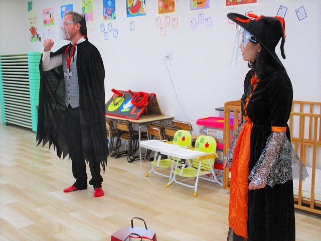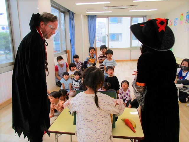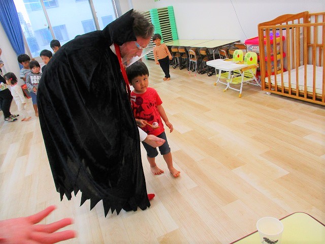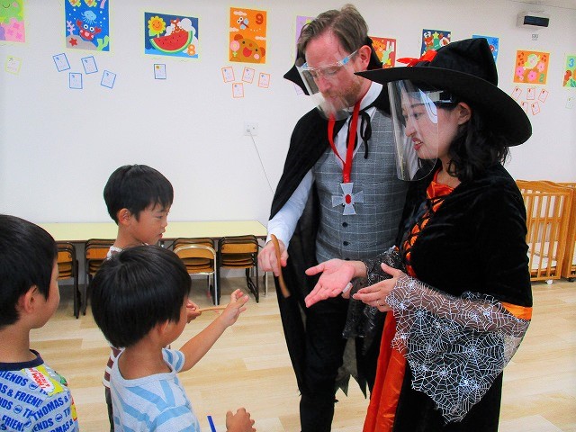 デイヴィット先生とかな先生の仮装に子どもたちも😯びっくり❗