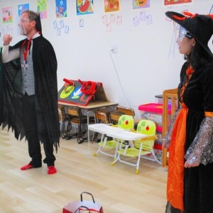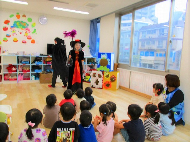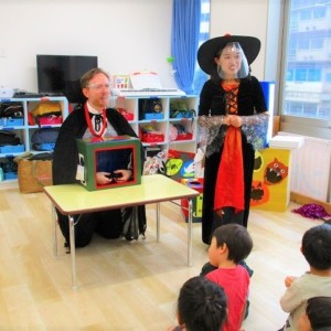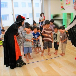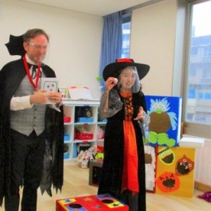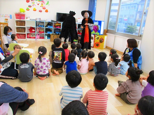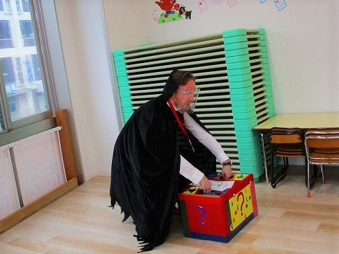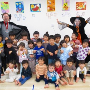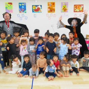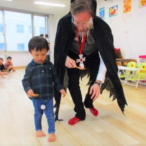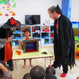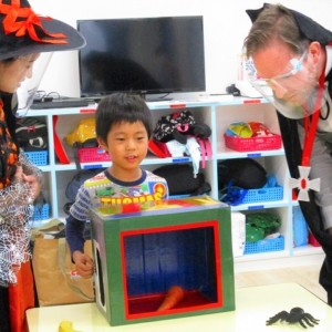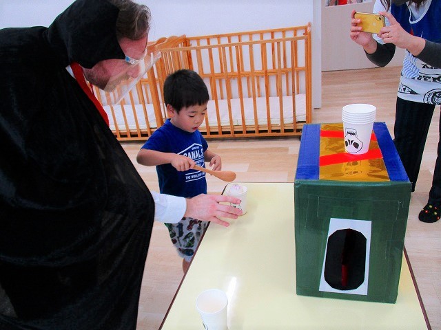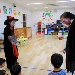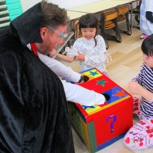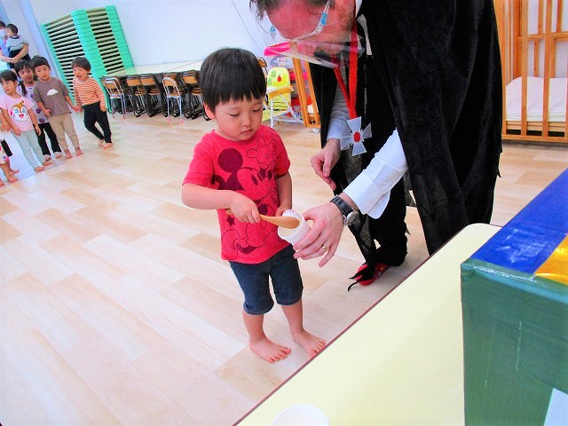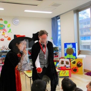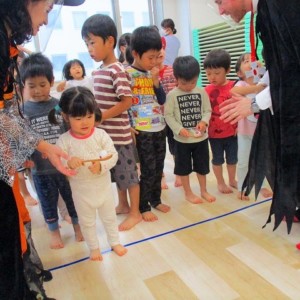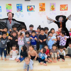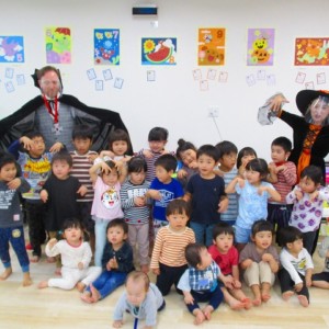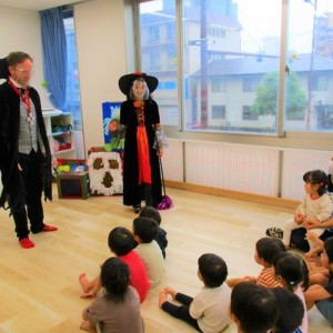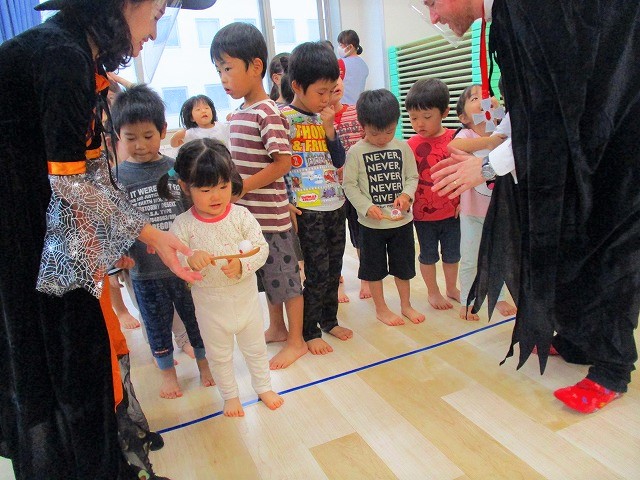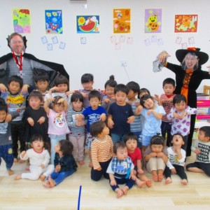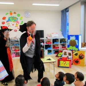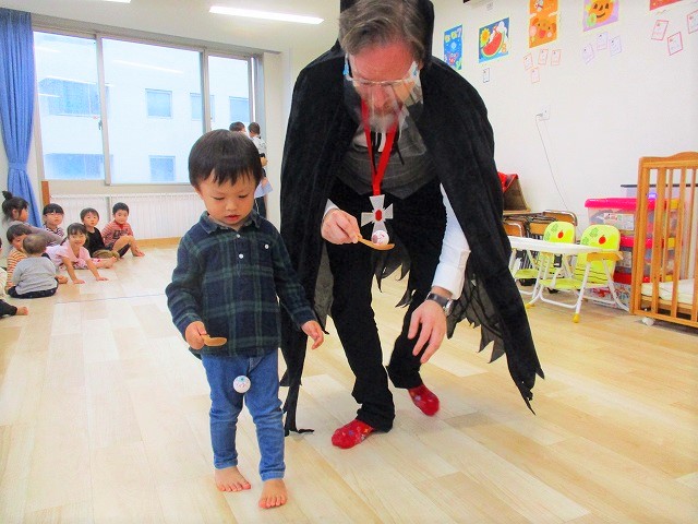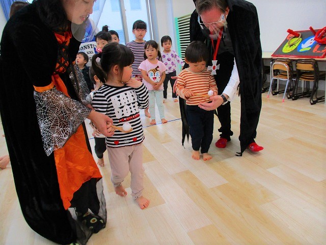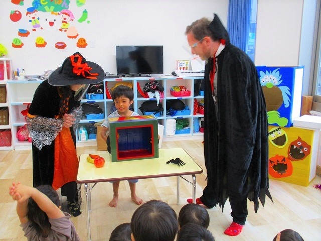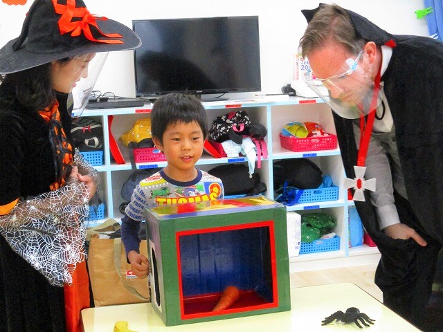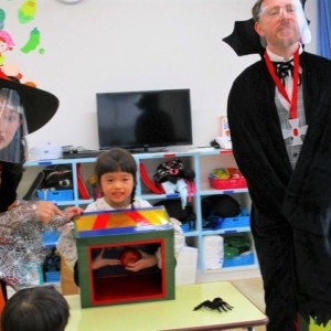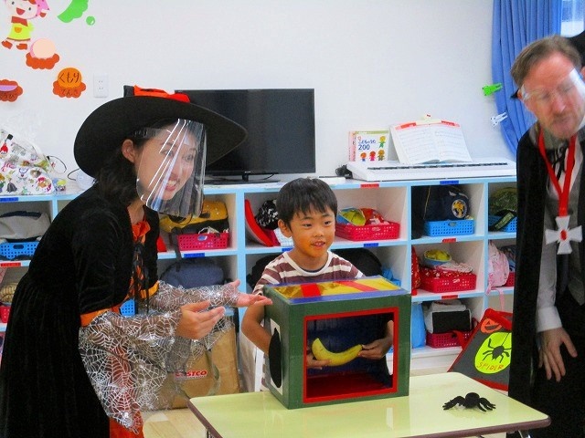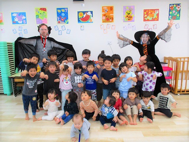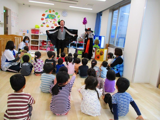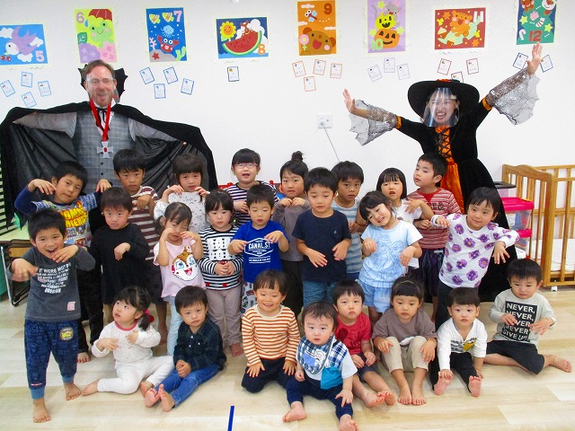 デイヴィット先生とかな先生の仮装に子どもたちも😯びっくり❗