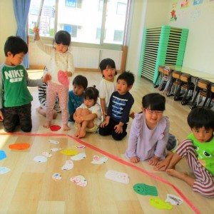 年長さんをリーダーにして5チーム作り
