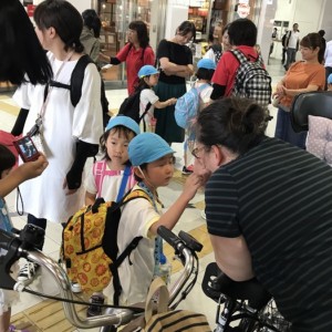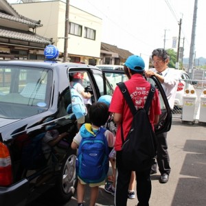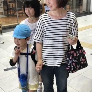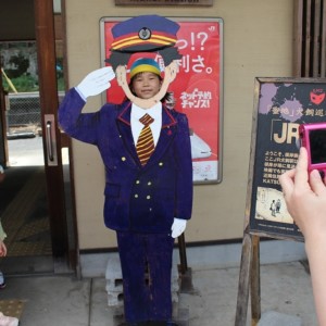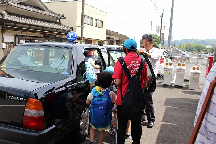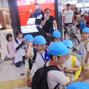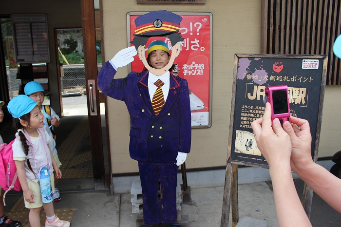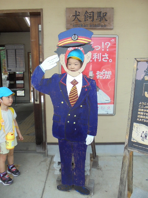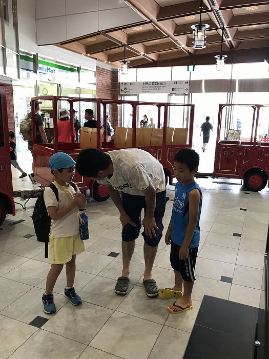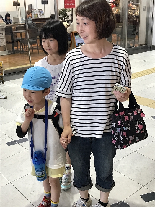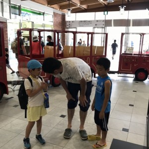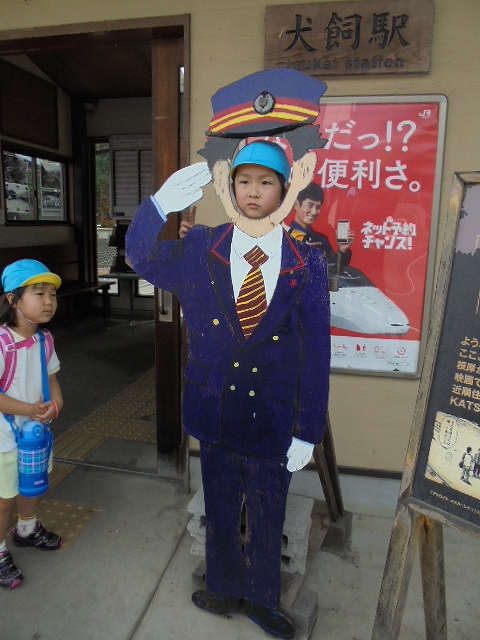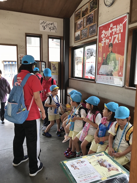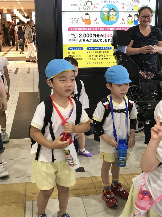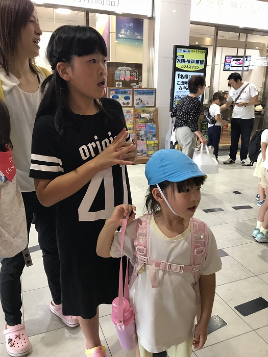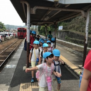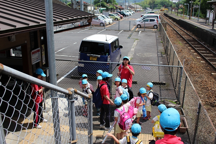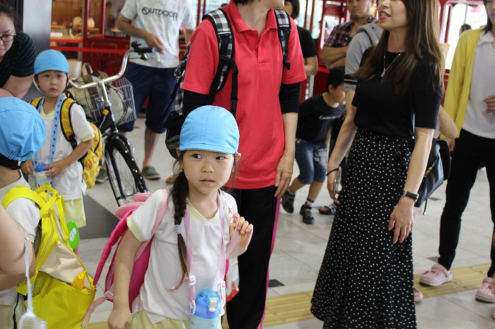 まずは、大分駅でおうちの方に見送られ、電車に乗って出発します。