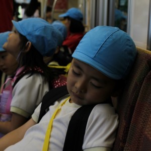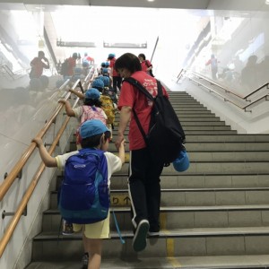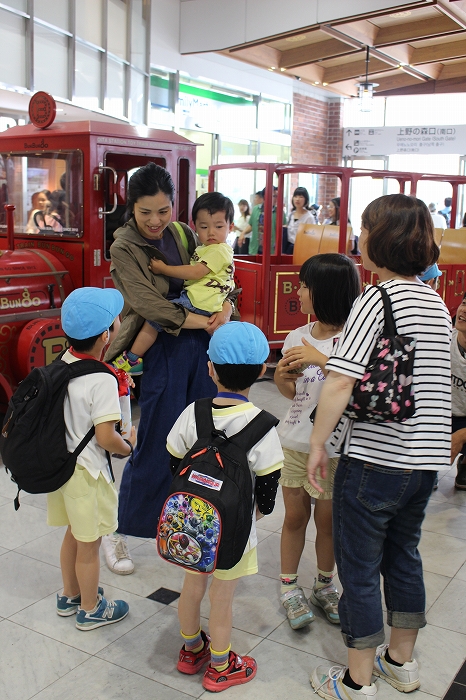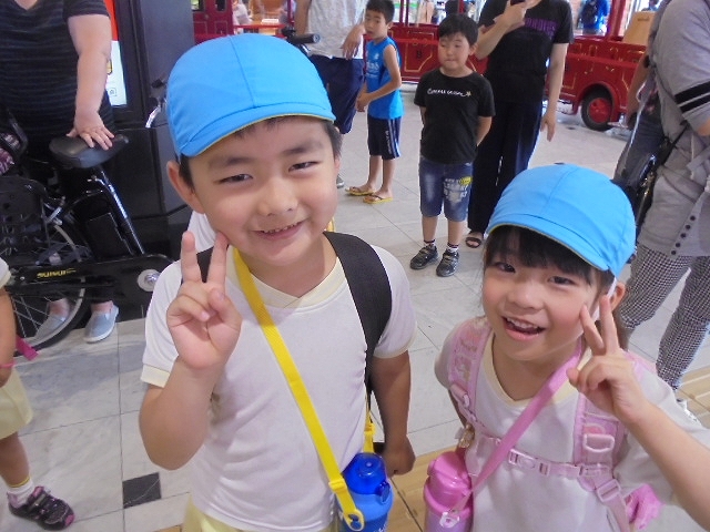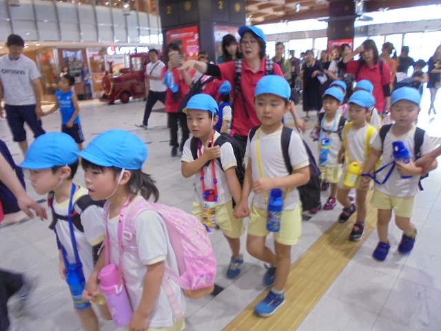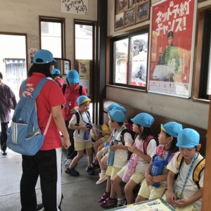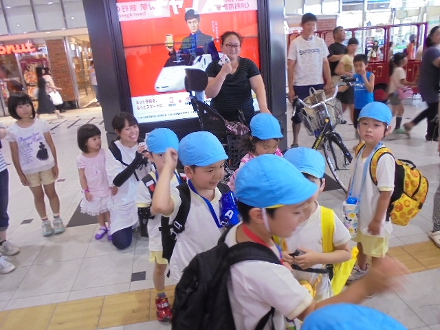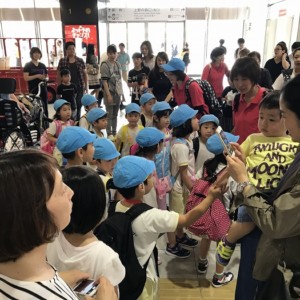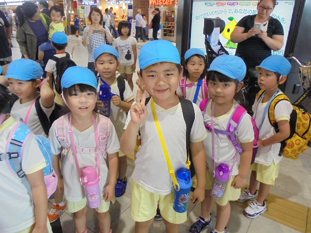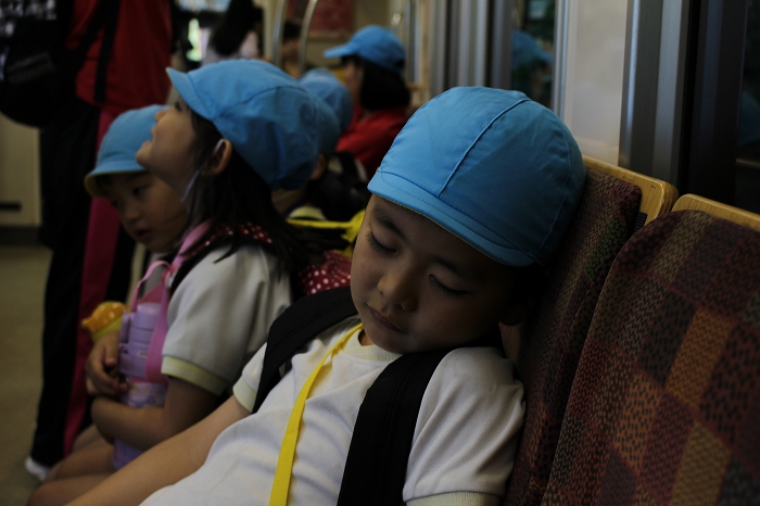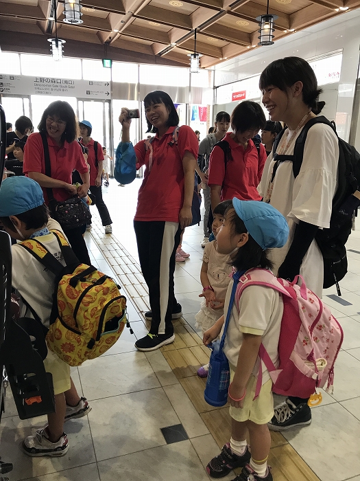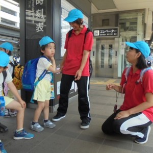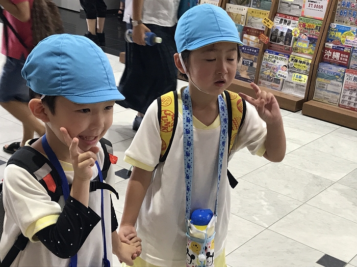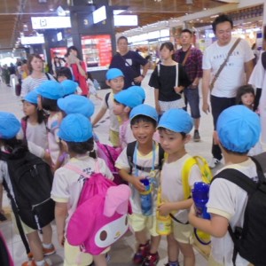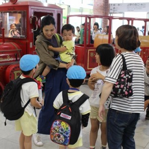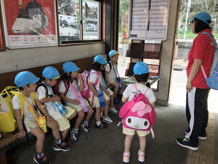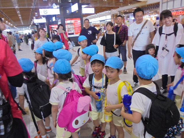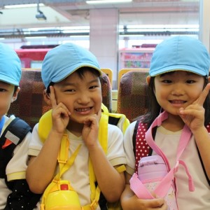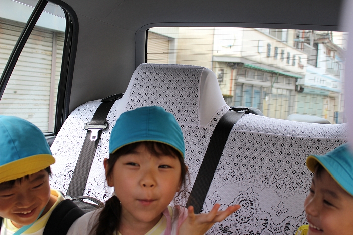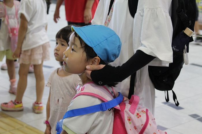 電車の中では、普段会えないおともだち。高砂園と南大分園のおともだちが交互に席に座りました。みんなちょっと最初は緊張しちゃったけど、時間が経つにつれ、慣れてきました。