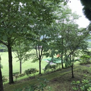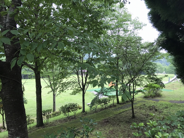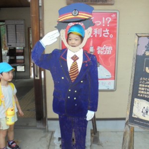 電車に乗って、犬飼駅に到着。行き先は「犬飼リバーパーク」です。高原に囲まれた風光明媚な開放的な場所です。ログハウスで一夜を過ごします。