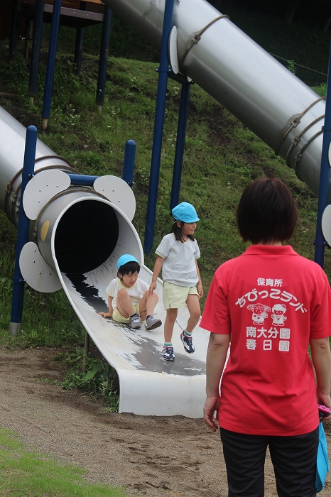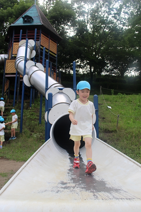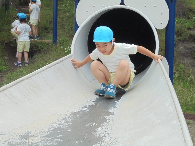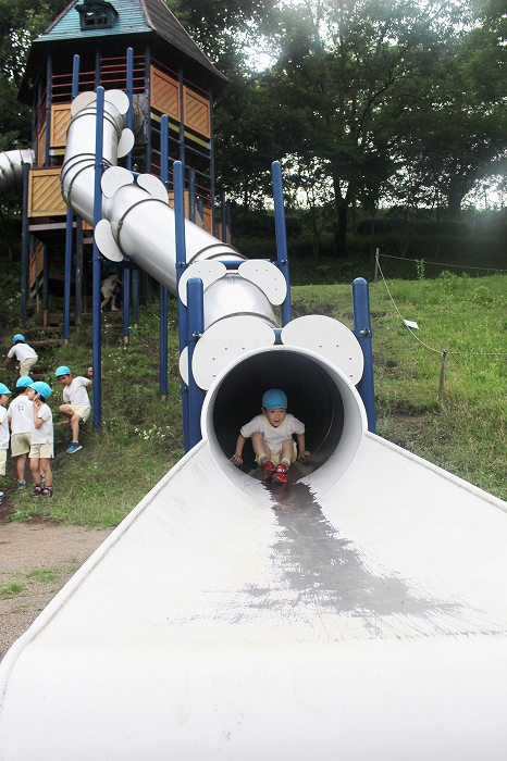 トンネルのすべり台はちょっと怖かったかな。でもみんな夢中で滑っていました。