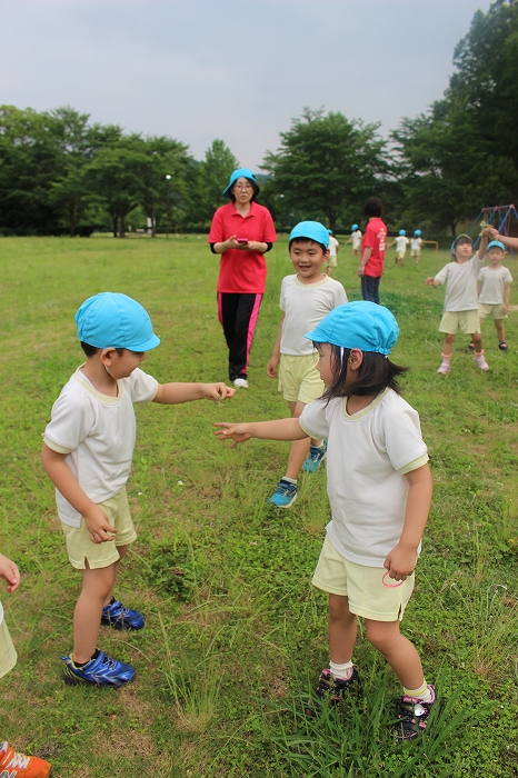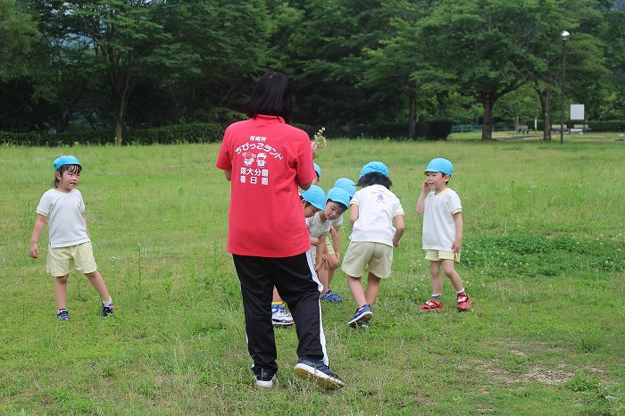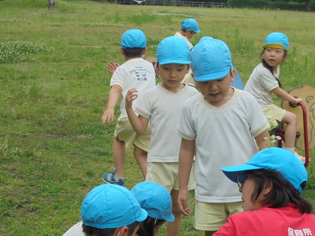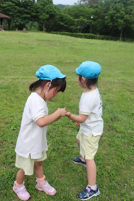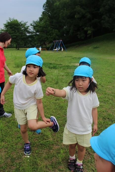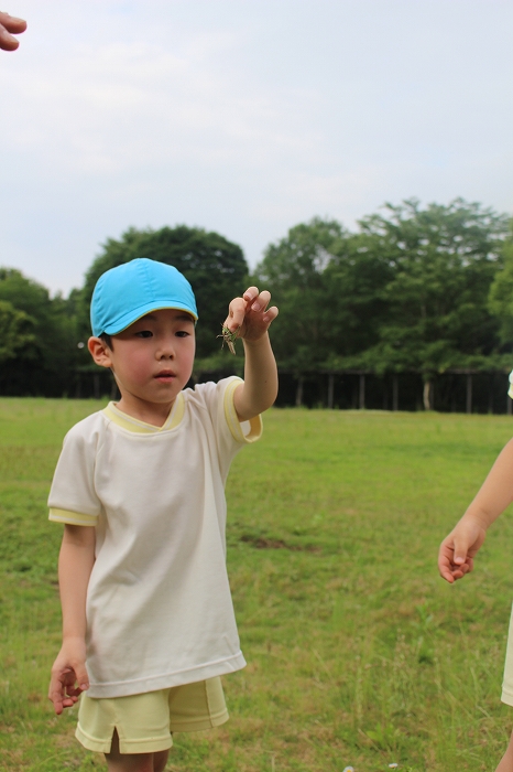 お天気もよくて、思い切り遊ぶことができました。ちいさなバッタをつかまえることもできたよ。バッタ大賞はるうたん!