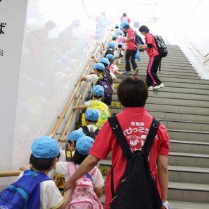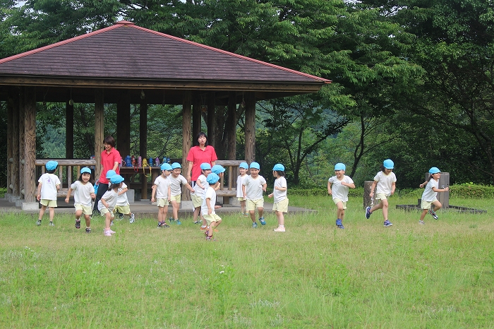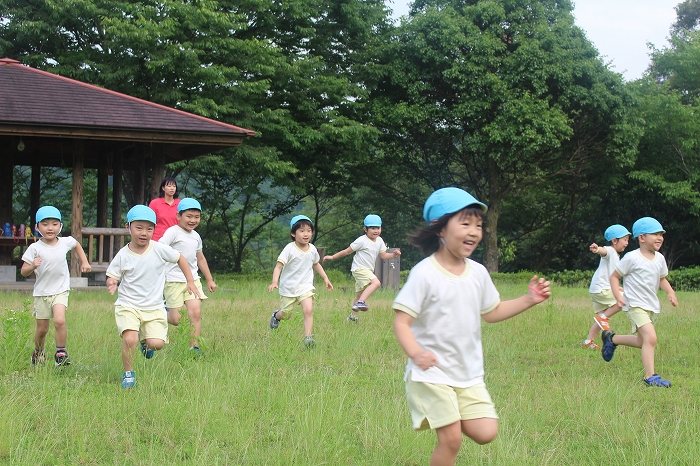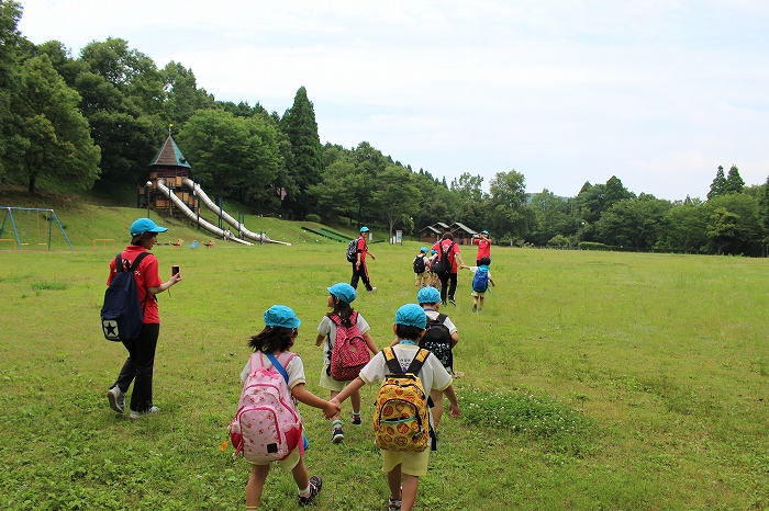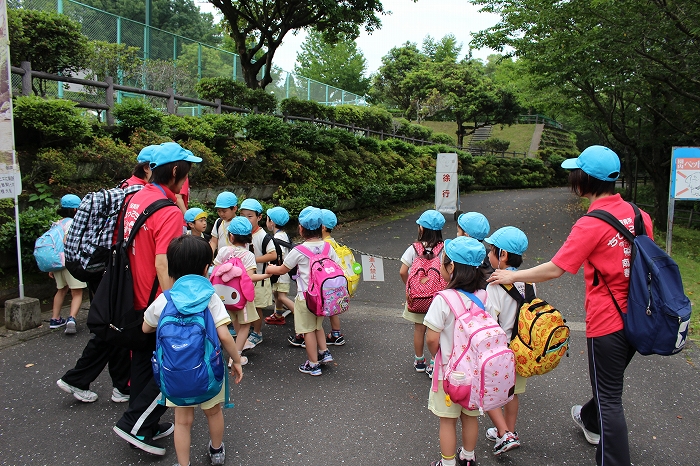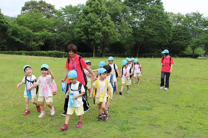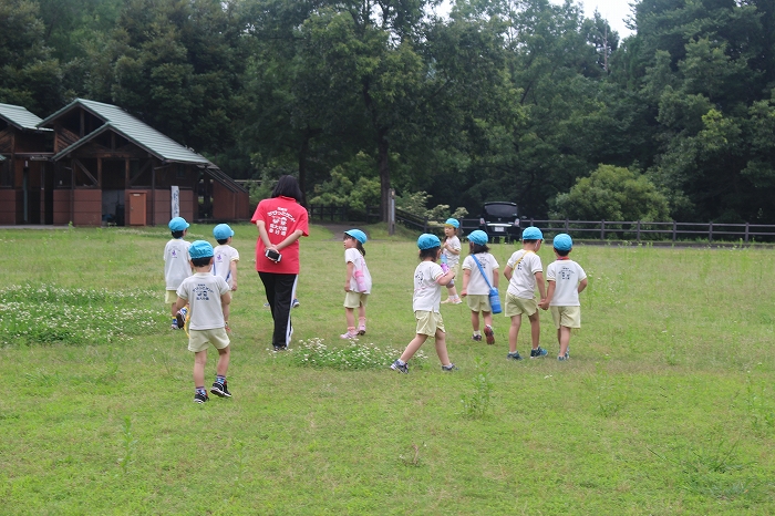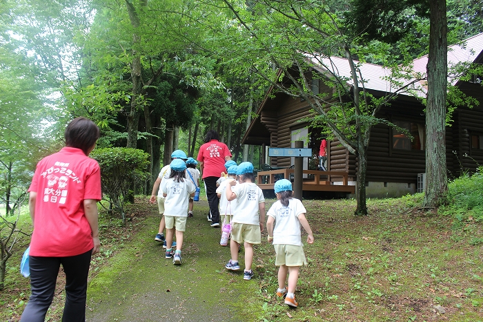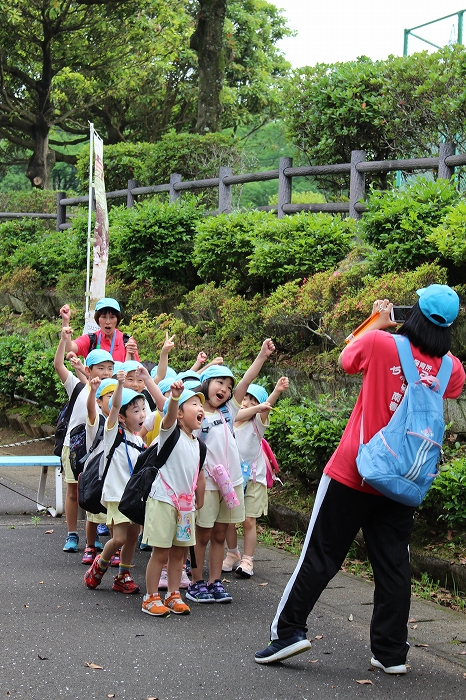 お母さん、お父さんと離れての小さな冒険。子どもたちにとっては大きな成長の第一歩となります。保護者の中には心配そうな表情の方もいましたが、どどーんとおまかせください!