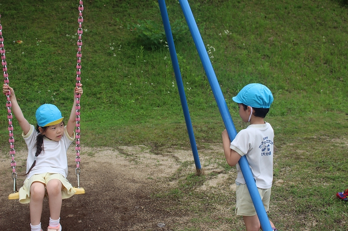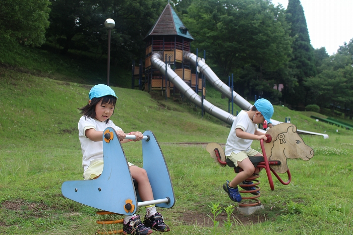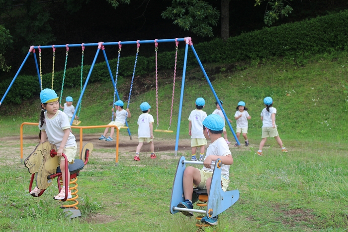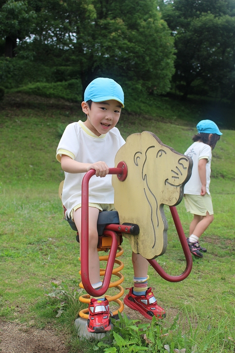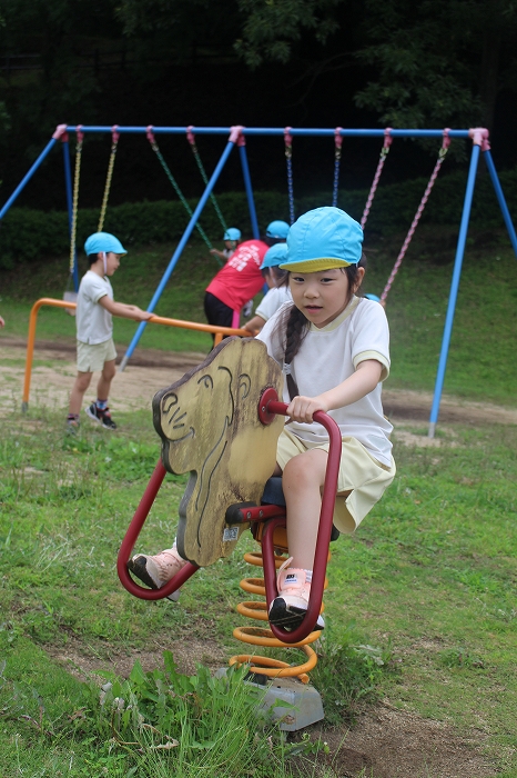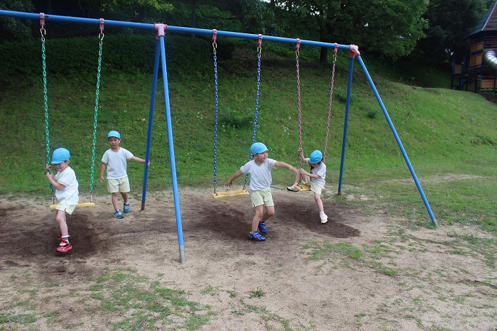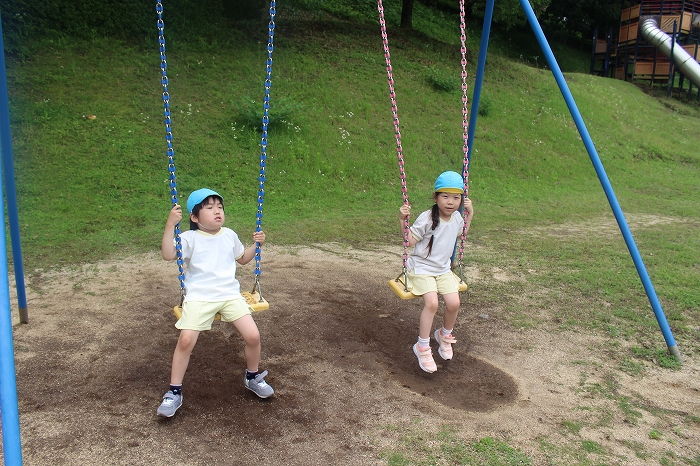 皮むきのあとは、外遊び。公園の遊具で思い切り遊びました。