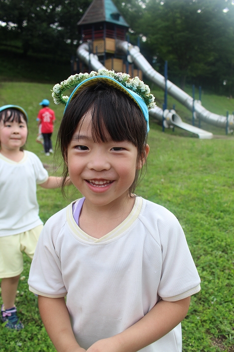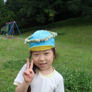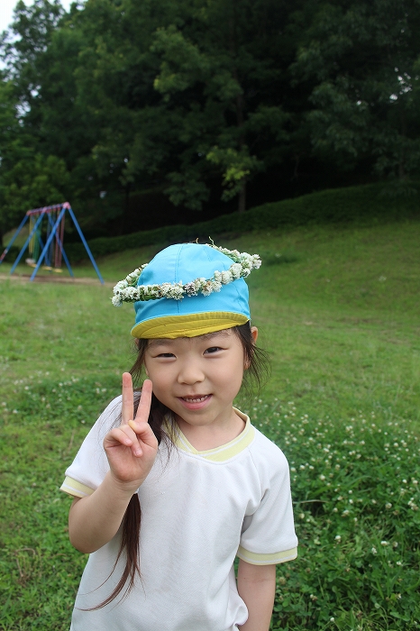 しろつめぐさのお花でかんむり。女の子の永遠の憧れ。