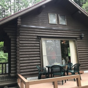 ログハウスに到着。まずは水分補給