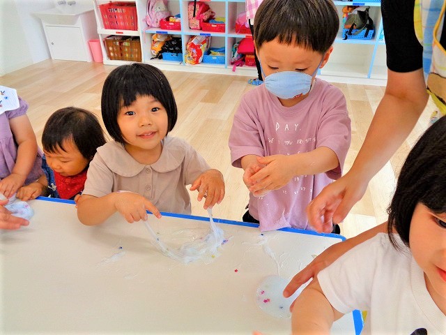 🍰6月生まれの誕生日会🍰 2021.06.24 ブログ 今日は6月生まれのお友だちの誕生日会でした🌟 今月はお誕生日のお友だちが1人でした❗ 「好きなカバン・絵本・おもちゃ・動物」など たくさんの質問をお友達がしてくれました🎵 大きな声で答えることができました❕❕ みんなにお祝いしてもらえてうれしそうでしたよ🎶 誕生日会の後はみんなでスライム遊びをしました❗ 前回に比べて柔らかかったので形にはなりませんでしたが 感触を楽しみ遊ぶことができました💖 Tweet Share +1 Hatena Pocket RSS feedly Pin it ブログ ✨スライム遊び✨ ゴー!ゴー!列車遊び🚄 ピックアップ記事 ブログ お泊り保育(その1) 2018.06.13ブログ おしらせ ちびっこランド大分高砂園いよいよ開園です! 2018.04.02おしらせ ブログ 突撃給食調査隊! 2018.07.14ブログ 関連記事一覧 ブログ 外遊び🤩 2025.05.23 ブログ こま回し大会💫 2021.01.14 ブログ 卒園式3月29日🌸 2020.03.29 ブログ 保育参観(2歳児以上) 2018.07.03 ブログ 🎨ボディペイント🎨 2023.10.02 ブログ 🎋たなばた会🎋 2023.07.06 ブログ 😊スライム遊び😊 2022.07.15 ブログ お泊り保育(その1) 2018.06.13