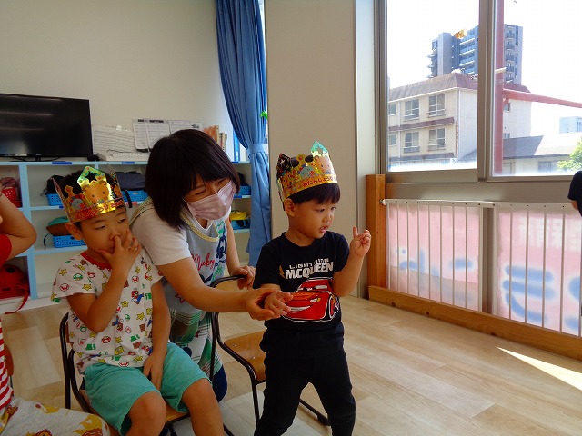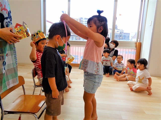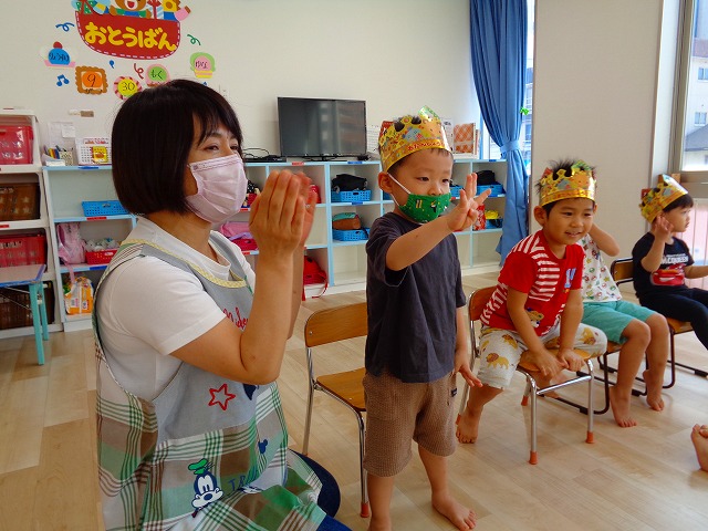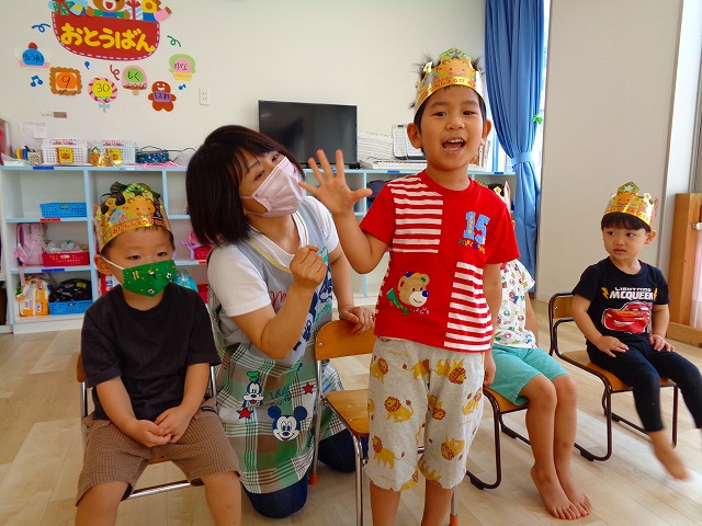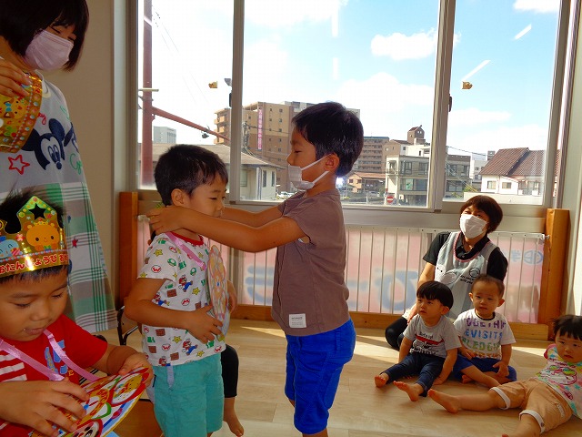 🎂『9月生まれのお誕生日会』🍰 2021.09.30 ブログ 今日は、9月生まれのお誕生日会でした🍰 6名の主役さんは、嬉しいのと恥ずかしそうな様子でした😊 お友だちから、バースデーソングを歌ってもらい、 沢山のインタビューをされると、とっても満足そうでした🎵 先生の出し物は、パネルシアター『どっちどっち』でした🎶 パネルの男の子の目が動くので夢中になって見ていましたよ💫 とっても楽しい時間になりました💓 Tweet Share +1 Hatena Pocket RSS feedly Pin it ブログ 新聞紙遊びをしたよ🎵 10月 えんだより🎃 ピックアップ記事 ブログ お泊り保育(その2) 2018.06.13ブログ ブログ スイミングスクールの様子 2018.06.26ブログ ブログ 突撃給食調査隊! 2018.07.14ブログ 関連記事一覧 ブログ 保護中: 🎊発表会 第一部🎊 2022.03.28 ブログ 🎋七夕会💕 2021.07.07 ブログ 🩺内科・歯科検診🦷 2022.11.17 ブログ 園の様子 製作 英会話 給食 🌸 2020.04.09 ブログ 1月17日コマ回し大会の様子 2019.01.17 ブログ からだを使って遊びました!10/15 2018.10.18 ブログ 風車作り 2022.05.19 ブログ 小麦粘土遊び 2021.05.14