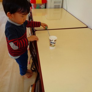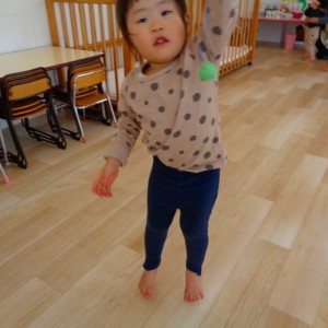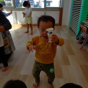大きいお友だち、練習して球が入るとすごーく嬉しそうな顔で