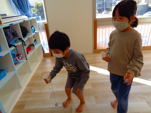今日は紙コップけん玉をしました💖