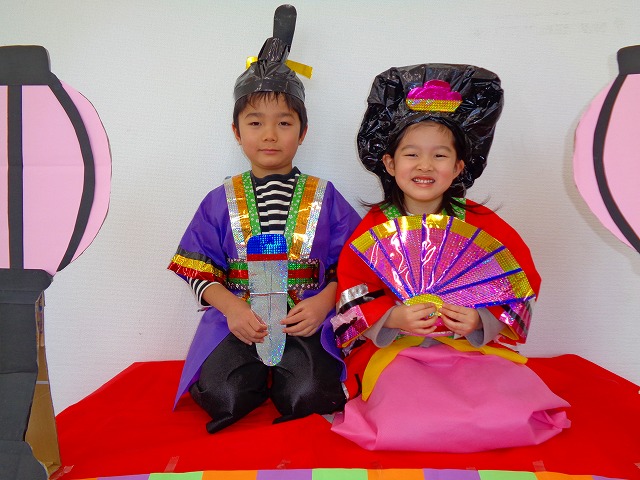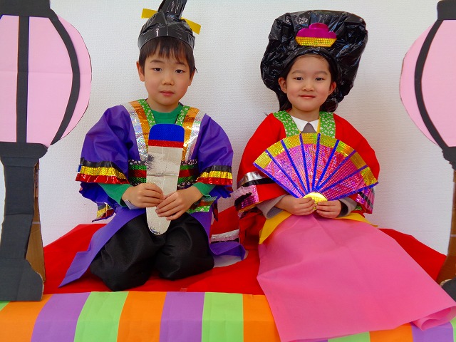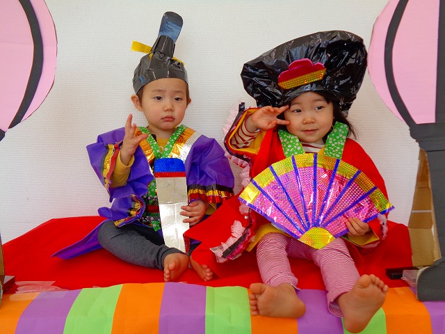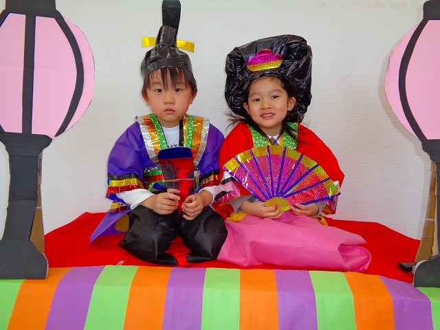 ひなまつり🎎 2022.03.03 ブログ 可愛い衣装を着て 写真を撮りました📷 少し恥ずかしそうにする子や 衣装を着るのを嫌がって泣く子もいましたが 最後まで頑張りました🎶 みんな素敵な男雛と女雛に変身💖 Tweet Share +1 Hatena Pocket RSS feedly Pin it ブログ 🍀3月のえんだより🌷 ダンスレッスン💃 ピックアップ記事 ブログ お泊り保育(その1) 2018.06.13ブログ ブログ お泊り保育(その2) 2018.06.13ブログ ブログ スイミングスクールの様子 2018.06.26ブログ 関連記事一覧 ブログ おにぎり遠足😆 2024.05.23 ブログ 👪親子遠足🎡 2021.10.27 ブログ 🎵積み木あそび🎵 2021.08.02 ブログ スイミング教室☆ 2019.08.11 ブログ 🎂6月生まれのお友だちのお誕生日会... 2022.06.23 ブログ 🎃ハロウィン 10/31 2019.11.08 ブログ 🎅サンタさんがきたよ🎅 2021.12.24 ブログ 🎂1月生まれの誕生日会🎂 2022.01.27