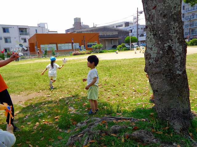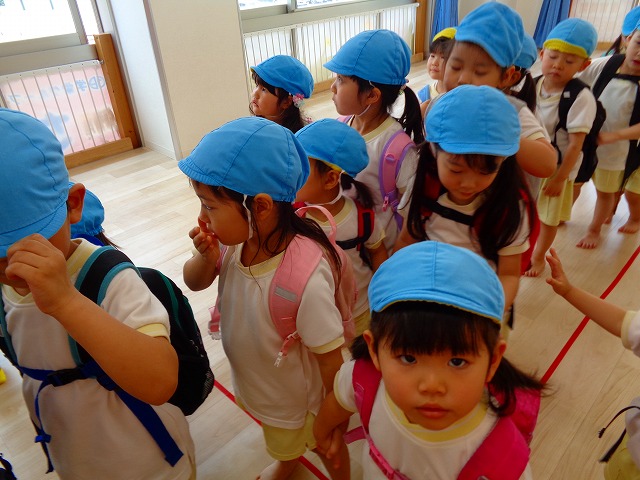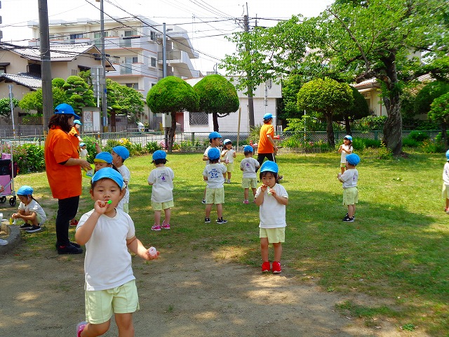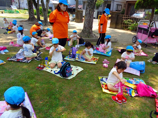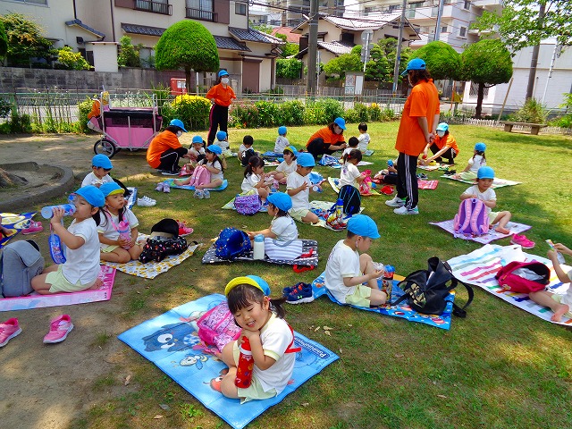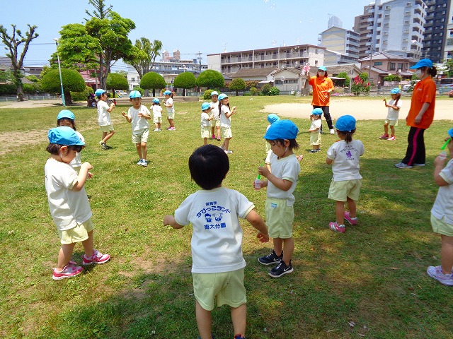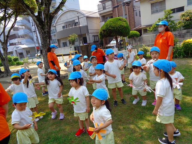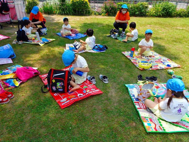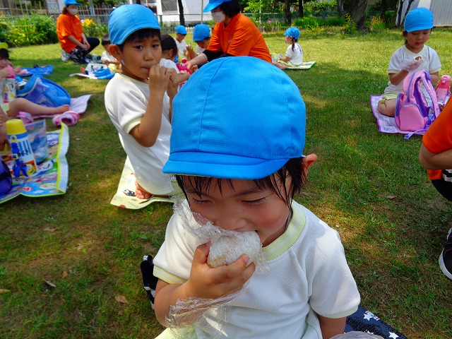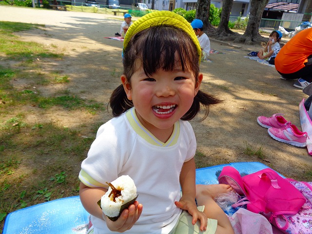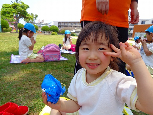 🍙おにぎり遠足🍙 2022.05.25 ブログ 今日はおにぎり遠足でした🍙 朝からわくわくが止まらない子ども達🎶 お母さんに作ってもらったおにぎりの話を 楽しそうに話している子もいましたよ~💖 朝の会までして・・・・ いざ❗ 出発❗❗ 小さい子と大きい子でペアになって手をつないでいきました🌟 周りの景色をみながら歩く子ども達・・ 暑さとカバンの重さで少し疲れていましたが 公園に着くと製作で作ったMY風車で汗びっしょりになりながら走り回ったり シャボン玉を飛ばして遊んだりと楽しむ姿がみられました💓 たくさん遊んだ後は昼食・・🍙 お母さんが作ったおにぎりを大きなお口でほおばっていました😊 「おいしー💓」といいながら食べていましたよー🎵 食べた後はまた歩いて園まで帰りました✨ Tweet Share +1 Hatena Pocket RSS feedly Pin it ブログ ☔6月制作 👑5月のお誕生日会 ピックアップ記事 ブログ お泊り保育(その2) 2018.06.13ブログ おしらせ ちびっこランド大分高砂園いよいよ開園です! 2018.04.02おしらせ ブログ 突撃給食調査隊! 2018.07.14ブログ 関連記事一覧 ブログ 🎇あきまつり🎇 2023.10.16 ブログ 運動会の練習をしています 2018.09.13 ブログ 4月のお誕生日会をしました/園での一日のようす 2018.04.27 ブログ 😈節分会😈 2023.02.02 ブログ 園の様子🌷1/18 2020.01.21 ブログ 🎂1月生まれの誕生日会🎂 2022.01.27 ブログ 保護中: 🎊発表会 第二部🎊 2022.03.28 ブログ 🎄12月の製作🎄 2022.11.14