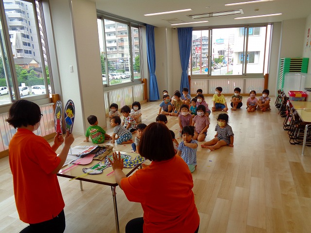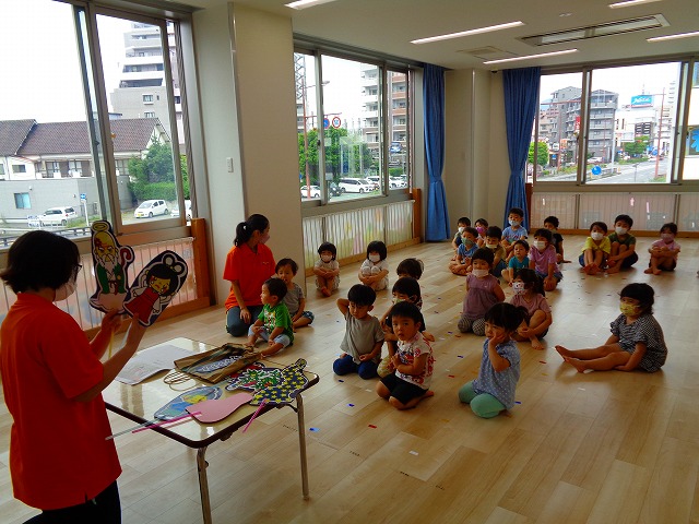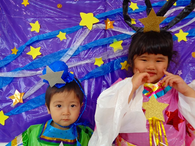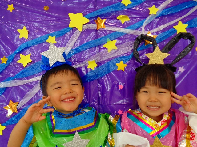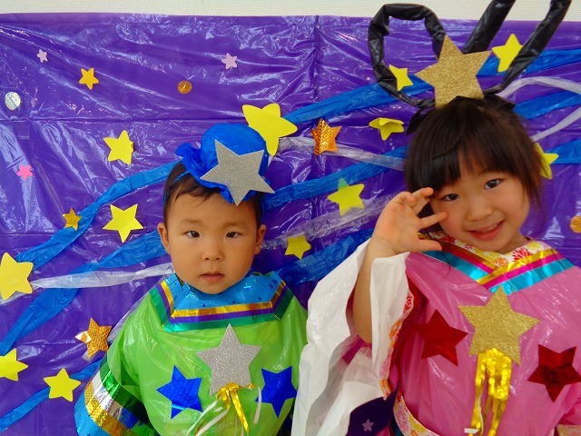 🎋七夕🎋 2022.07.07 ブログ 7月7日は七夕🌠子ども達も朝からソワソワしています🎵 最初は七夕のペープサート💓 話の中で神様が出るを「あ、おじいさん❗」の声。 その発言にみんな大笑いでした💞 その後は静かに聞いていたので七夕の意味もしっかり理解できたようです🎶 次は織姫と彦星の衣装を着て撮影会📷 写真を撮るときは誰と撮ろうか、どんなポーズにしようかと お友だちと考える姿も見られました💓 可愛い写真もできて楽しい七夕会になりました💓 Tweet Share +1 Hatena Pocket RSS feedly Pin it ブログ 💭小麦粘土遊び🌀 🎉色々遊び🎉 ピックアップ記事 おしらせ ちびっこランド大分高砂園いよいよ開園です! 2018.04.02おしらせ ブログ 突撃給食調査隊! 2018.07.14ブログ ブログ お泊り保育(その1) 2018.06.13ブログ 関連記事一覧 ブログ 🍰2月生まれのお誕生日会🍰 2021.02.25 ブログ 内科・歯科検診👨ɩ... 2020.06.18 ブログ ツリー飾りつけ 2019.12.05 ブログ 公園で遊びました 2018.05.24 ブログ いも 苗植え🌱 2020.05.21 ブログ 🌟7月のお誕生日会🌟 2022.07.28 ブログ おままごと・製作・フルーツバスケット 2019.07.15 ブログ 🎋七夕会💕 2021.07.07