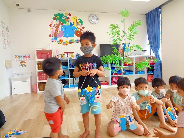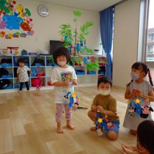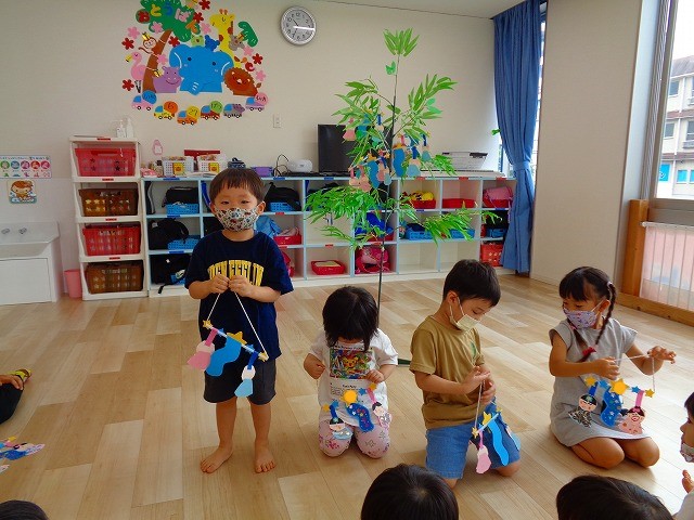 🎋七夕飾り付け🎋 2022.06.27 ブログ 今日は七夕の飾り付けをしました✨ それぞれクラスごとに前に立ってもらい 作品をみんなに見てもらいながら願い事を発表してもらいました🌠 しっかり願い事を言った後は自分で好きなところに飾り付けをしましたよ~💖 Tweet Share +1 Hatena Pocket RSS feedly Pin it ブログ 🌟新聞紙遊び🌟 💭小麦粘土遊び🌀 ピックアップ記事 おしらせ ちびっこランド大分高砂園いよいよ開園です! 2018.04.02おしらせ ブログ 突撃給食調査隊! 2018.07.14ブログ ブログ スイミングスクールの様子 2018.06.26ブログ 関連記事一覧 ブログ 🌞お散歩🌞 2023.11.15 ブログ ダンス🕺 2020.04.07 ブログ 🎂3月 お誕生日会🎂 2023.03.23 ブログ ☆運動会通し練習☆彡10/16 2019.11.08 ブログ 😈節分会😈 2023.02.02 ブログ 🎂誕生日会🎂 2021.11.25 ブログ コマ回し大会✨ 2024.01.18 ブログ 🎎おひなまつり会🎎 2023.03.02