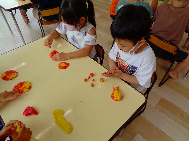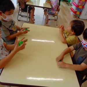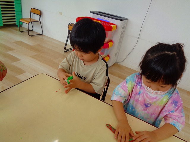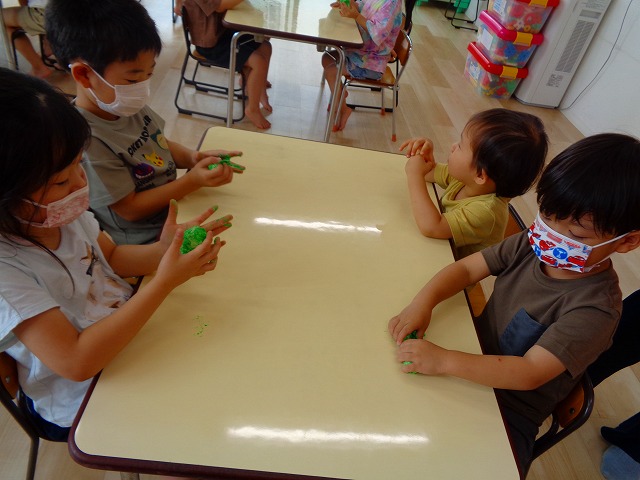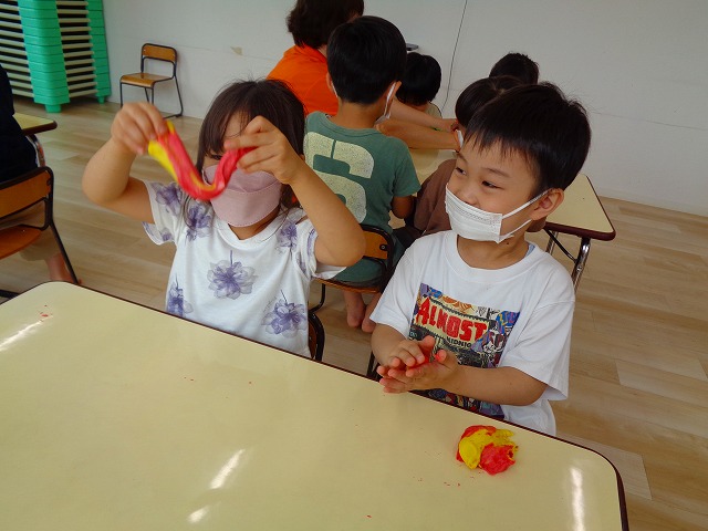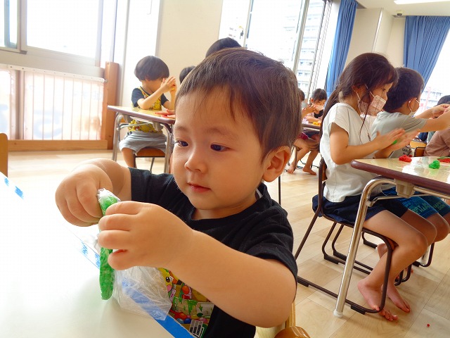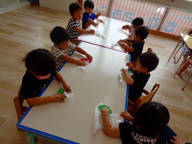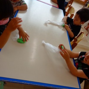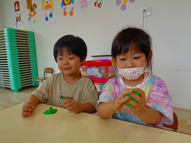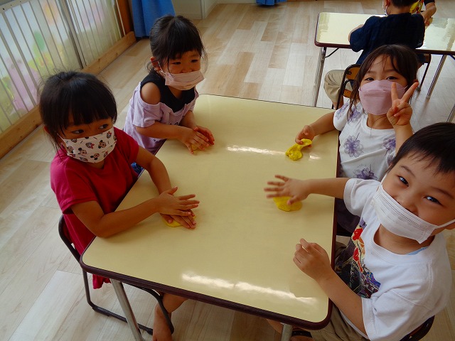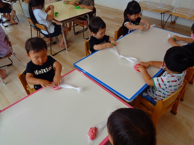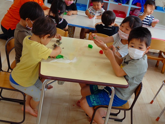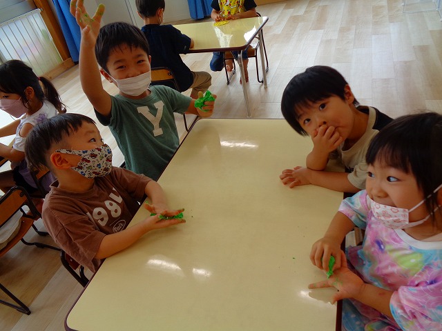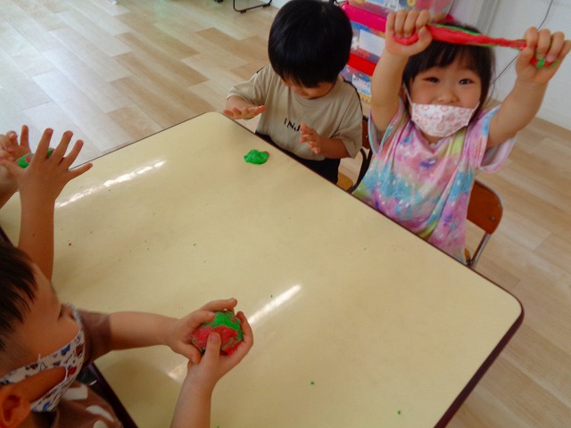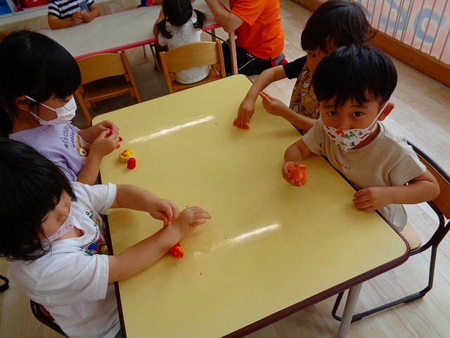 💭小麦粘土遊び🌀 2022.07.04 ブログ 今日は小麦粘土遊びをしました🎶 先生たちがこねている小麦粘土に興味津々の子ども達・・・ 小さい子は袋にいれて遊びましたが ぺちぺち叩いたり、つぶしたりと感触遊びを楽しんでいました🎶 大きい子たちは2色の粘土を混ぜて色の変化を楽しんだり 好きな形を作って見せ合ったりして楽しんでいましたよ~💞 Tweet Share +1 Hatena Pocket RSS feedly Pin it ブログ 🎋七夕飾り付け🎋 🎋七夕🎋 ピックアップ記事 ブログ お泊り保育(その2) 2018.06.13ブログ おしらせ ちびっこランド大分高砂園いよいよ開園です! 2018.04.02おしらせ ブログ 突撃給食調査隊! 2018.07.14ブログ 関連記事一覧 ブログ 🌟7月のお誕生日会🌟 2022.07.28 ブログ 👹鬼のお面製作👹 2022.01.17 ブログ 💌サンタさんへの手紙💌 2021.12.02 ブログ いもほりごっこ🍠 2020.10.20 ブログ 🏅進級式💐 2021.04.01 ブログ 七夕会☆ 2019.07.04 ブログ 保護中: 📣大運動会📣 2022.10.09 ブログ 🩺内科歯科検診🦷 2023.11.16