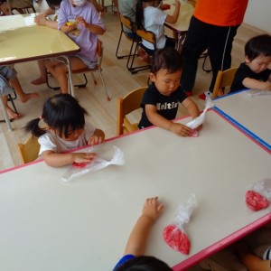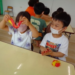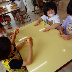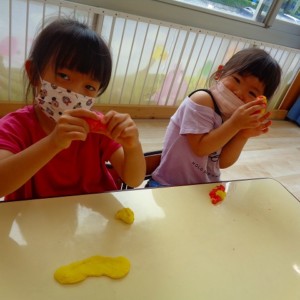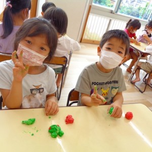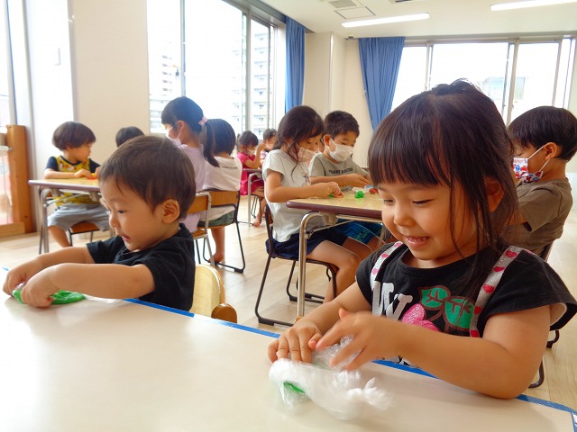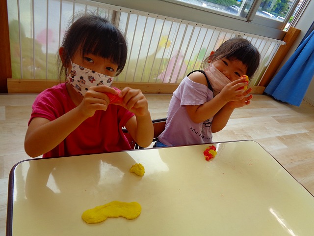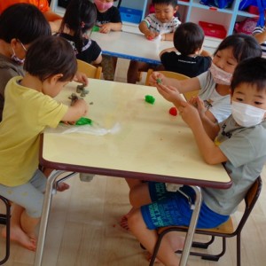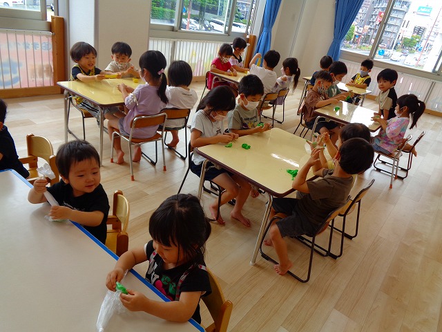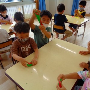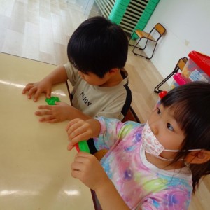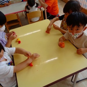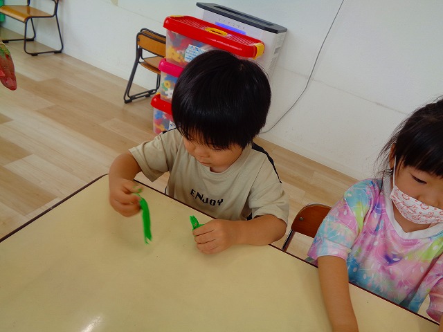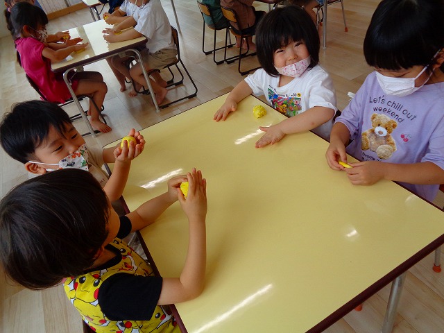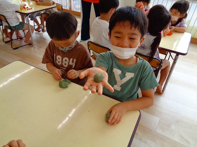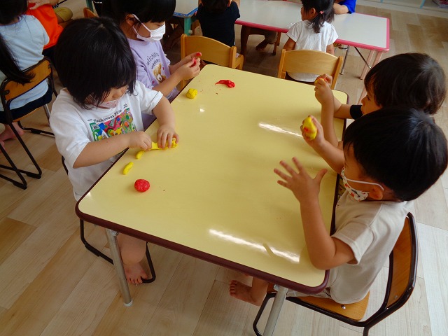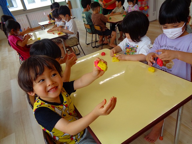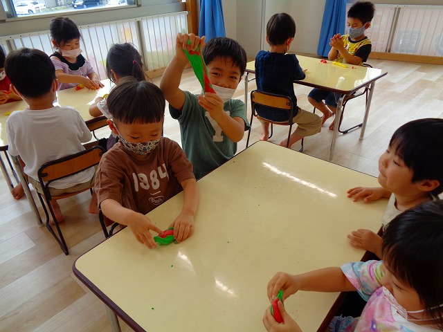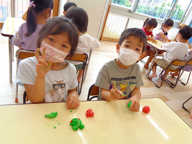 💭小麦粘土遊び🌀 2022.07.04 ブログ 今日は小麦粘土遊びをしました🎶 先生たちがこねている小麦粘土に興味津々の子ども達・・・ 小さい子は袋にいれて遊びましたが ぺちぺち叩いたり、つぶしたりと感触遊びを楽しんでいました🎶 大きい子たちは2色の粘土を混ぜて色の変化を楽しんだり 好きな形を作って見せ合ったりして楽しんでいましたよ~💞 Tweet Share +1 Hatena Pocket RSS feedly Pin it ブログ 🎋七夕飾り付け🎋 🎋七夕🎋 ピックアップ記事 ブログ お泊り保育(その2) 2018.06.13ブログ おしらせ ちびっこランド大分高砂園いよいよ開園です! 2018.04.02おしらせ ブログ 突撃給食調査隊! 2018.07.14ブログ 関連記事一覧 ブログ 🌟7月のお誕生日会🌟 2022.07.28 ブログ 👹鬼のお面製作👹 2022.01.17 ブログ 💌サンタさんへの手紙💌 2021.12.02 ブログ いもほりごっこ🍠 2020.10.20 ブログ 🏅進級式💐 2021.04.01 ブログ 七夕会☆ 2019.07.04 ブログ 保護中: 📣大運動会📣 2022.10.09 ブログ 🩺内科歯科検診🦷 2023.11.16
