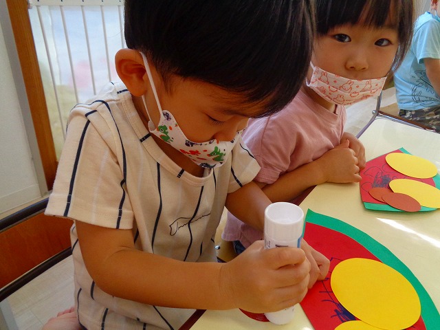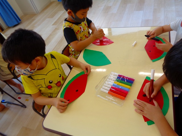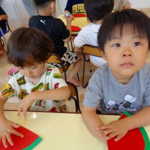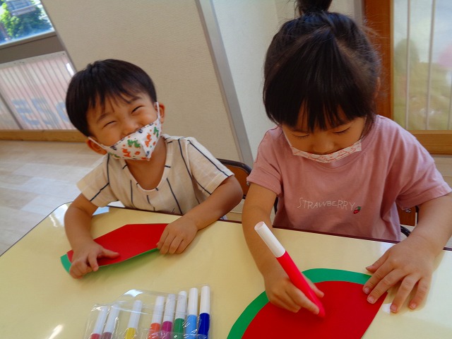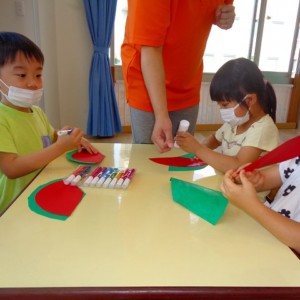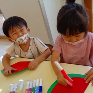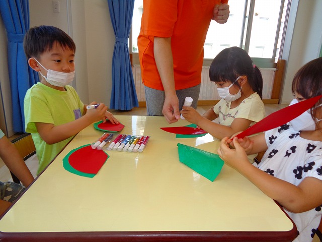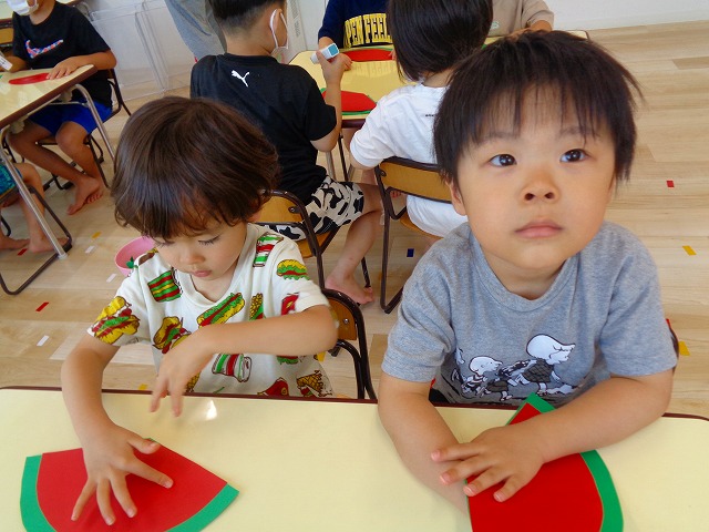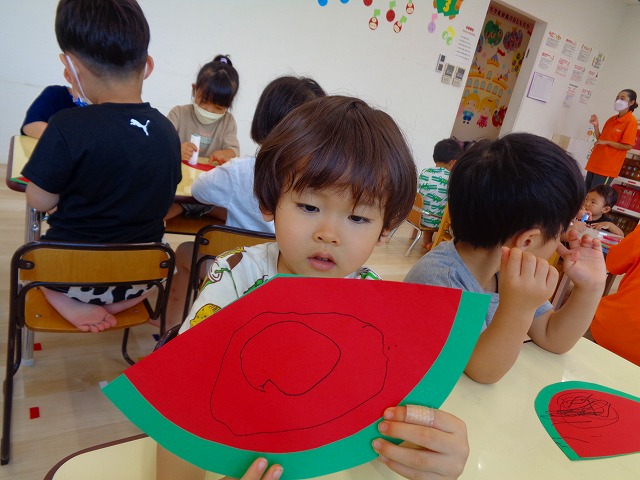 🍉8月製作🍉 2022.07.22 ブログ スイカの風鈴を作りました🎐 みどりぐみさんとあおぐみさんは ハサミの使い方が上手になり ⭕のかたちもスムーズに切ることができるようになりました👌 ふじぐみさんは まっすぐの線を一生懸命に切っていましたよ❗❗ あかぐみさん、きぐみさんも 思い思いに可愛い風鈴を作っていました~🎶 Tweet Share +1 Hatena Pocket RSS feedly Pin it ブログ 😊スライム遊び😊 🌟7月のお誕生日会🌟 ピックアップ記事 ブログ お泊り保育(出発編) 2018.06.09ブログ ブログ スイミングスクールの様子 2018.06.26ブログ おしらせ ちびっこランド大分高砂園いよいよ開園です! 2018.04.02おしらせ 関連記事一覧 ブログ 保育参観♡ 2019.07.08 ブログ 英会話😁 2020.08.13 ブログ 12月のお誕生会 2019.12.26 ブログ 保護中: 👴敬老会👵 2022.09.15 ブログ 英会話・お誕生日会 2018.09.27 ブログ 節分会のようす 2019.02.06 ブログ 12月 お誕生日会🎂 2023.12.21 ブログ お散歩😍 2024.04.17