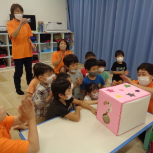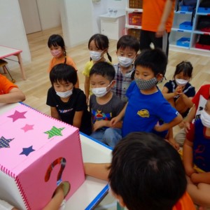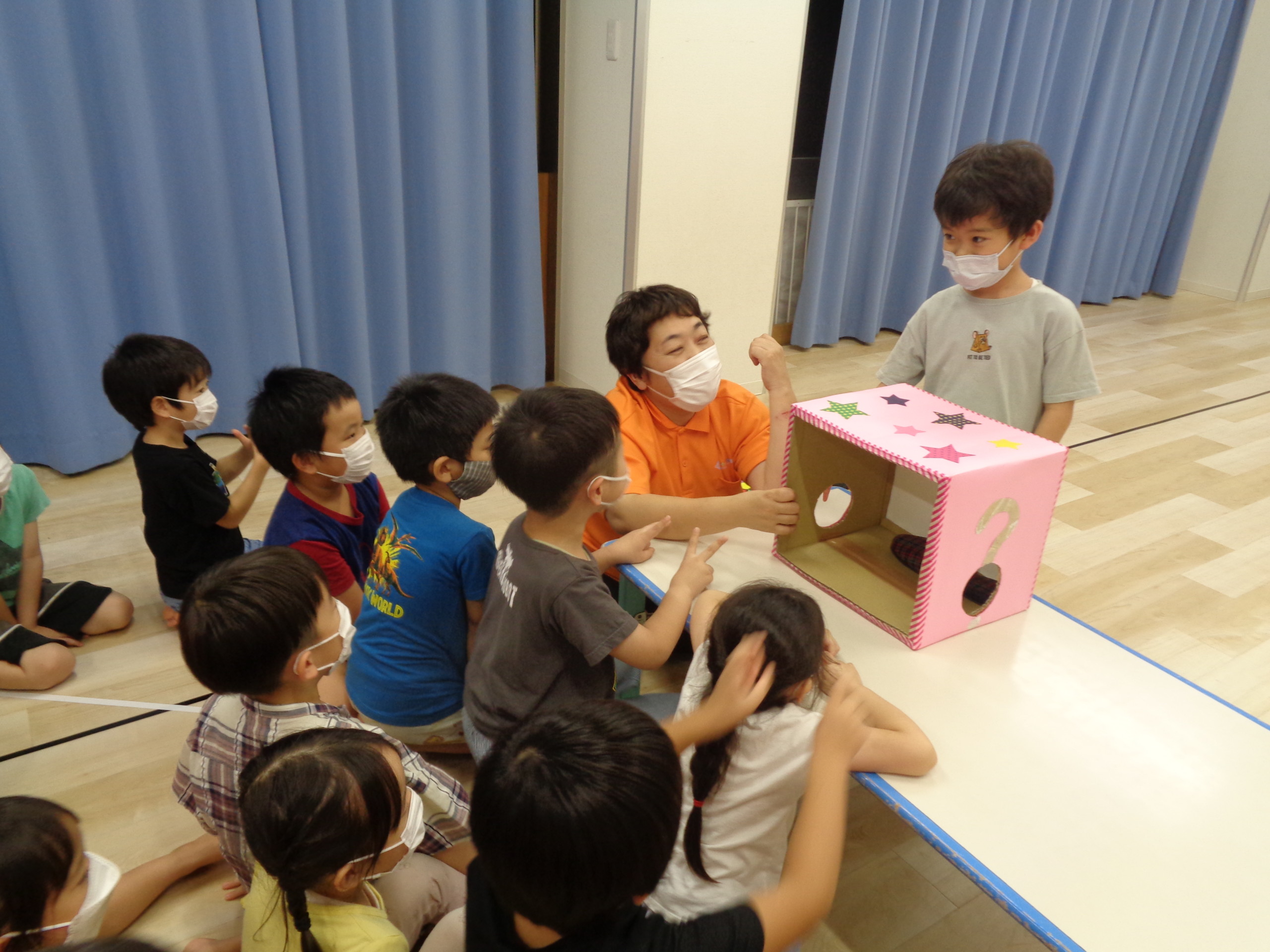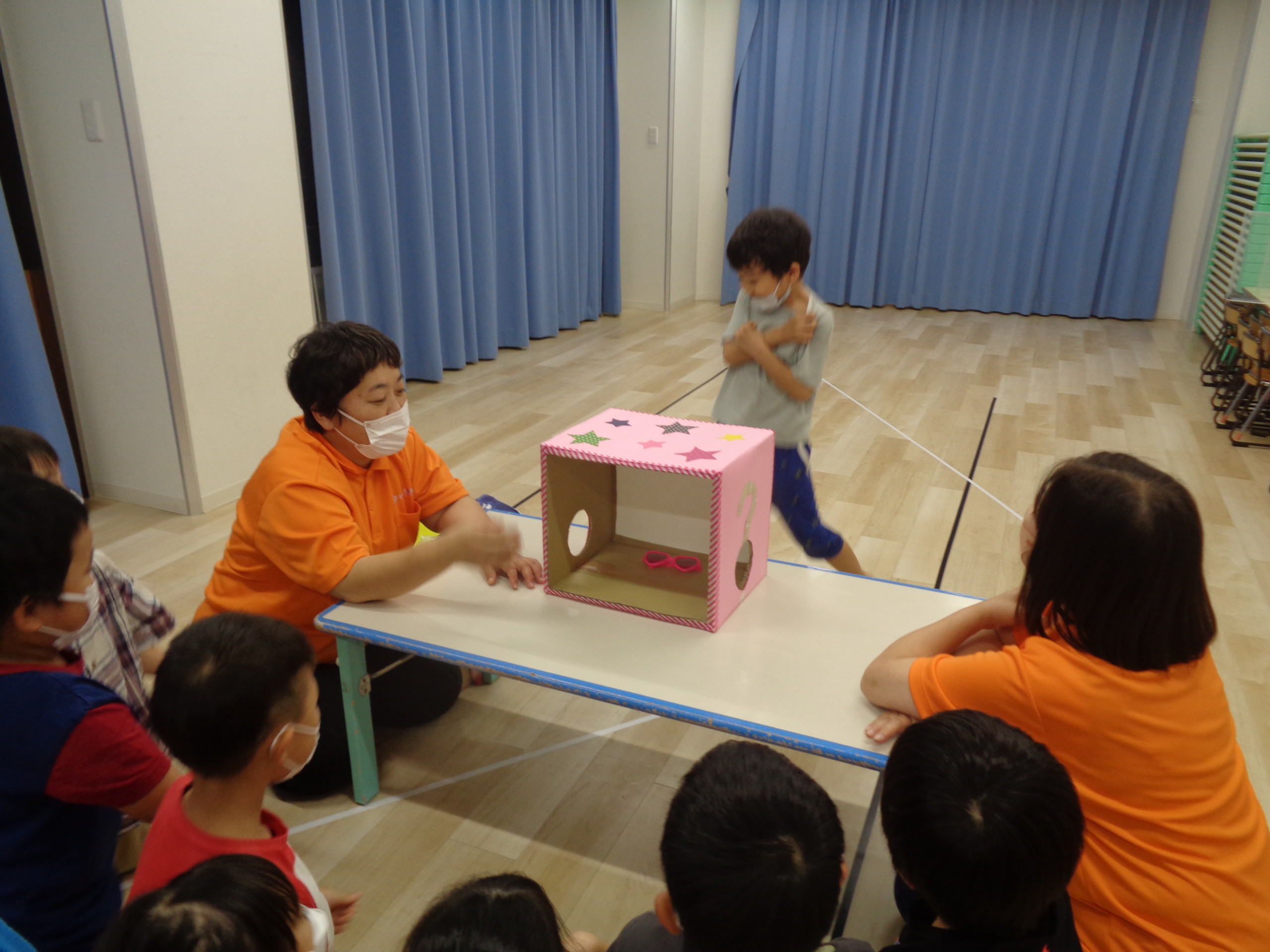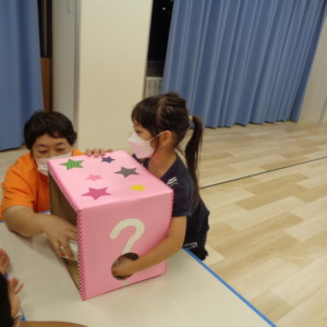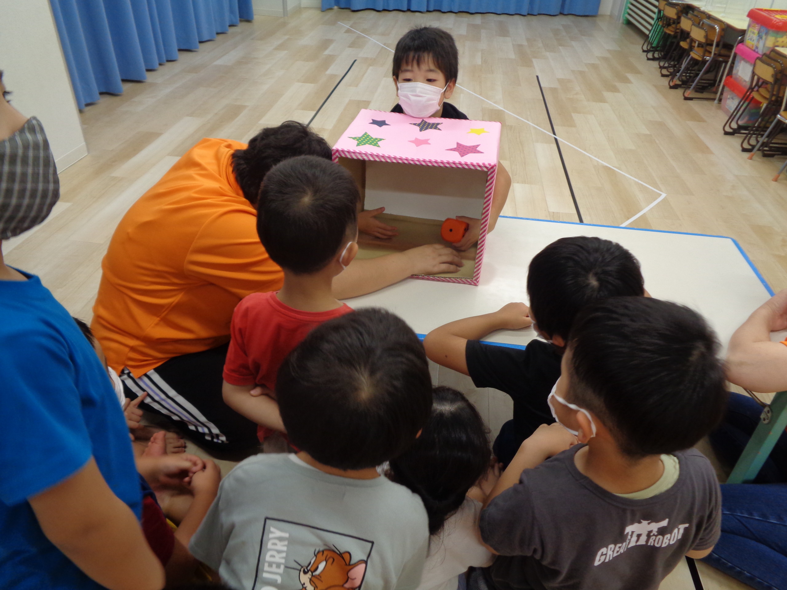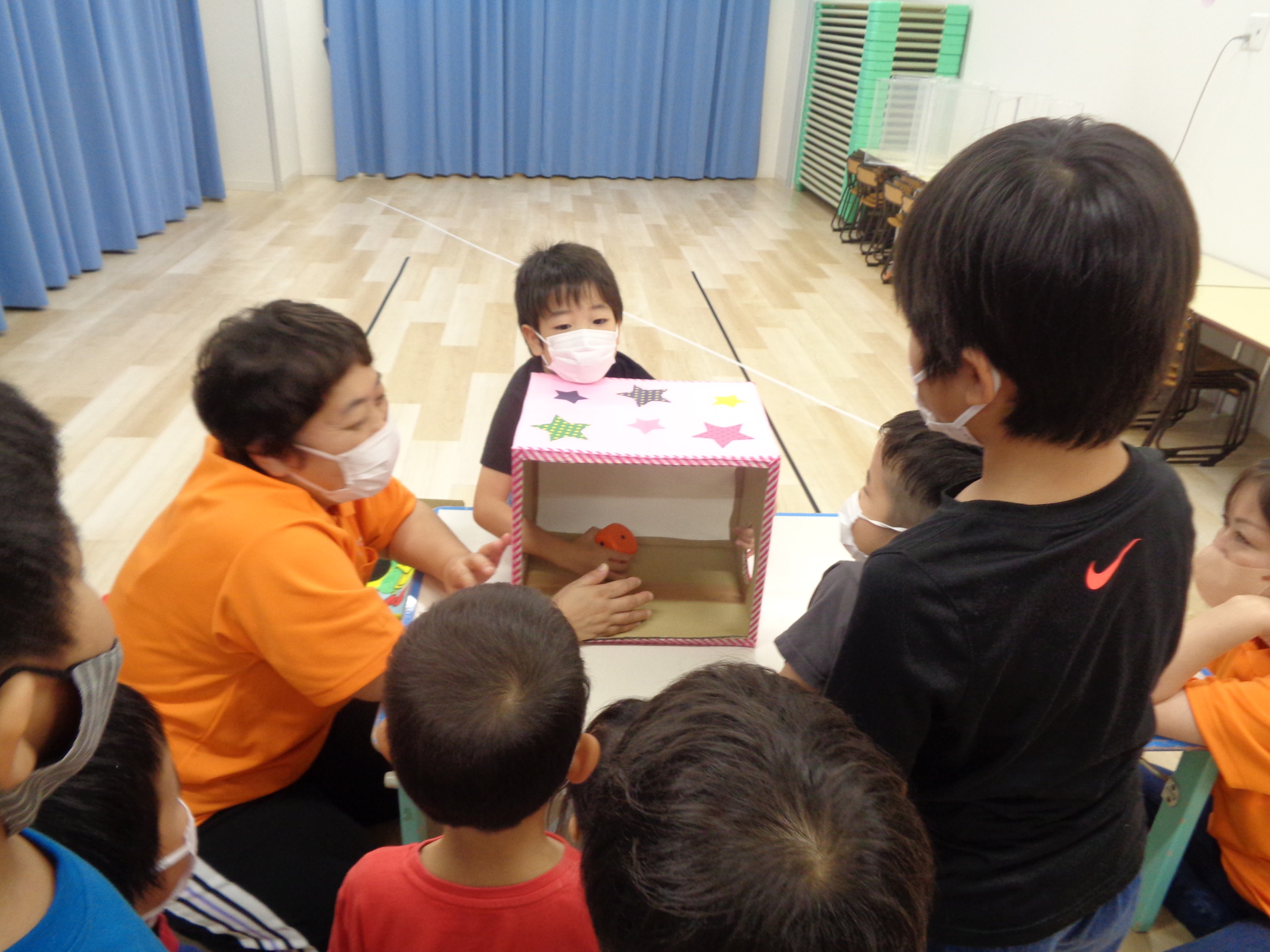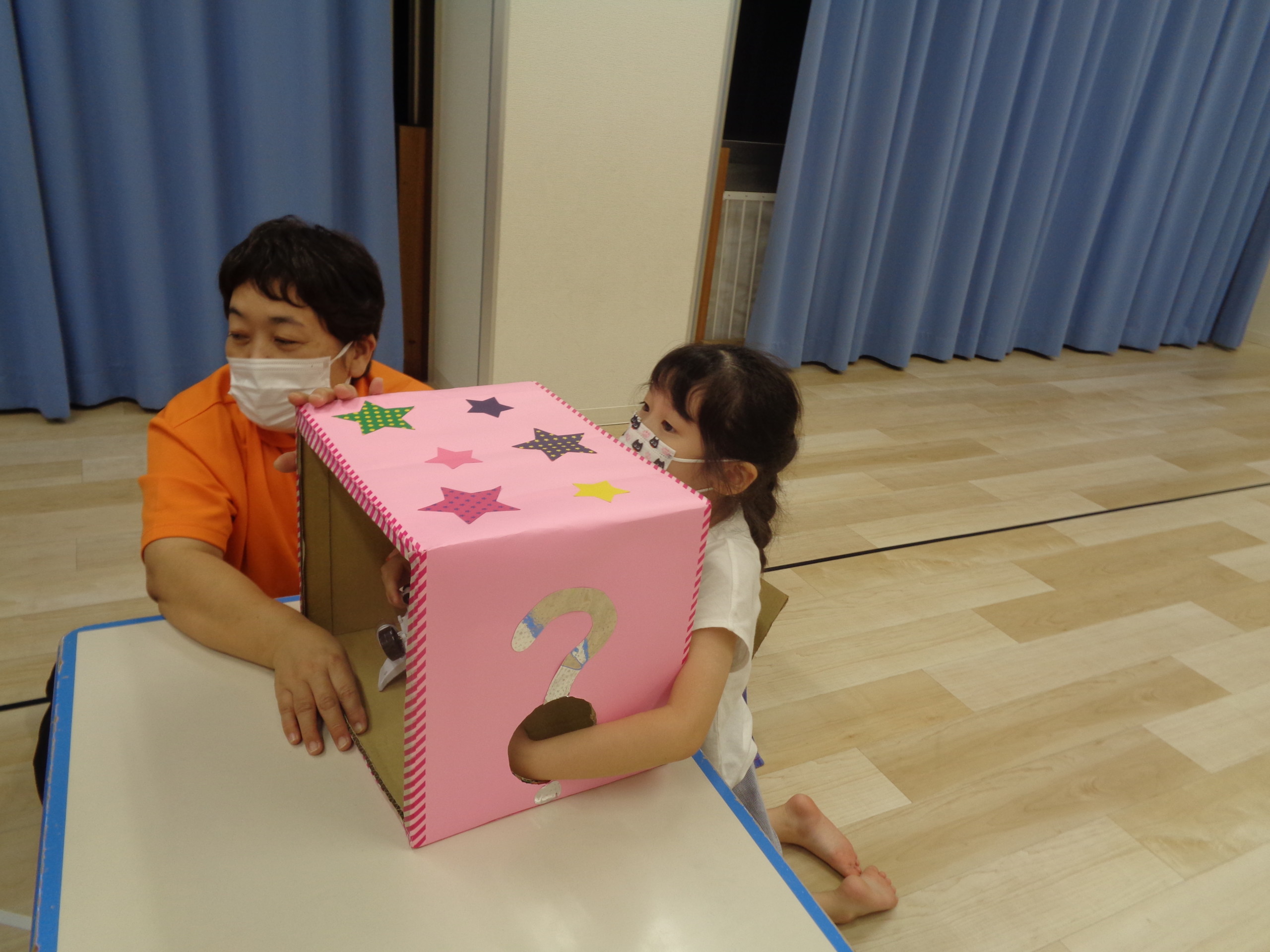 箱の中にすぐに手を入れて正解するお友だちや、怖くてなかなか手を入れれないお友だちもいました💖