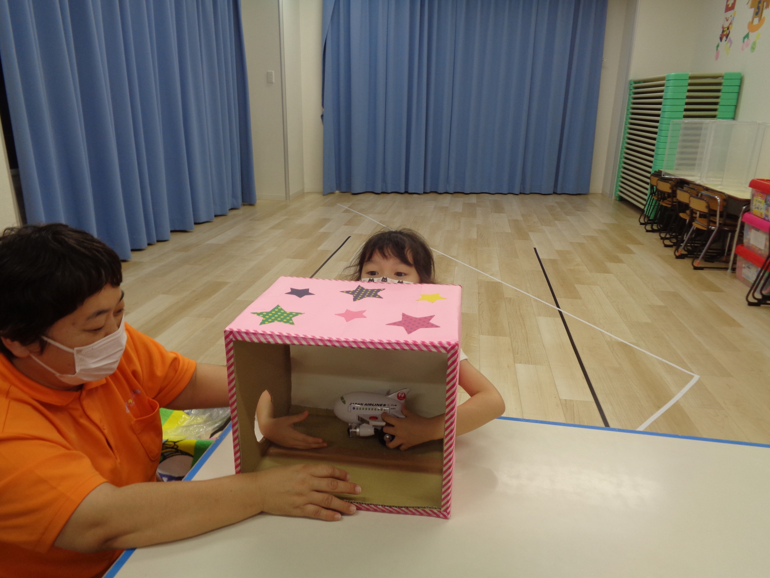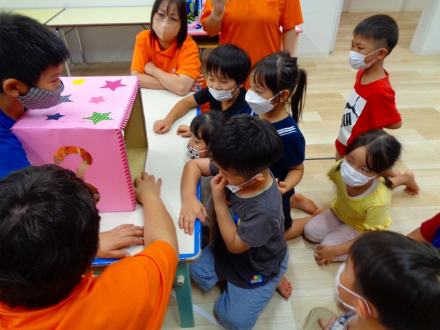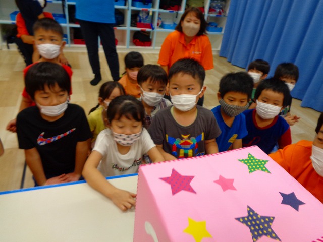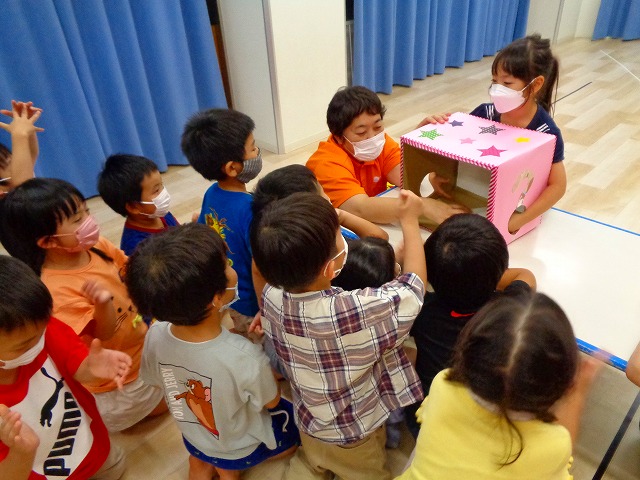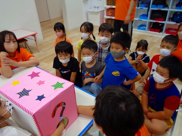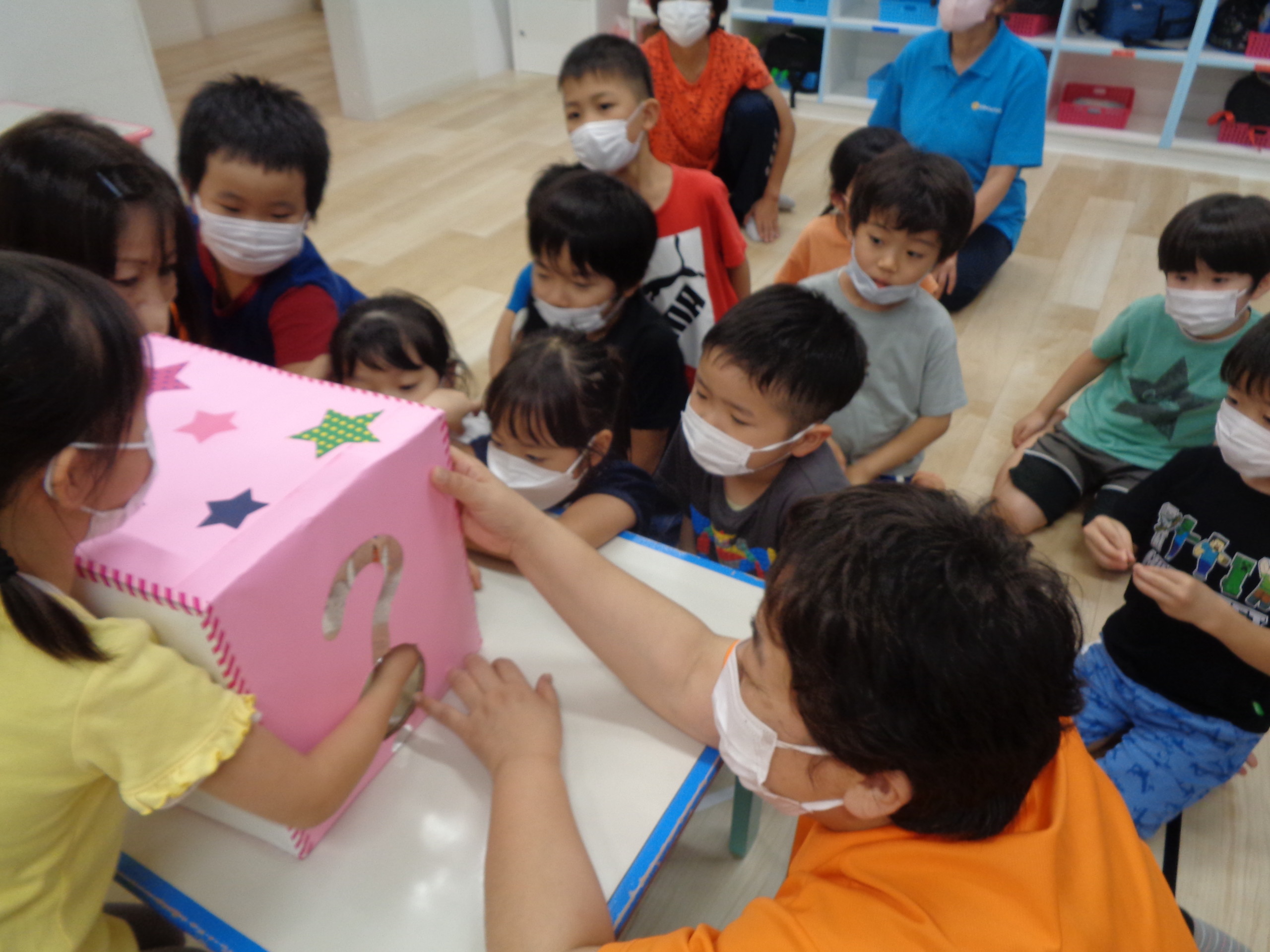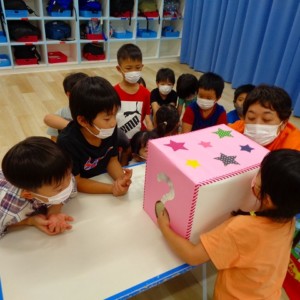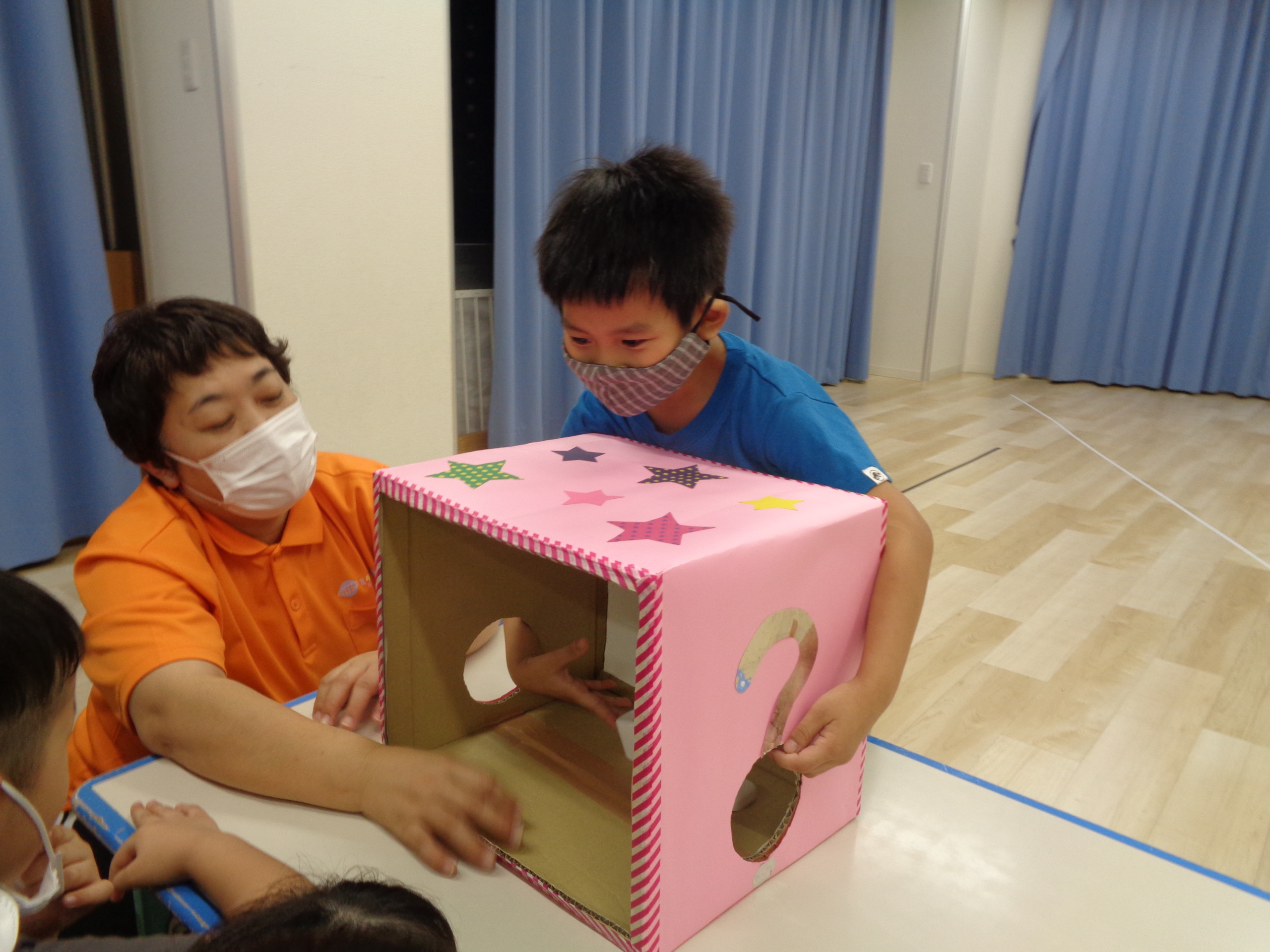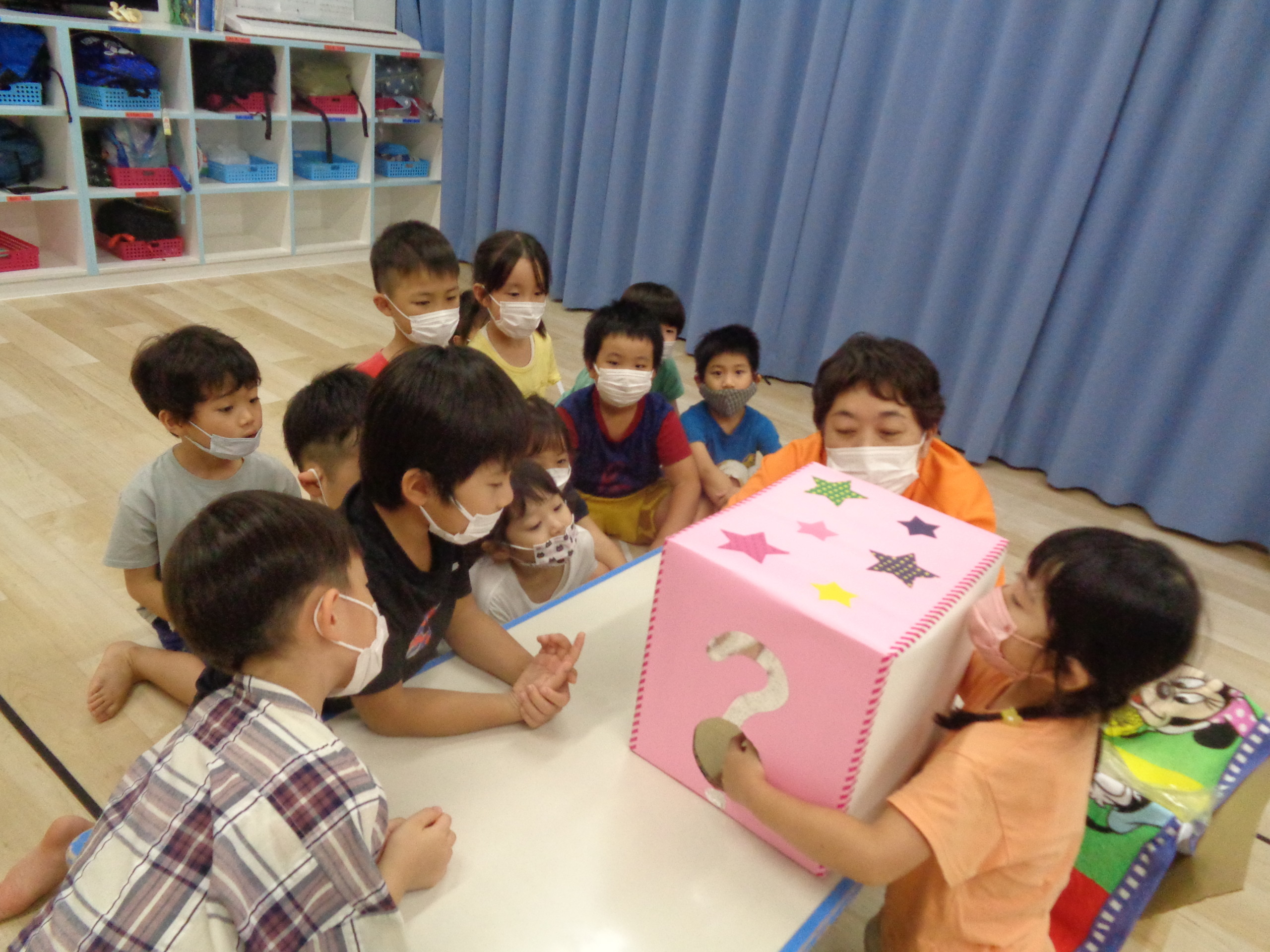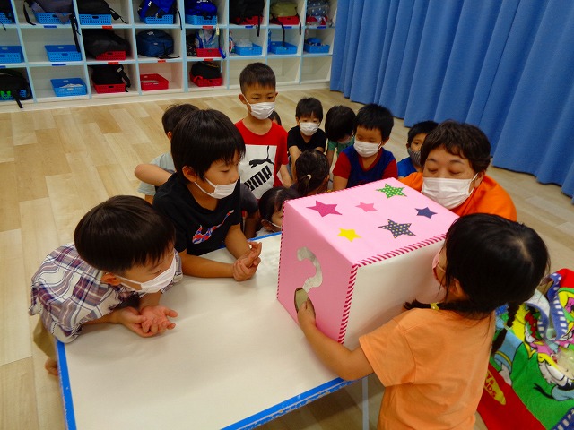 箱の中にすぐに手を入れて正解するお友だちや、怖くてなかなか手を入れれないお友だちもいました💖