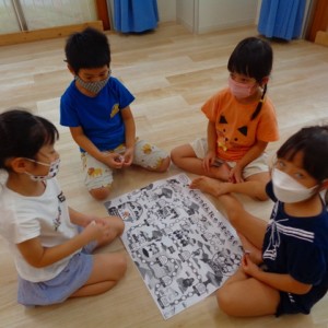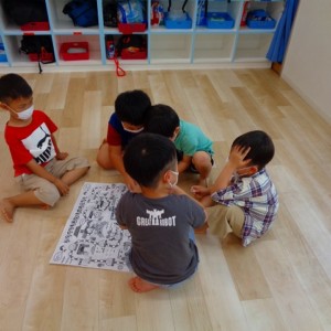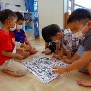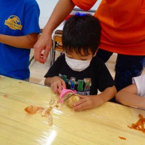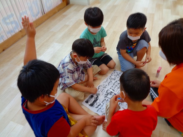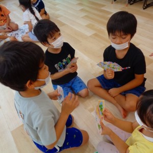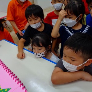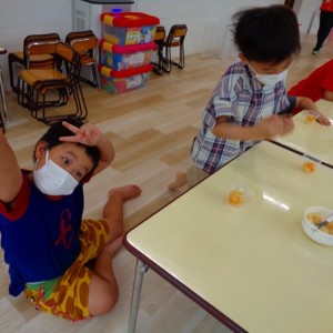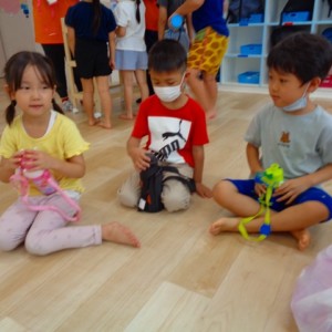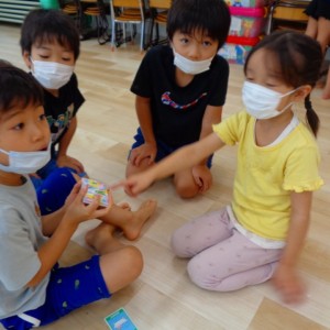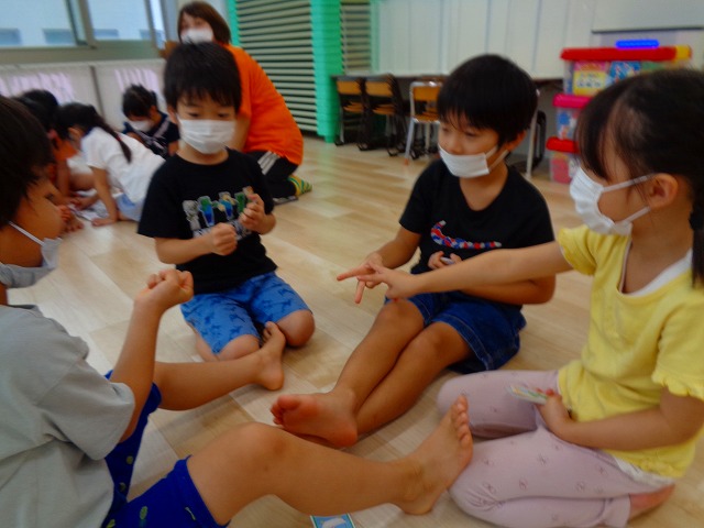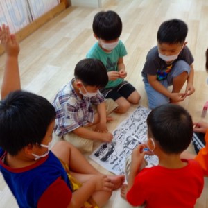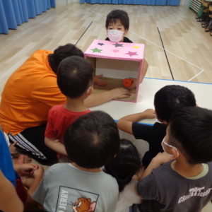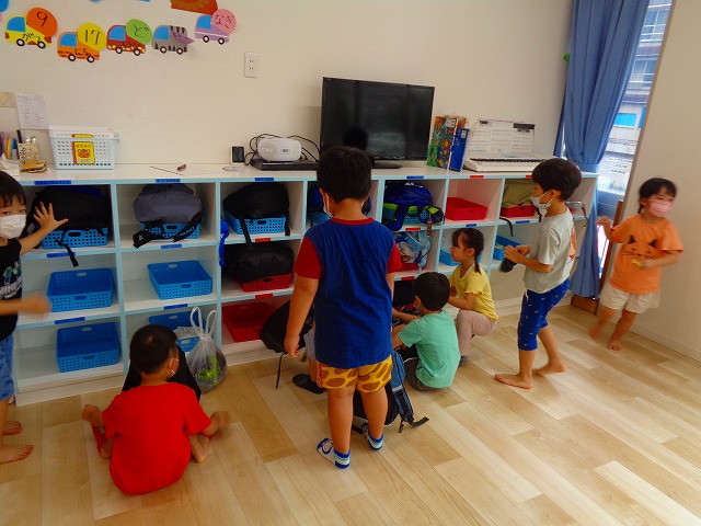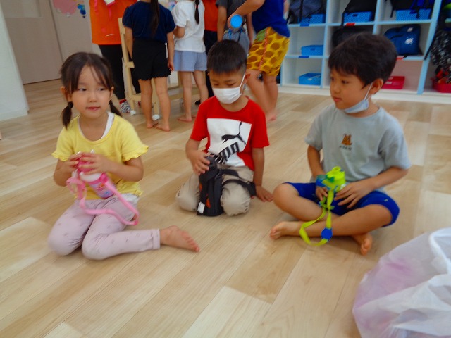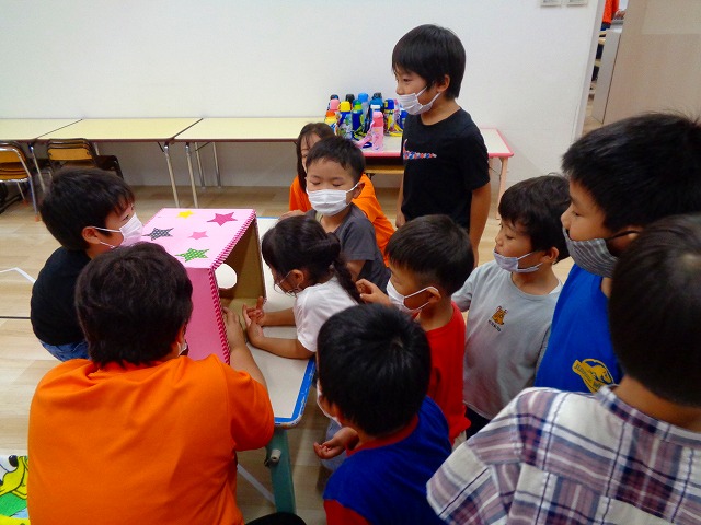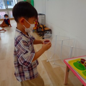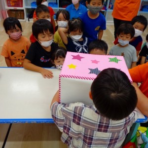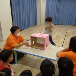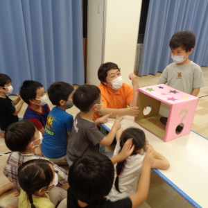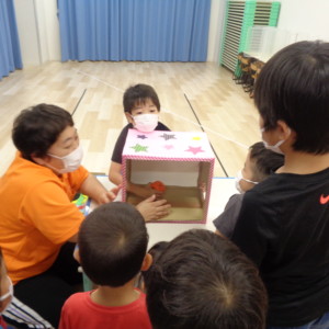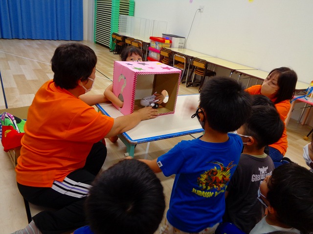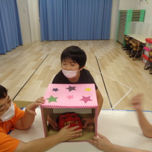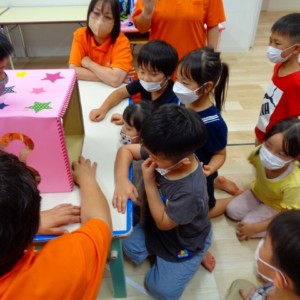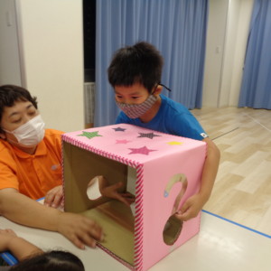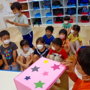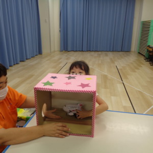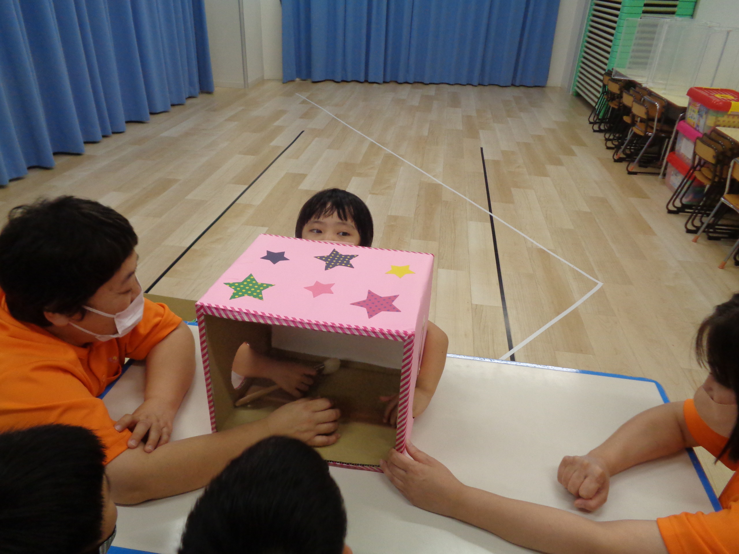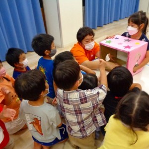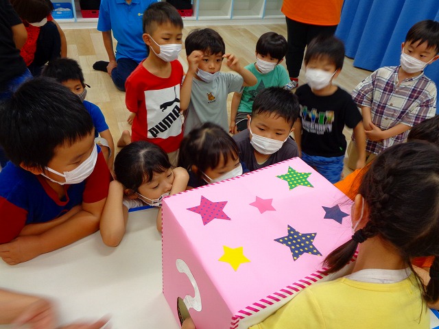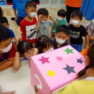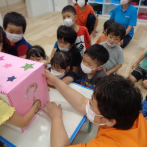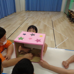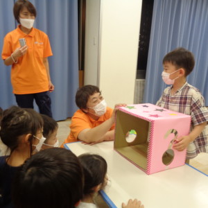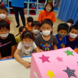 箱の中にすぐに手を入れて正解するお友だちや、怖くてなかなか手を入れれないお友だちもいました💖