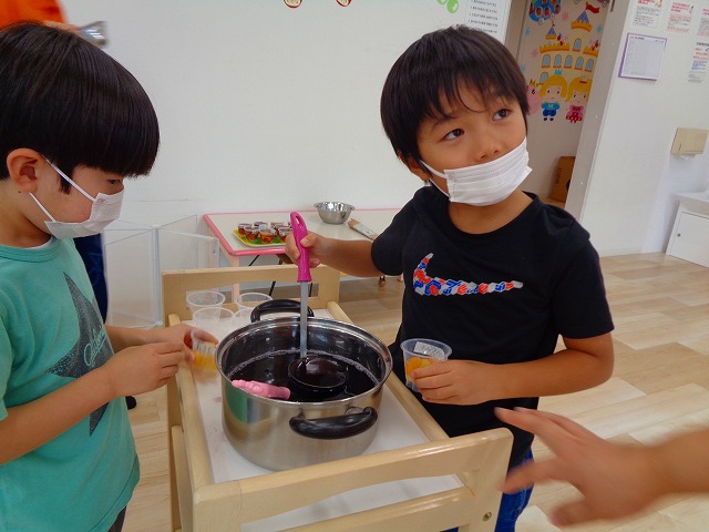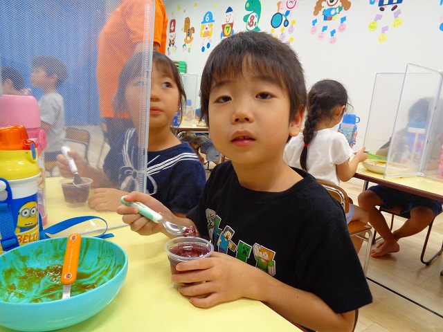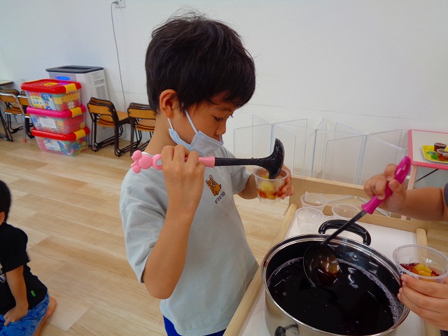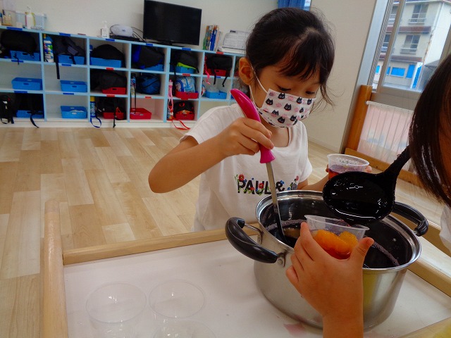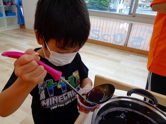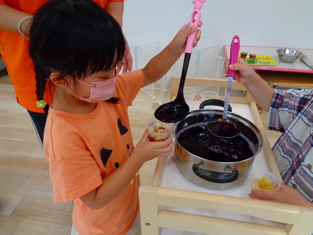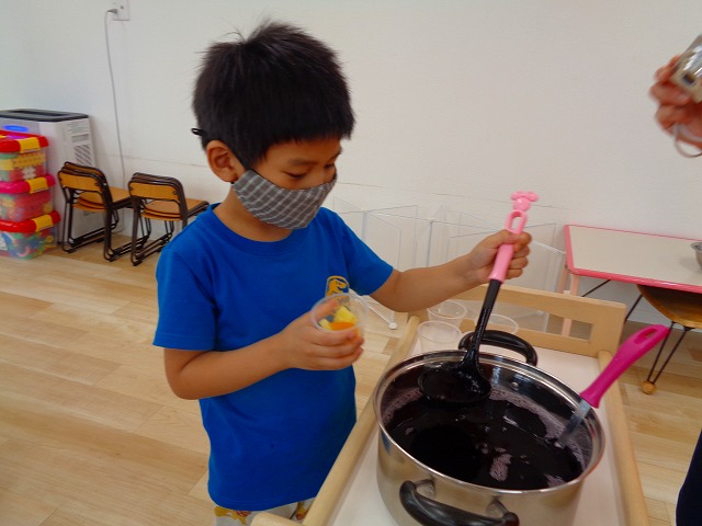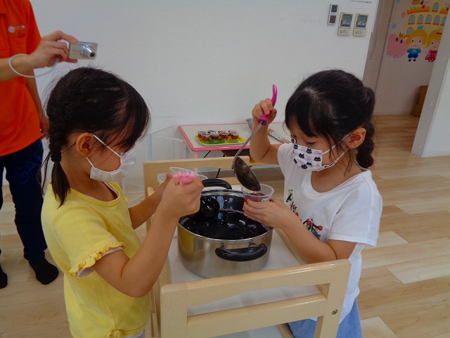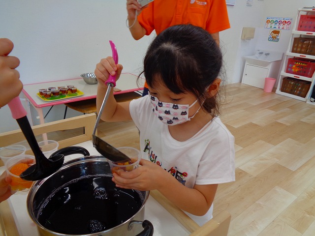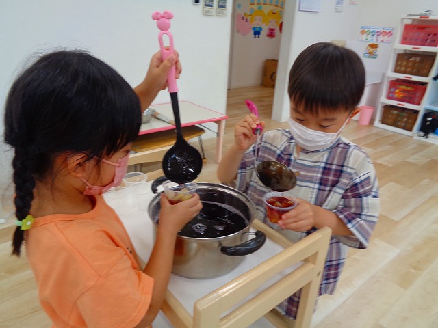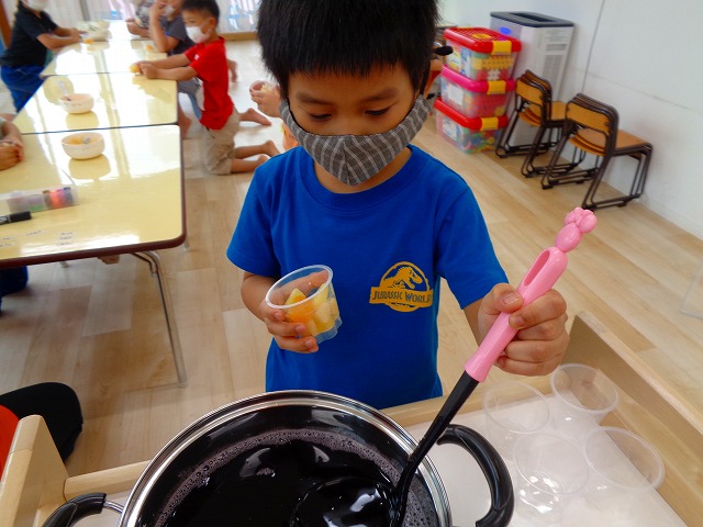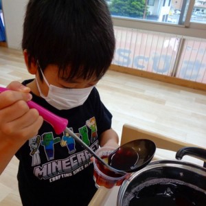 魔法の液体で固まったゼリーをみて“すごーい”と驚いていました(笑)