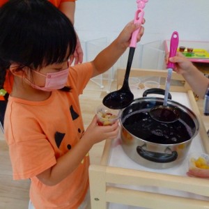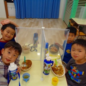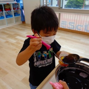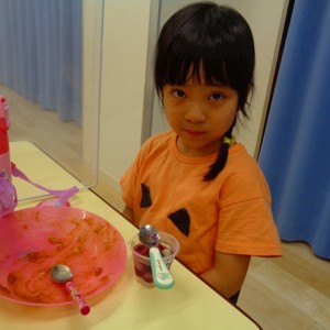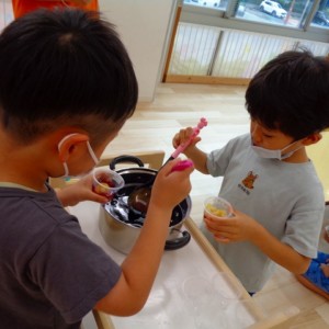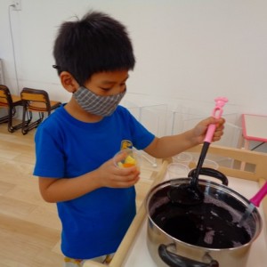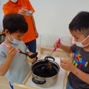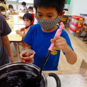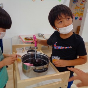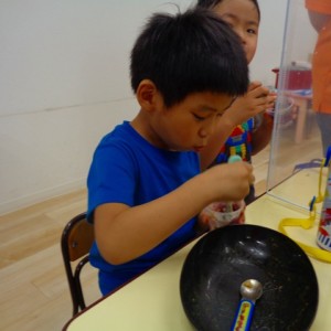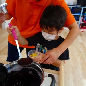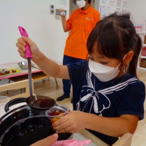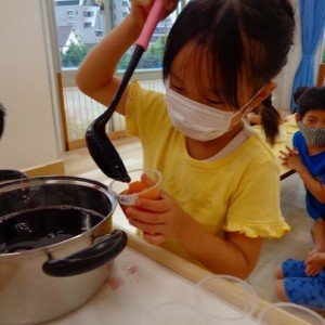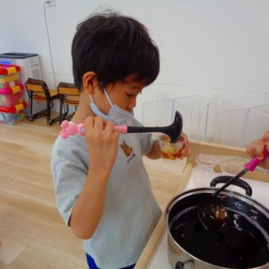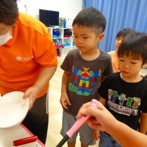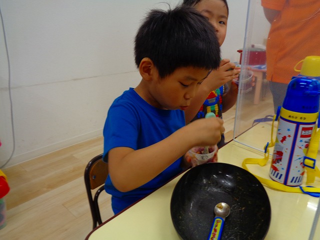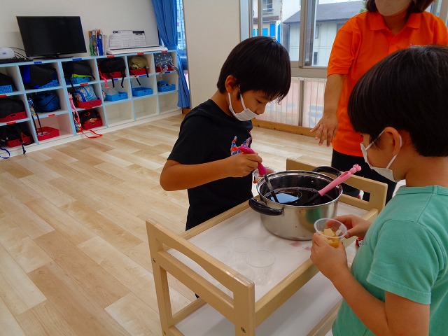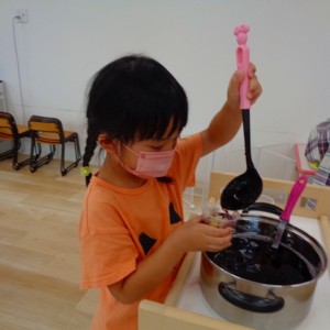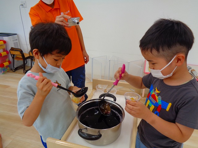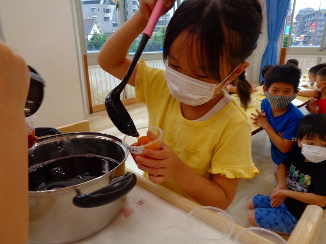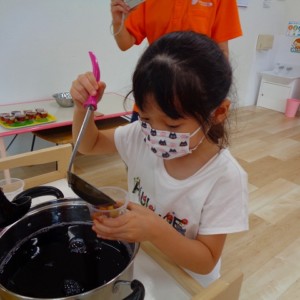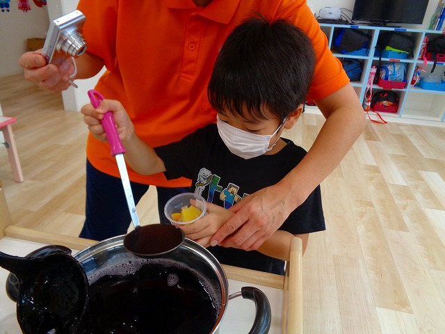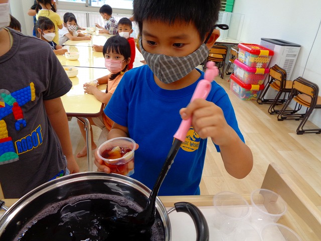 魔法の液体で固まったゼリーをみて“すごーい”と驚いていました(笑)