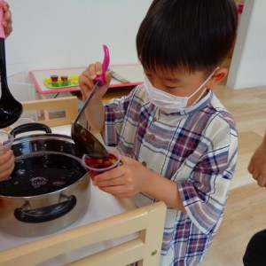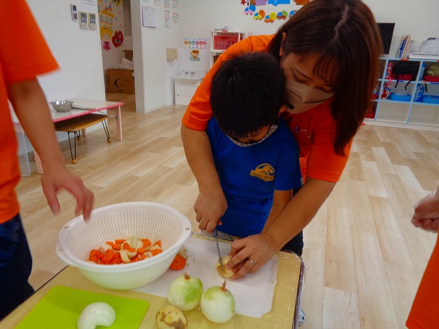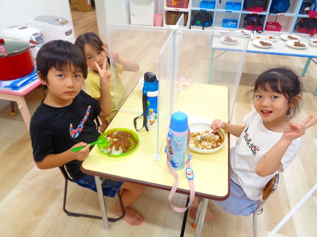 遊んでいる間にカレーのいい匂いがし、“お腹すいたー”と言っているお友だちがいました😊