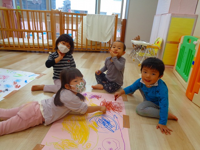 🖍ダイナミックお絵かき🖍 2022.11.11 ブログ 今日は大きな模造紙にクレヨンでお絵かきをしました🎵 ダンスを習っていない子どもたちなので小さい子が多かったのですが 色んな色のクレヨンを使ってダイナミックにお絵かきを楽しんでいました💓 思い思いに描いて満足そうに「見てー」と絵を見せてくれた子ども達でした🎵 Tweet Share +1 Hatena Pocket RSS feedly Pin it ブログ ~親子遠足!!~inうみたまご🐡 🎄12月の製作🎄 ピックアップ記事 ブログ 突撃給食調査隊! 2018.07.14ブログ ブログ お泊り保育(出発編) 2018.06.09ブログ ブログ お泊り保育(その2) 2018.06.13ブログ 関連記事一覧 ブログ 4月・5月 お誕生日会🎉 2020.05.28 ブログ いもほりごっこ🍠 2020.10.20 ブログ 紙コップけん玉 2021.11.19 ブログ 💟パズル・絵本・おままごと遊びὉ... 2021.10.04 ブログ 保護中: ~親子遠足!!~inうみたまご🐡 2022.11.07 ブログ 保護中: 発表会 第一部🎉 2023.03.26 ブログ 運動会 2018.10.09 ブログ 大掃除🧽🧹 2022.12.26