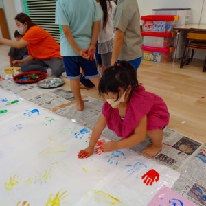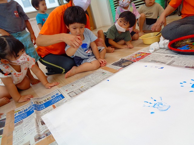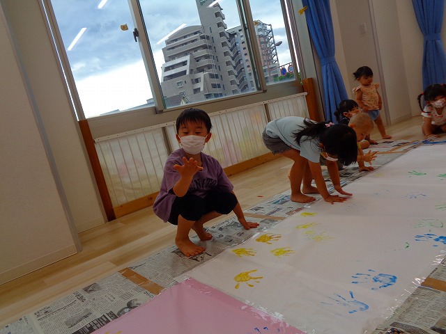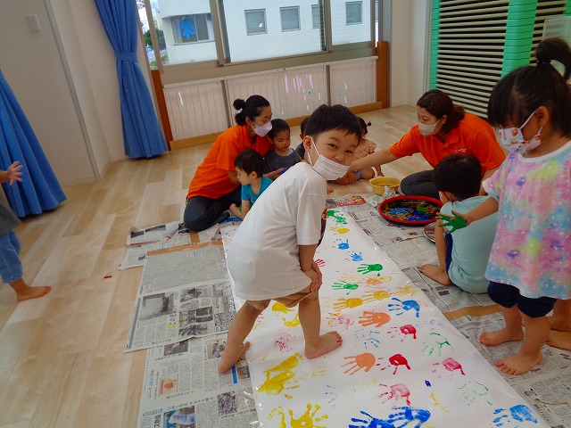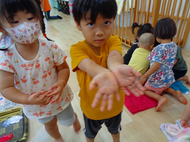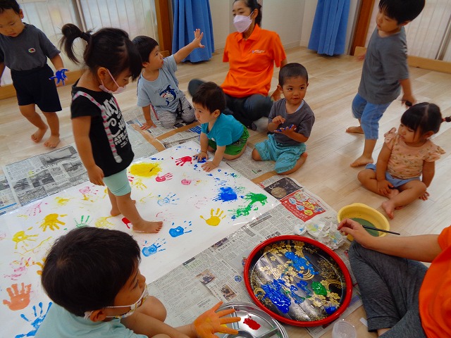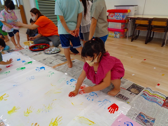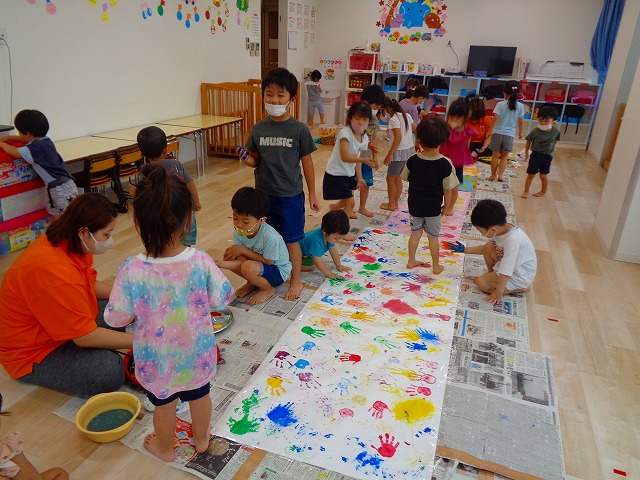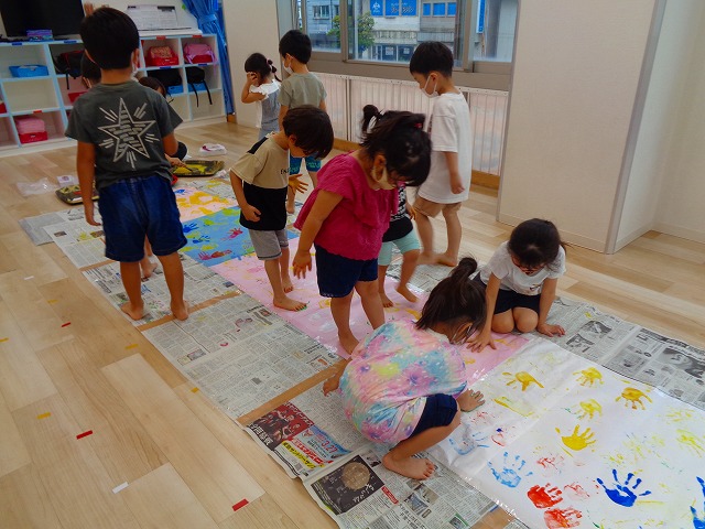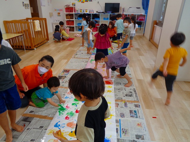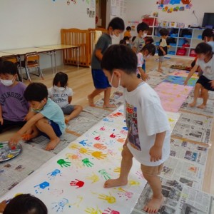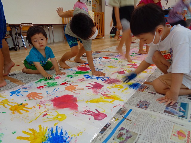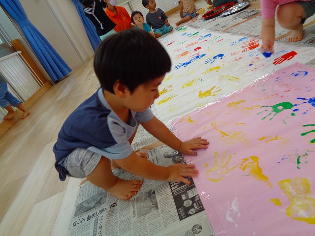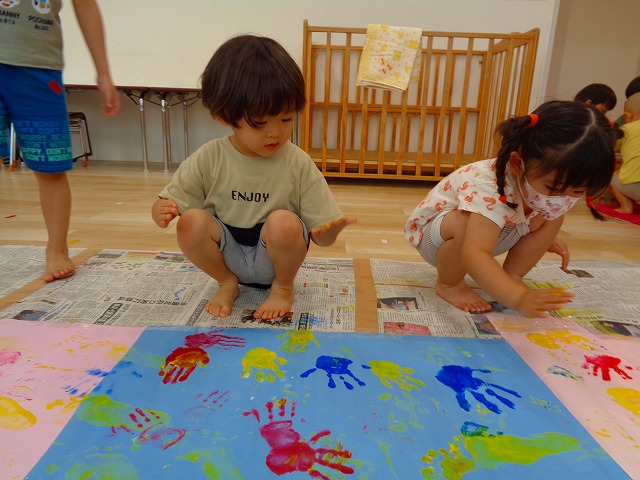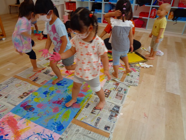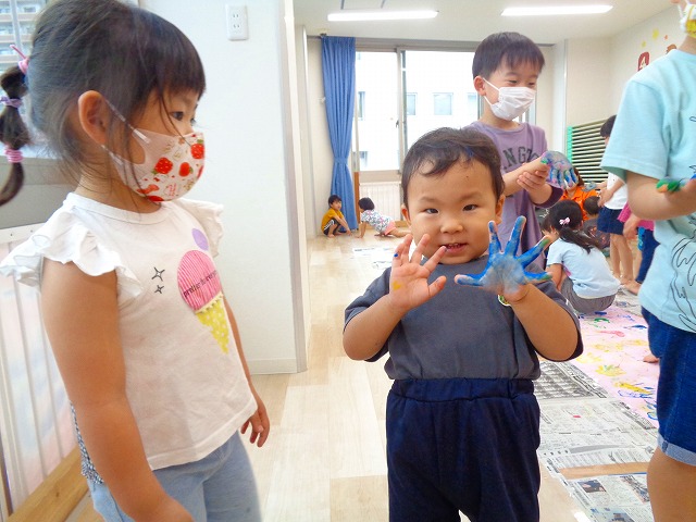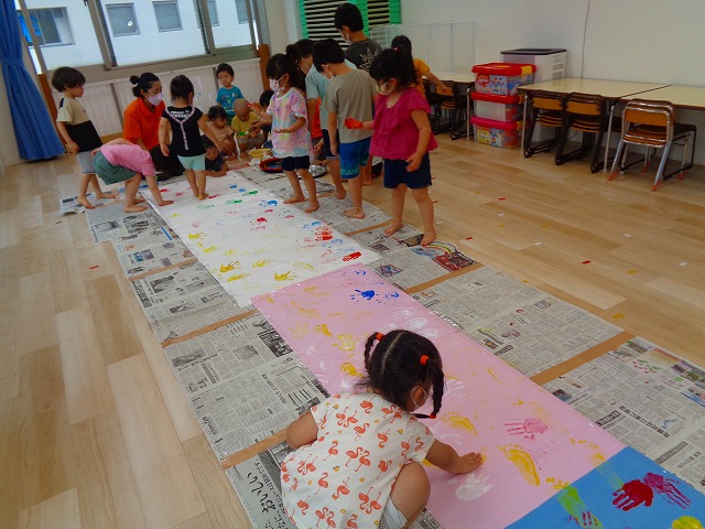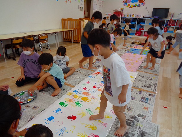 ✋ボディーペイント👣 2022.08.05 ブログ 今日はボディーペイントをしました🎵 大きな模造紙に手や足型をつけていきました🌟 絵の具を付けてもらうときはしっかり列に並んで塗ってもらっていましたよー💜 ダイナミックな遊びに大喜びな子ども達でした🎵 Tweet Share +1 Hatena Pocket RSS feedly Pin it ブログ 🐡魚釣り🐡 🎂8月お誕生会🎂 ピックアップ記事 ブログ お泊り保育(その2) 2018.06.13ブログ ブログ お泊り保育(出発編) 2018.06.09ブログ ブログ 突撃給食調査隊! 2018.07.14ブログ 関連記事一覧 ブログ ☆しっぽとり 2019.11.08 ブログ フルーツバスケット🍎 2020.10.26 ブログ 🌸ひなまつり🌸 2021.03.19 ブログ ✨12月製作✨ 2022.11.21 ブログ 😊スライム遊び😊 2022.07.15 ブログ 外遊び🤩 2025.05.23 ブログ 4月のお誕生日会をしました/園での一日のようす 2018.04.27 ブログ 歯科検診・内科検診の様子です 2018.11.22