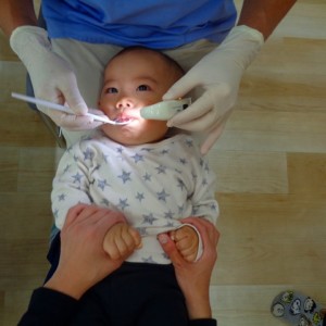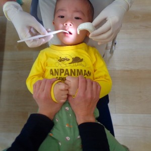 受けたことがあるお友だちは静かに並んで待つことができていました。
