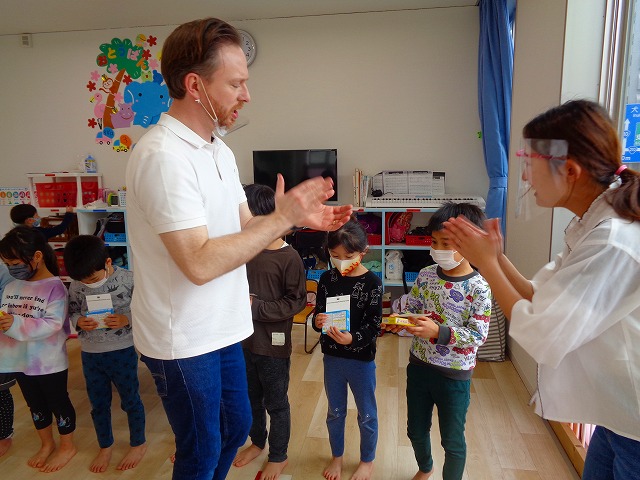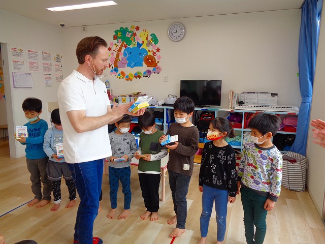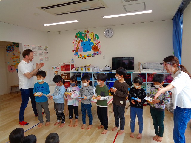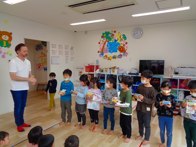 🆎英会話🆎 2023.03.23 ブログ 今年度最後の英会話がありました 英会話の時間がとっても大好きな子ども達💖 😄デイヴィット先生とカードゲームを楽しんだりと 大盛り上がりでした🙌 最後のダンス”🦈ベイビーシャーク”も 笑顔がたくさんあふれていましたよ🌟 Tweet Share +1 Hatena Pocket RSS feedly Pin it ブログ 🎎ひなまつり(CW訪問)🎎 🎂3月 お誕生日会🎂 ピックアップ記事 ブログ 突撃給食調査隊! 2018.07.14ブログ ブログ お泊り保育(その2) 2018.06.13ブログ ブログ お泊り保育(その1) 2018.06.13ブログ 関連記事一覧 ブログ ついに今年度ダンスチーム始動!! 2019.04.10 ブログ 🍙おにぎり遠足🍙 2022.05.25 ブログ 保護中: 🎉保育参観🎉 2021.07.20 ブログ てるてるぼうずを作りました 2018.05.11 ブログ 保護中: ~親子遠足!!~inうみたまご🐡 2022.11.07 ブログ 魚釣り❗❓ ハロウィンVer.&... 2022.10.31 ブログ フィンガーペイント🖐 2020.08.21 ブログ 🍉8月製作🍉 2022.07.22