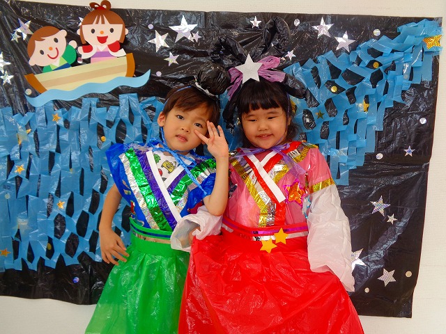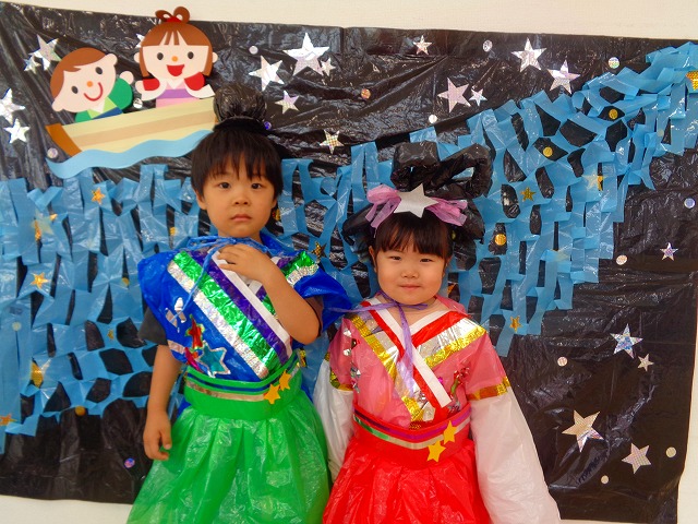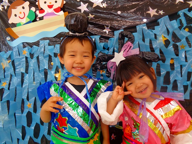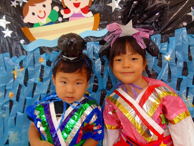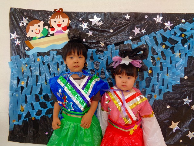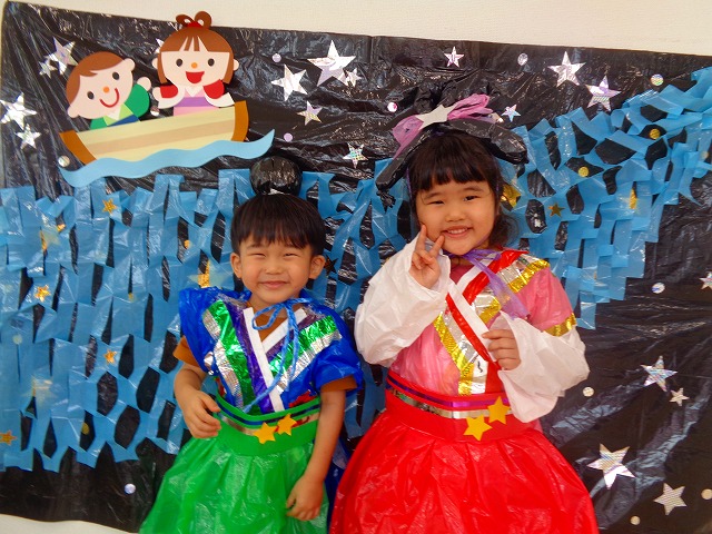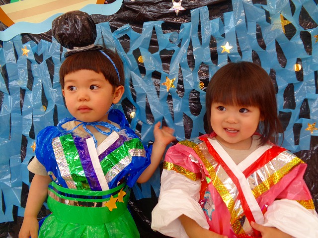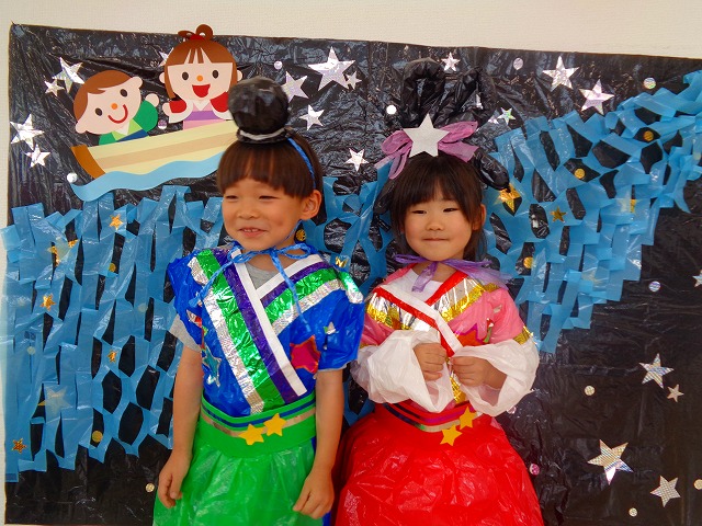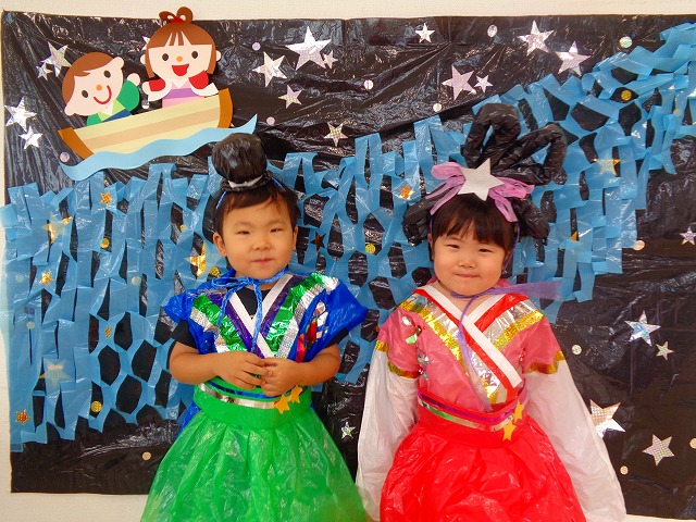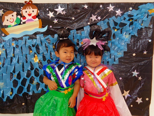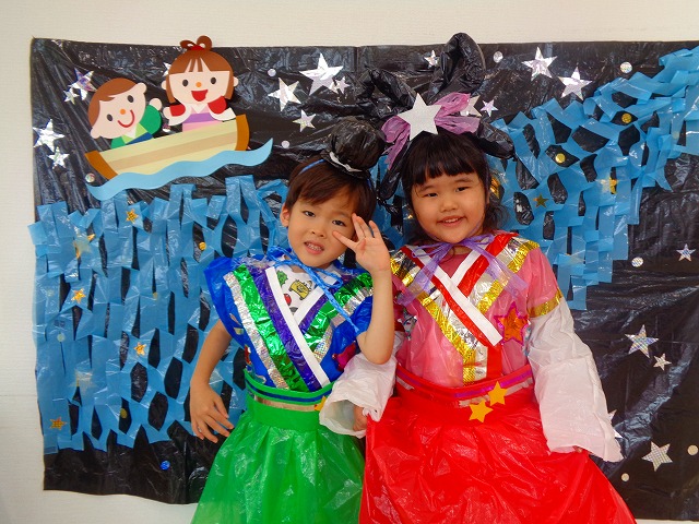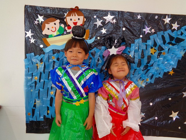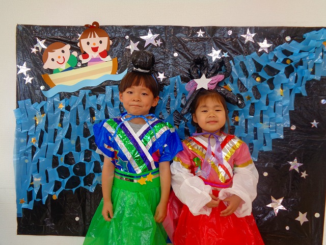 🎋たなばた会🎋 2023.07.06 ブログ ささの葉 サラサラ~🎶 たなばた会がありました❗ まずはペープサート❗ たなばたの由来やストーリー わかったかな❓ みんなしっかりと見ていました❕ その後は 織姫と彦星の衣装を着て 写真を撮りました❗ テレてしまう子 緊張して固まってしまう子...と、様々でしたが 楽しい雰囲気の中で写真を撮ることができました みんなの願いが叶いますように🌠 Tweet Share +1 Hatena Pocket RSS feedly Pin it ブログ たなばた 飾り付け🎋 🎋CWたなばた会🎋 ピックアップ記事 おしらせ ちびっこランド大分高砂園いよいよ開園です! 2018.04.02おしらせ ブログ お泊り保育(その1) 2018.06.13ブログ ブログ お泊り保育(出発編) 2018.06.09ブログ 関連記事一覧 ブログ 体育💪 2020.06.24 ブログ いもほりごっこ🍠 2020.10.20 ブログ 💃ダンスレッスン(全員参加)👯... 2022.04.05 ブログ 12月 お誕生日会🎂 2023.12.21 ブログ 🎎ひなまつり(CW訪問)🎎 2023.03.03 ブログ 親子バス遠足で別府ラクテンチに行ってきました 2018.05.14 ブログ 🎃ハロウィン🎃 2023.10.30 ブログ 👣公園へLet`sGO❗... 2020.10.14