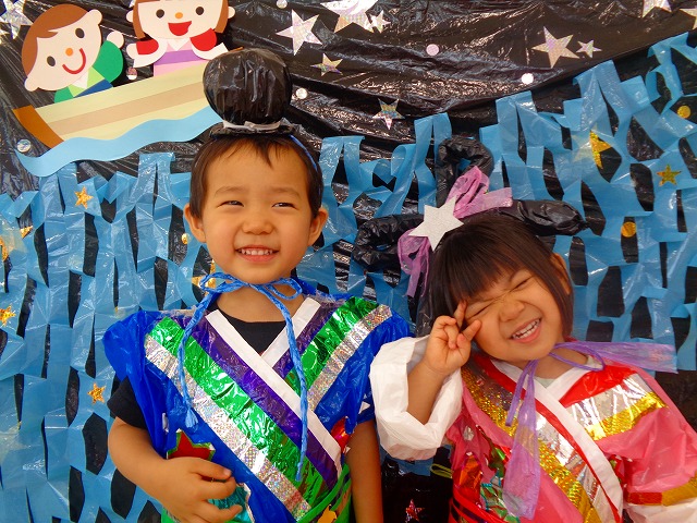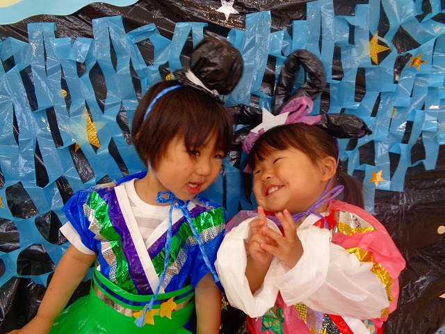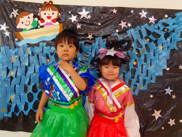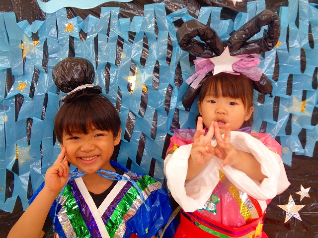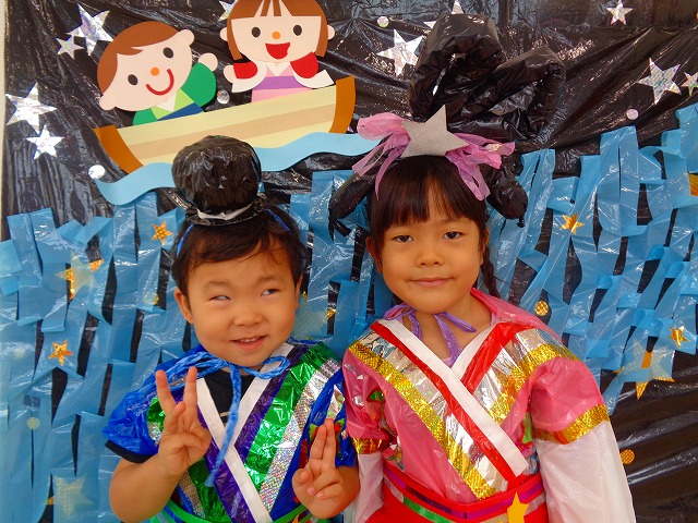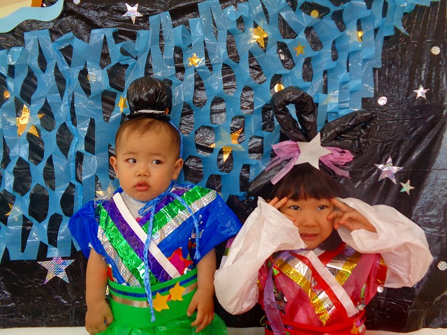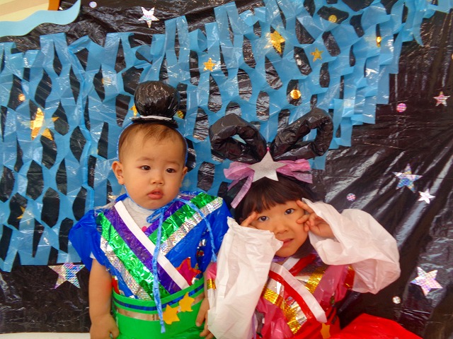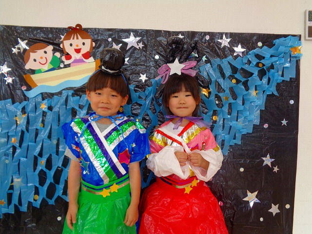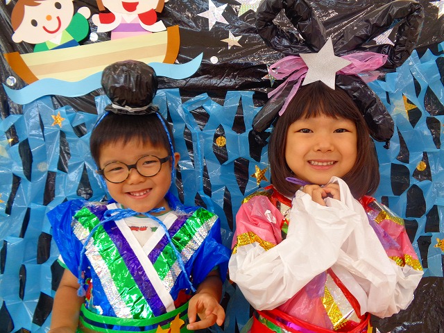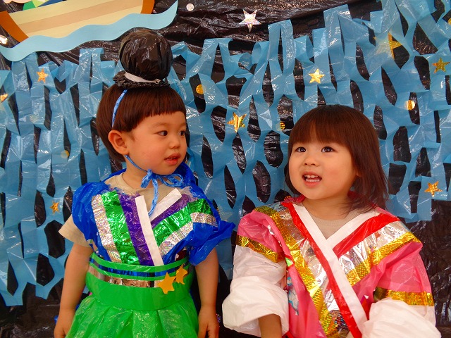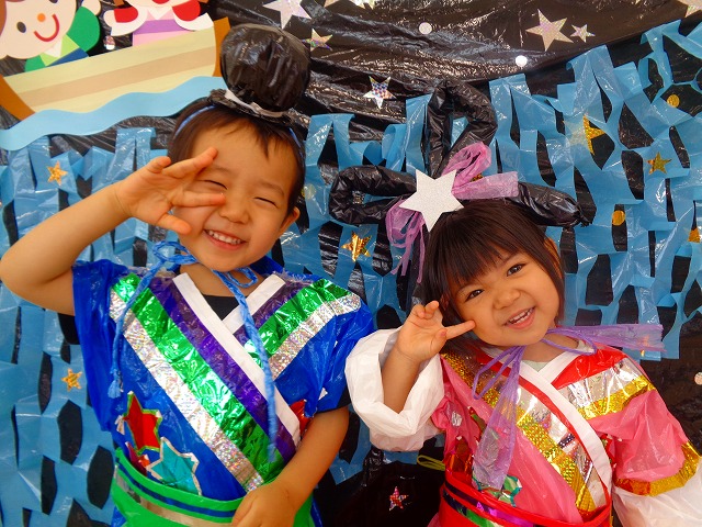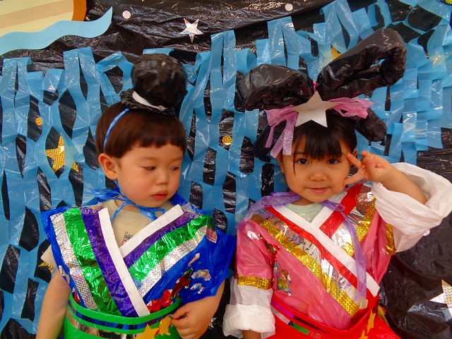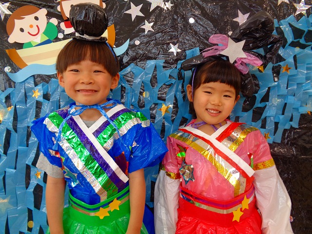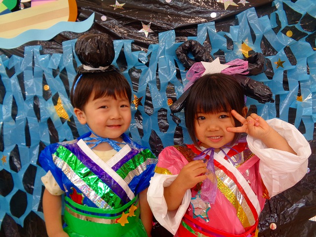 🎋たなばた会🎋 2023.07.06 ブログ ささの葉 サラサラ~🎶 たなばた会がありました❗ まずはペープサート❗ たなばたの由来やストーリー わかったかな❓ みんなしっかりと見ていました❕ その後は 織姫と彦星の衣装を着て 写真を撮りました❗ テレてしまう子 緊張して固まってしまう子...と、様々でしたが 楽しい雰囲気の中で写真を撮ることができました みんなの願いが叶いますように🌠 Tweet Share +1 Hatena Pocket RSS feedly Pin it ブログ たなばた 飾り付け🎋 🎋CWたなばた会🎋 ピックアップ記事 おしらせ ちびっこランド大分高砂園いよいよ開園です! 2018.04.02おしらせ ブログ お泊り保育(その1) 2018.06.13ブログ ブログ お泊り保育(出発編) 2018.06.09ブログ 関連記事一覧 ブログ 体育💪 2020.06.24 ブログ いもほりごっこ🍠 2020.10.20 ブログ 💃ダンスレッスン(全員参加)👯... 2022.04.05 ブログ 12月 お誕生日会🎂 2023.12.21 ブログ 🎎ひなまつり(CW訪問)🎎 2023.03.03 ブログ 親子バス遠足で別府ラクテンチに行ってきました 2018.05.14 ブログ 🎃ハロウィン🎃 2023.10.30 ブログ 👣公園へLet`sGO❗... 2020.10.14