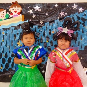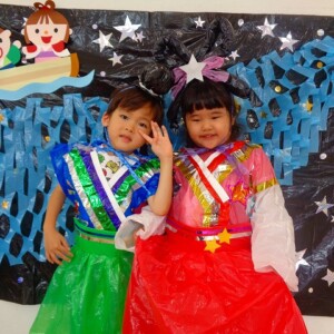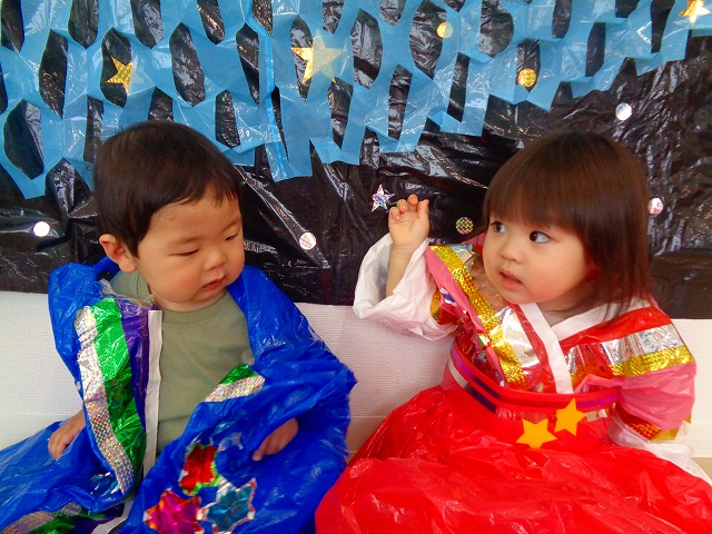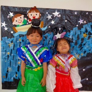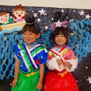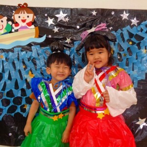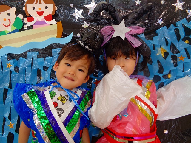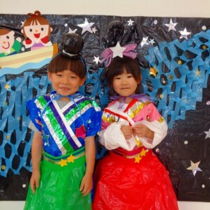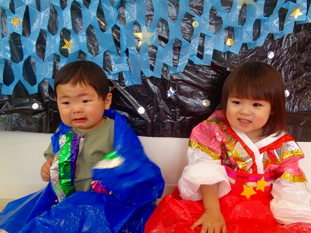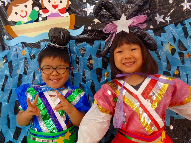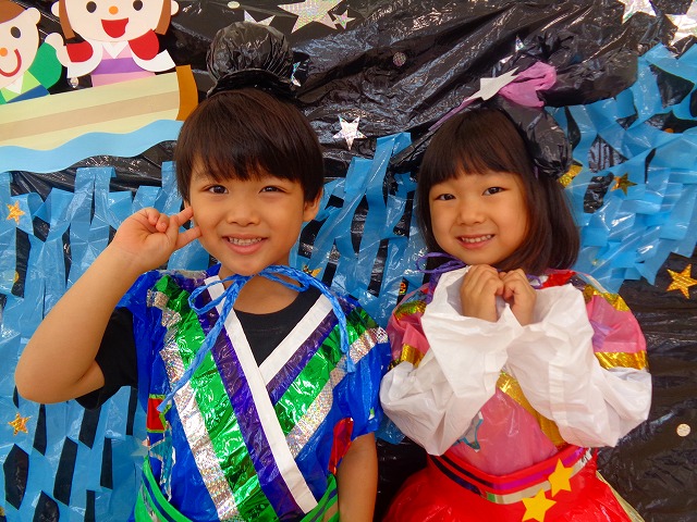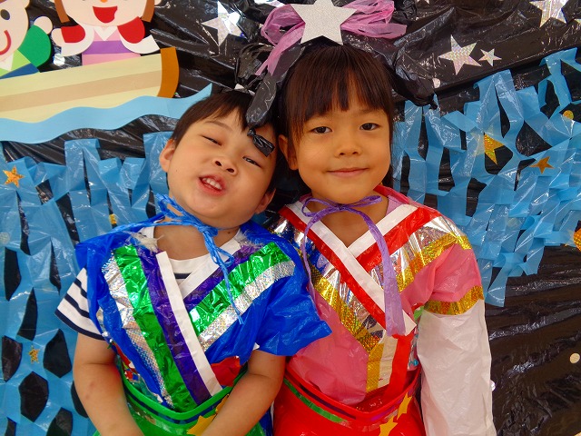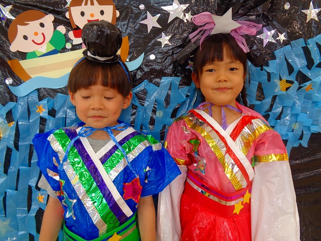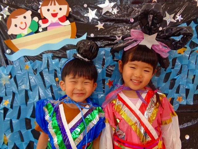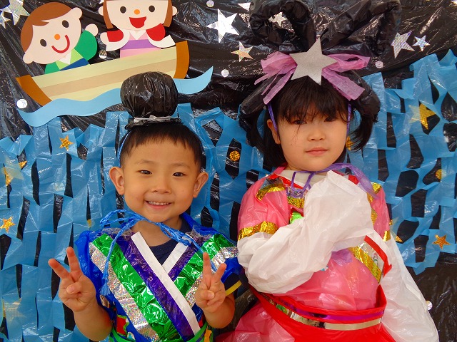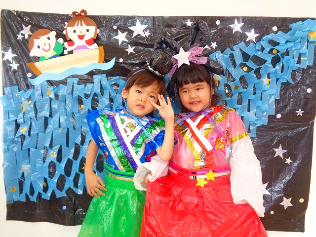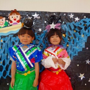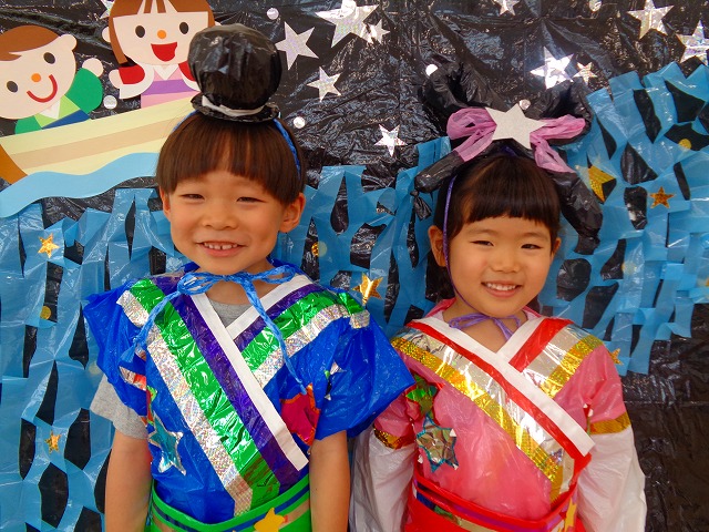 🎋たなばた会🎋 2023.07.06 ブログ ささの葉 サラサラ~🎶 たなばた会がありました❗ まずはペープサート❗ たなばたの由来やストーリー わかったかな❓ みんなしっかりと見ていました❕ その後は 織姫と彦星の衣装を着て 写真を撮りました❗ テレてしまう子 緊張して固まってしまう子...と、様々でしたが 楽しい雰囲気の中で写真を撮ることができました みんなの願いが叶いますように🌠 Tweet Share +1 Hatena Pocket RSS feedly Pin it ブログ たなばた 飾り付け🎋 🎋CWたなばた会🎋 ピックアップ記事 おしらせ ちびっこランド大分高砂園いよいよ開園です! 2018.04.02おしらせ ブログ お泊り保育(その1) 2018.06.13ブログ ブログ お泊り保育(出発編) 2018.06.09ブログ 関連記事一覧 ブログ 体育💪 2020.06.24 ブログ いもほりごっこ🍠 2020.10.20 ブログ 💃ダンスレッスン(全員参加)👯... 2022.04.05 ブログ 12月 お誕生日会🎂 2023.12.21 ブログ 🎎ひなまつり(CW訪問)🎎 2023.03.03 ブログ 親子バス遠足で別府ラクテンチに行ってきました 2018.05.14 ブログ 🎃ハロウィン🎃 2023.10.30 ブログ 👣公園へLet`sGO❗... 2020.10.14