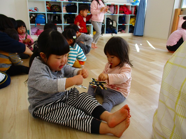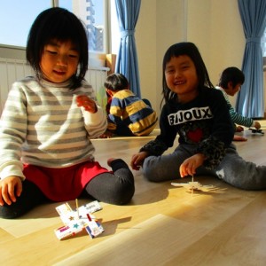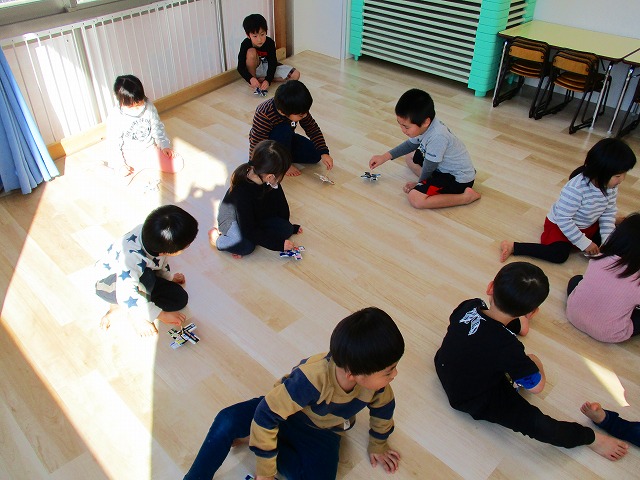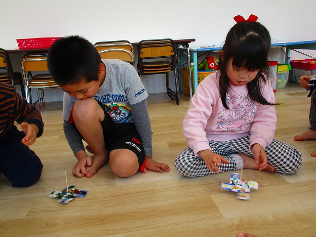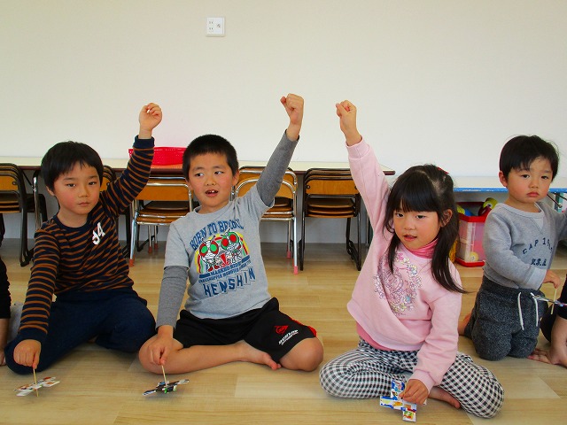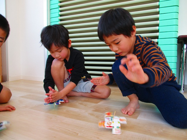 1月17日コマ回し大会の様子 2019.01.17 ブログ 今日は手作りのコマを使ってコマ回し大会をしました。それぞれ回し方にも個性があり、どうやったらたくさん回るかを考えながら楽しんでいました。 回している時の真剣な横顔と回った時の笑顔!そしてドヤ顔がとってもかわいかったです(^^)/ Tweet Share +1 Hatena Pocket RSS feedly Pin it ブログ 体を使って遊びました! 1月のお誕生日会をしました ピックアップ記事 おしらせ ちびっこランド大分高砂園いよいよ開園です! 2018.04.02おしらせ ブログ 突撃給食調査隊! 2018.07.14ブログ ブログ スイミングスクールの様子 2018.06.26ブログ 関連記事一覧 ブログ 🍰6月生まれの誕生日会🍰 2021.06.24 ブログ 4月・5月 お誕生日会🎉 2020.05.28 ブログ 朝顔制作! 2019.06.28 ブログ 🎅コンパスクリスマス会🎄 2022.12.23 ブログ 9月のお誕生日会 2019.09.28 ブログ お散歩~🎶 2021.10.20 ブログ しゃぼん玉 2019.12.06 ブログ スイミングの日のお留守番🏢 2020.08.05