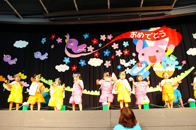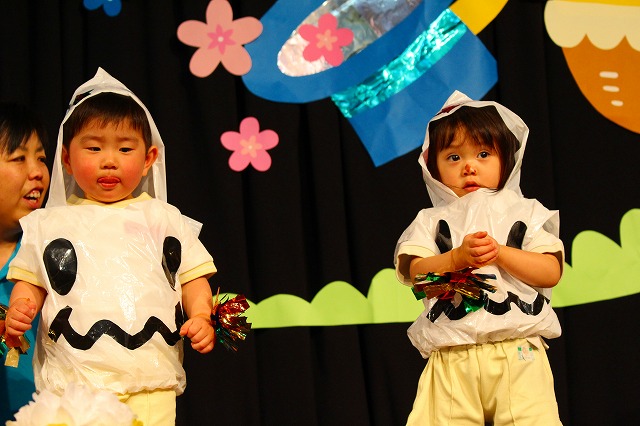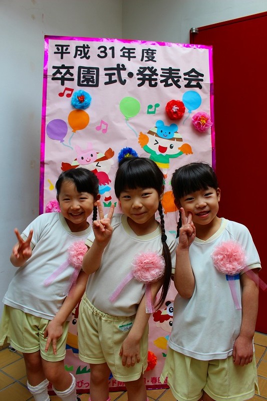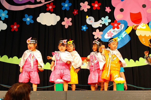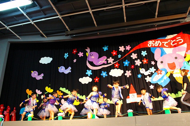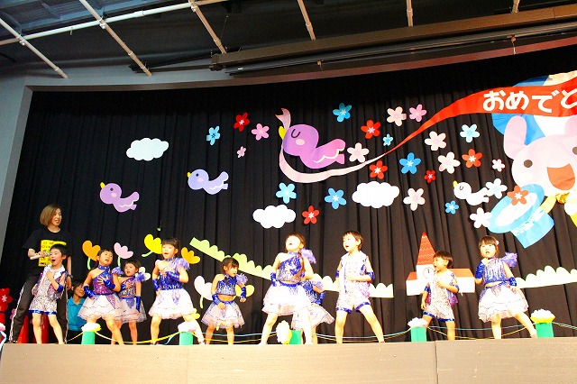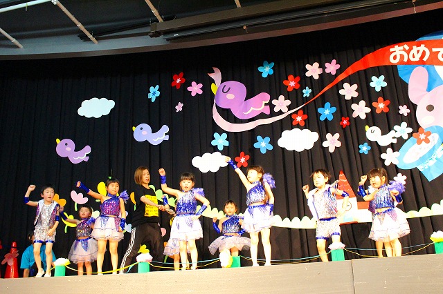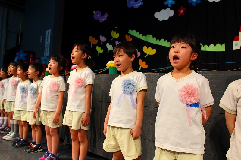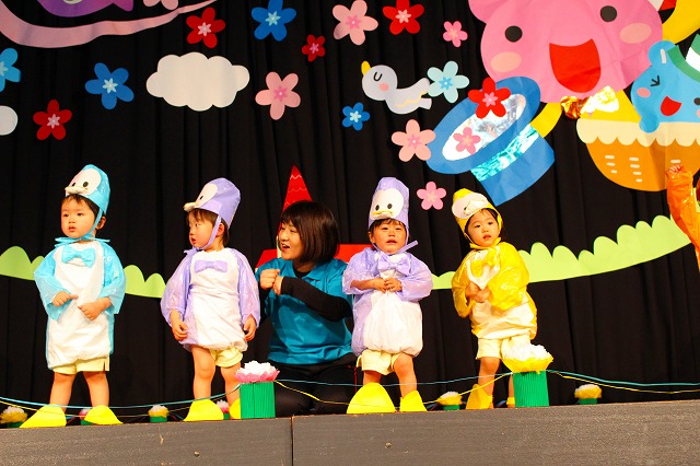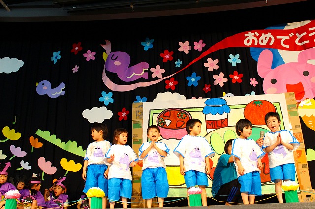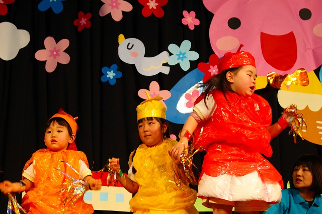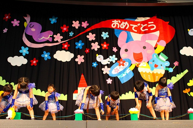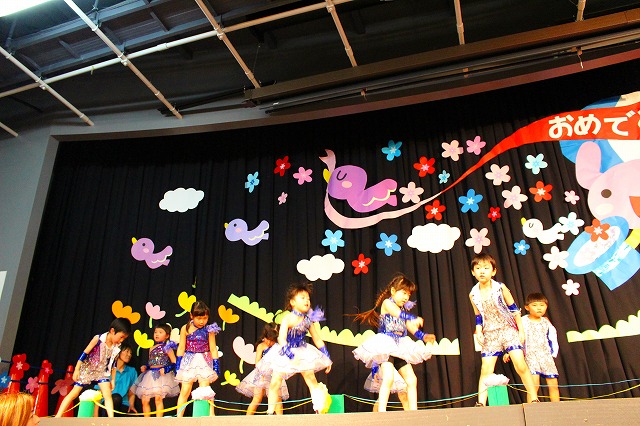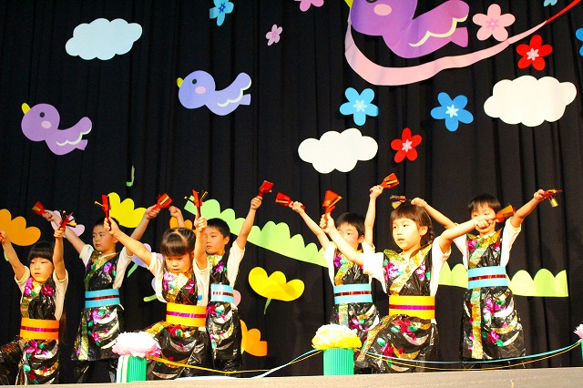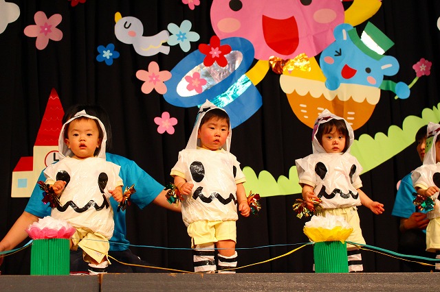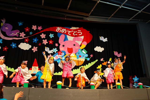 卒園式 / 発表会 2019.03.23 ブログ ちびっこランド南大分園・春日園・高砂園の合同卒園式と発表会が3月21日に行われました。頼もしいお兄さんお姉さんに成長したあお組さん16名が卒園しました。式の間もしっかりと前を向いて園長先生の言葉に耳を傾けていましたね。卒園してしまうのは寂しいけれど、これから新しい旅立ちの始まりです。 発表会 もも組さん 「おべんとうばこのうた」 「のねずみ」「バゲラッチョ」 あか組さん「ペンギンダンス」「ドキドキ平均台」 き組さん「小さなヒーロー」 ダンススクール 週に一回ちはる先生に教えてもらってます。 オペレッタ「やさいマン」 みどり組さん 「USA」 ふじ組さん「パプリカ」 あお組さん 「百鬼夜行」 Tweet Share +1 Hatena Pocket RSS feedly Pin it ブログ 3月のお知らせ 発表会(パスワード保護あり) ピックアップ記事 ブログ お泊り保育(出発編) 2018.06.09ブログ ブログ スイミングスクールの様子 2018.06.26ブログ ブログ 突撃給食調査隊! 2018.07.14ブログ 関連記事一覧 ブログ 歯科検診・内科検診の様子です 2018.11.22 ブログ 🌞大掃除🌞(12/17) 2020.12.20 ブログ 🎃HAPPY HALLOWEEN IN 英会... 2021.10.28 ブログ ☆内科歯科検診☆彡 2019.11.15 ブログ 🎇あきまつり🎇 2023.10.16 ブログ 🎂8月生まれのお誕生日会🍰 2021.08.26 ブログ お外でシャボン玉あそび 2018.11.01 ブログ 1月製作 2024.01.25