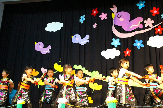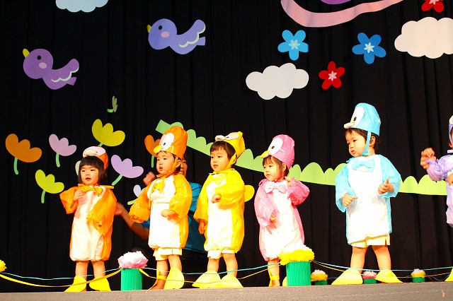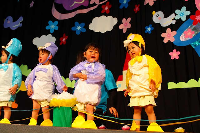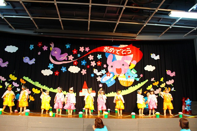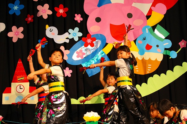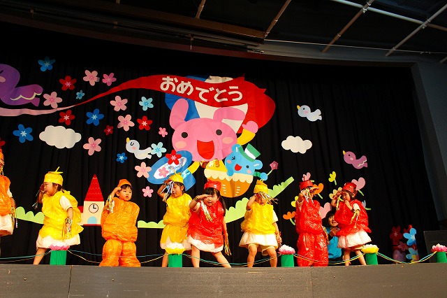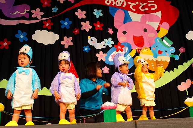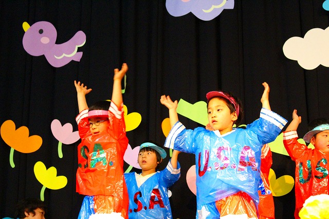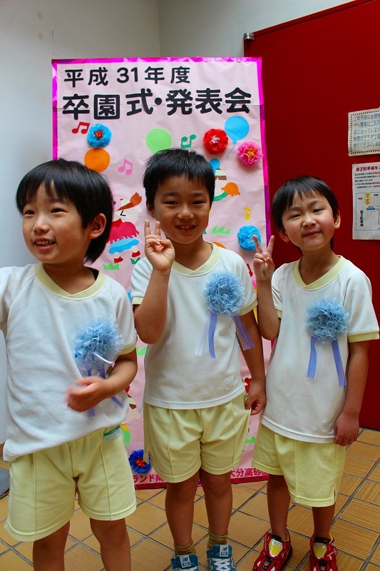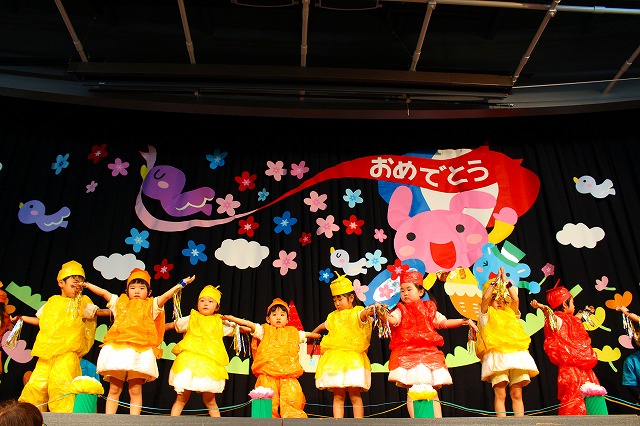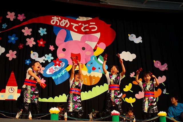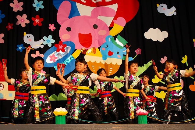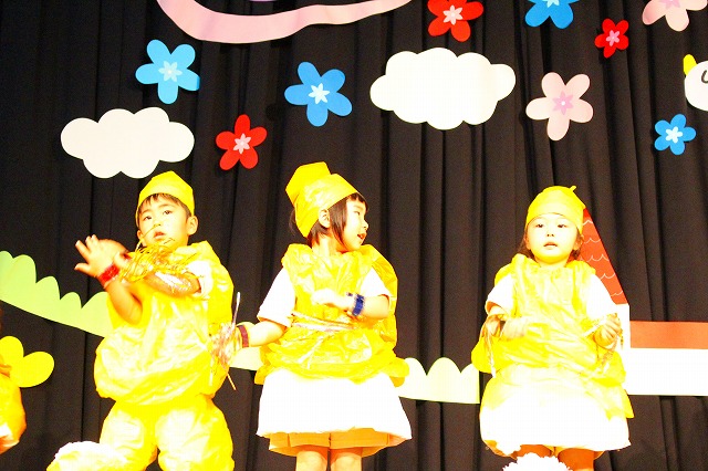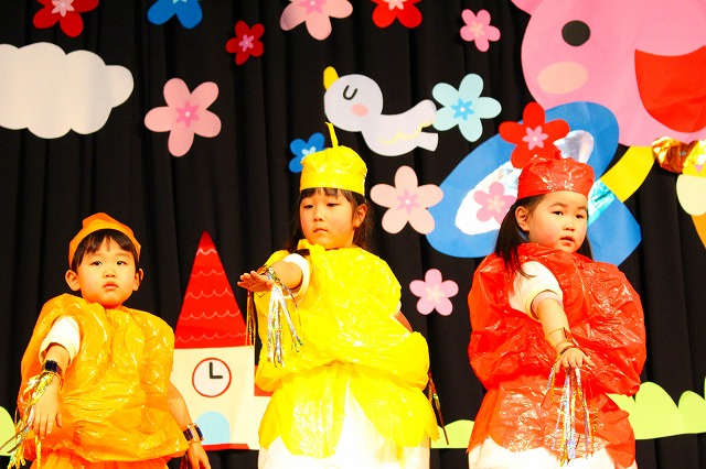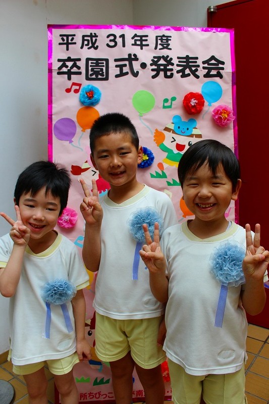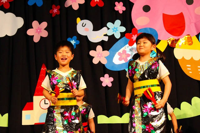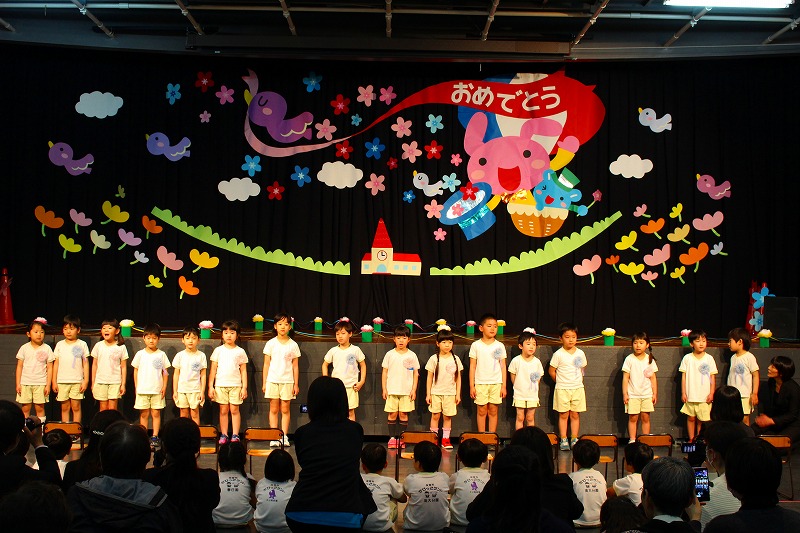 卒園式 / 発表会 2019.03.23 ブログ ちびっこランド南大分園・春日園・高砂園の合同卒園式と発表会が3月21日に行われました。頼もしいお兄さんお姉さんに成長したあお組さん16名が卒園しました。式の間もしっかりと前を向いて園長先生の言葉に耳を傾けていましたね。卒園してしまうのは寂しいけれど、これから新しい旅立ちの始まりです。 発表会 もも組さん 「おべんとうばこのうた」 「のねずみ」「バゲラッチョ」 あか組さん「ペンギンダンス」「ドキドキ平均台」 き組さん「小さなヒーロー」 ダンススクール 週に一回ちはる先生に教えてもらってます。 オペレッタ「やさいマン」 みどり組さん 「USA」 ふじ組さん「パプリカ」 あお組さん 「百鬼夜行」 Tweet Share +1 Hatena Pocket RSS feedly Pin it ブログ 3月のお知らせ 発表会(パスワード保護あり) ピックアップ記事 ブログ お泊り保育(出発編) 2018.06.09ブログ ブログ スイミングスクールの様子 2018.06.26ブログ ブログ 突撃給食調査隊! 2018.07.14ブログ 関連記事一覧 ブログ 歯科検診・内科検診の様子です 2018.11.22 ブログ 🌞大掃除🌞(12/17) 2020.12.20 ブログ 🎃HAPPY HALLOWEEN IN 英会... 2021.10.28 ブログ ☆内科歯科検診☆彡 2019.11.15 ブログ 🎇あきまつり🎇 2023.10.16 ブログ 🎂8月生まれのお誕生日会🍰 2021.08.26 ブログ お外でシャボン玉あそび 2018.11.01 ブログ 1月製作 2024.01.25