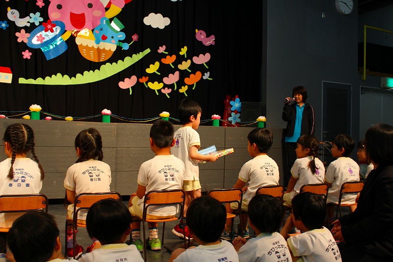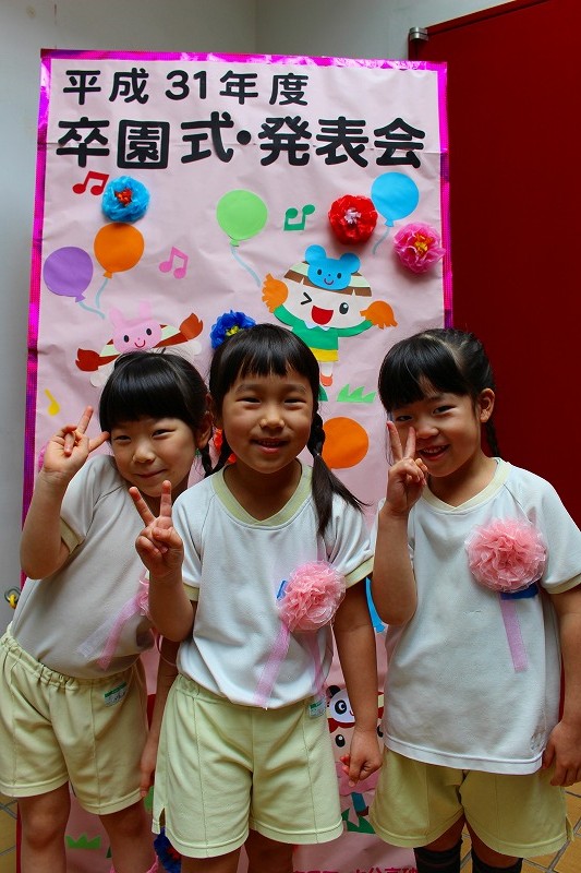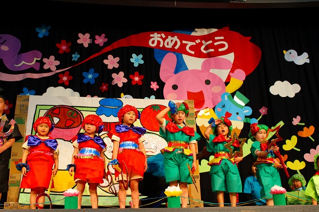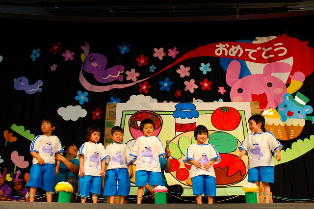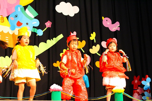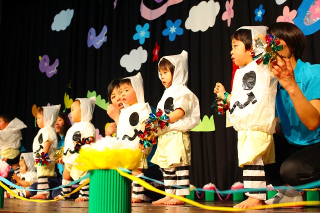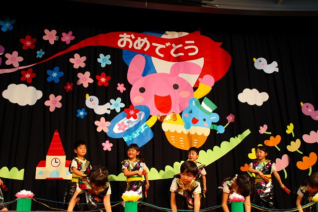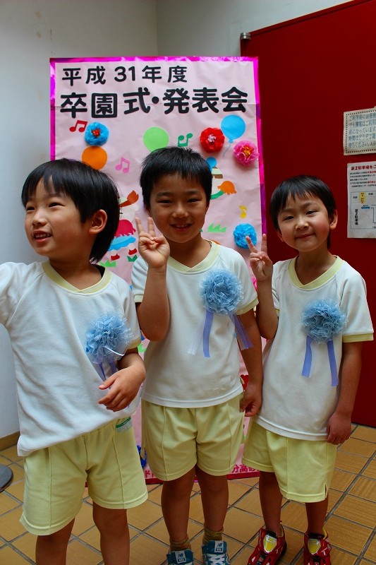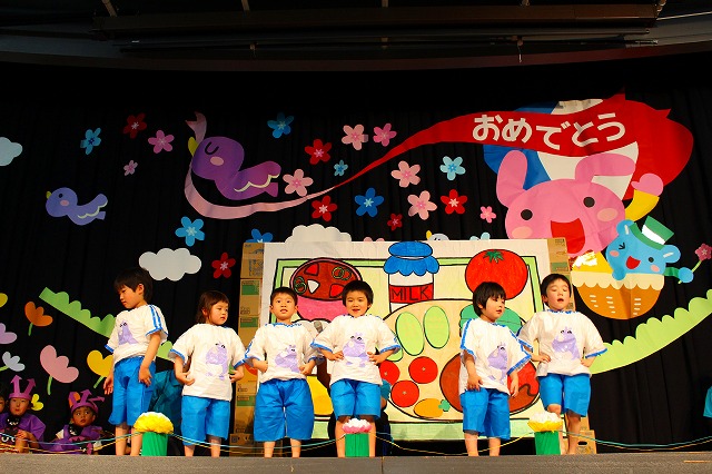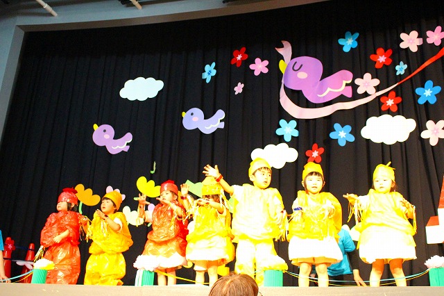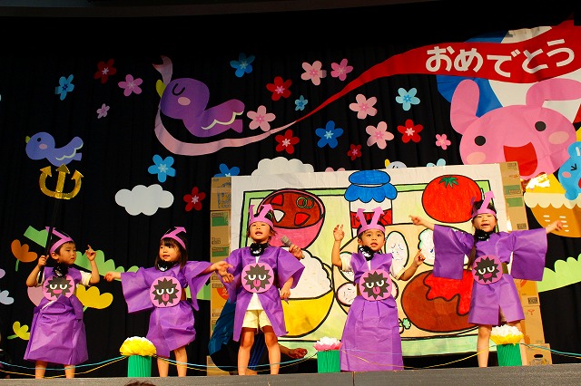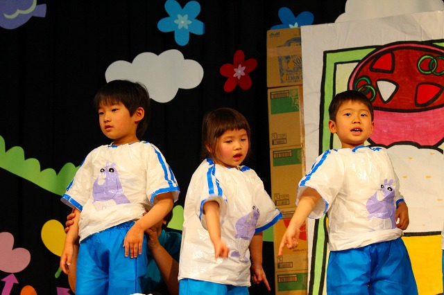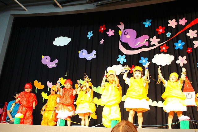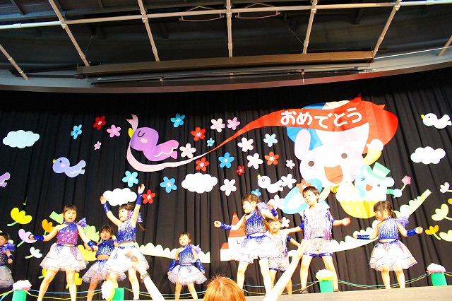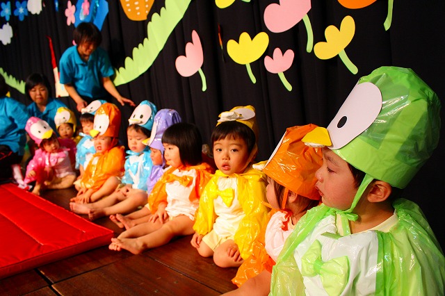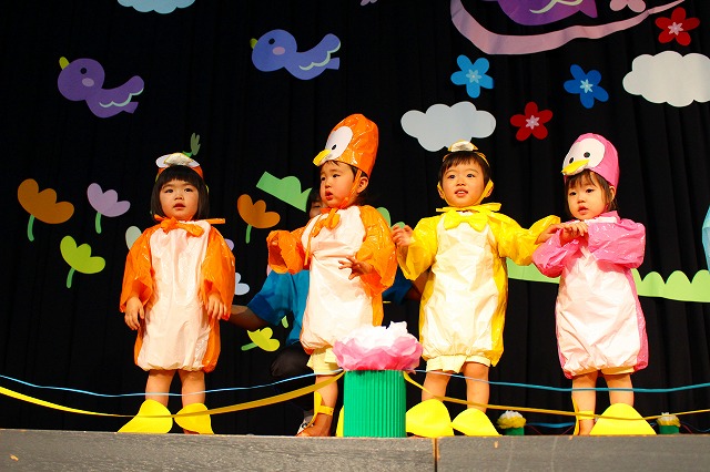 卒園式 / 発表会 2019.03.23 ブログ ちびっこランド南大分園・春日園・高砂園の合同卒園式と発表会が3月21日に行われました。頼もしいお兄さんお姉さんに成長したあお組さん16名が卒園しました。式の間もしっかりと前を向いて園長先生の言葉に耳を傾けていましたね。卒園してしまうのは寂しいけれど、これから新しい旅立ちの始まりです。 発表会 もも組さん 「おべんとうばこのうた」 「のねずみ」「バゲラッチョ」 あか組さん「ペンギンダンス」「ドキドキ平均台」 き組さん「小さなヒーロー」 ダンススクール 週に一回ちはる先生に教えてもらってます。 オペレッタ「やさいマン」 みどり組さん 「USA」 ふじ組さん「パプリカ」 あお組さん 「百鬼夜行」 Tweet Share +1 Hatena Pocket RSS feedly Pin it ブログ 3月のお知らせ 発表会(パスワード保護あり) ピックアップ記事 ブログ お泊り保育(出発編) 2018.06.09ブログ ブログ スイミングスクールの様子 2018.06.26ブログ ブログ 突撃給食調査隊! 2018.07.14ブログ 関連記事一覧 ブログ 歯科検診・内科検診の様子です 2018.11.22 ブログ 🌞大掃除🌞(12/17) 2020.12.20 ブログ 🎃HAPPY HALLOWEEN IN 英会... 2021.10.28 ブログ ☆内科歯科検診☆彡 2019.11.15 ブログ 🎇あきまつり🎇 2023.10.16 ブログ 🎂8月生まれのお誕生日会🍰 2021.08.26 ブログ お外でシャボン玉あそび 2018.11.01 ブログ 1月製作 2024.01.25