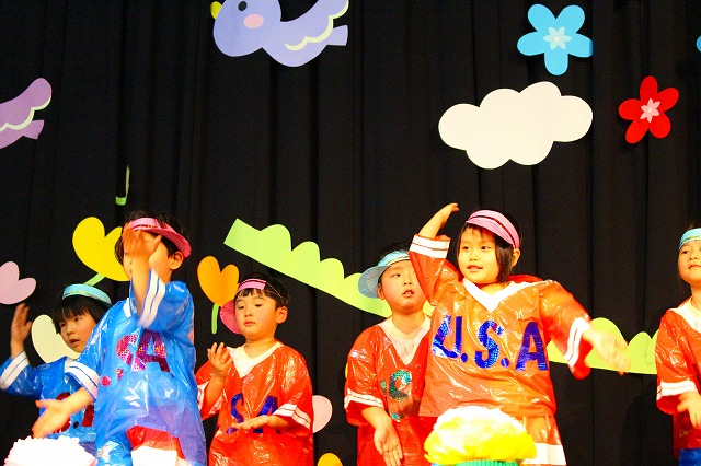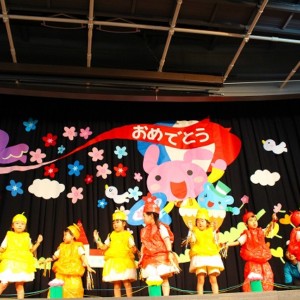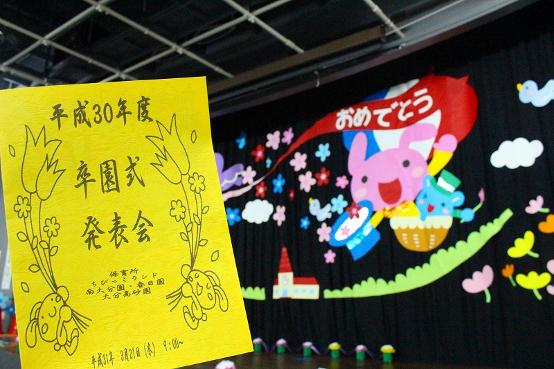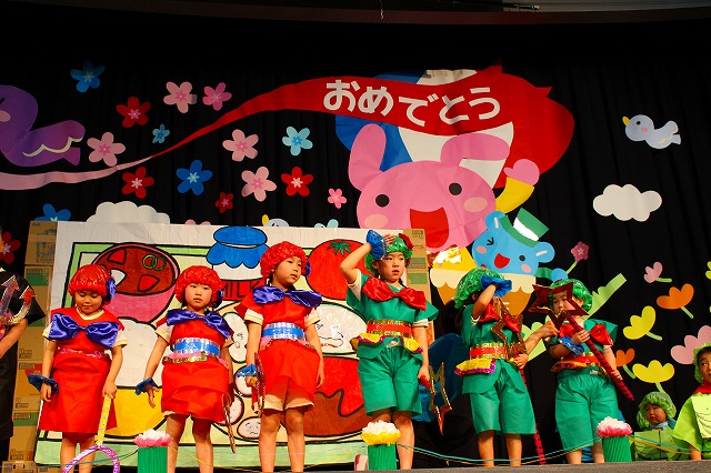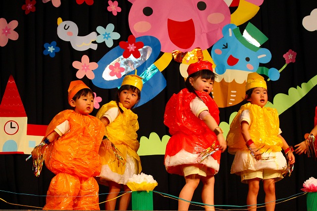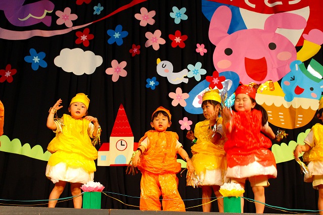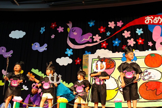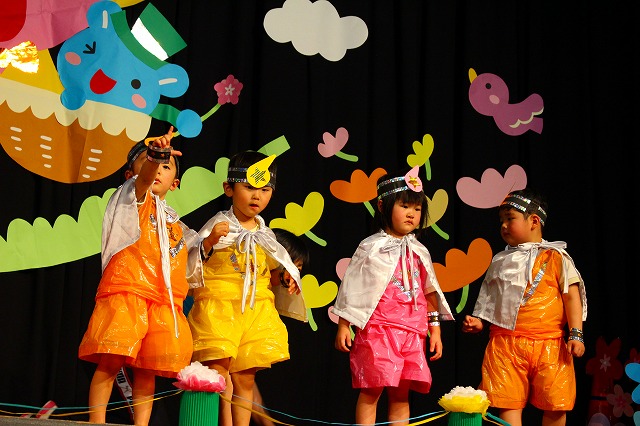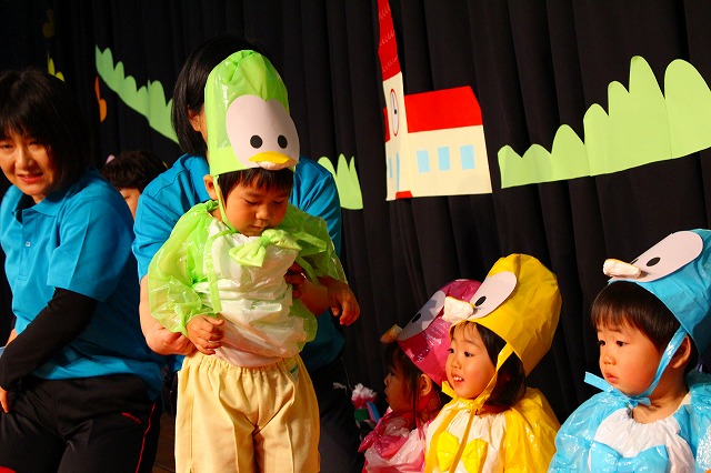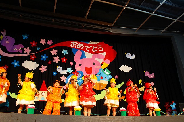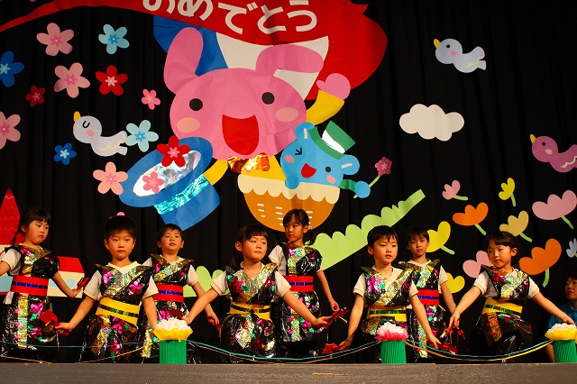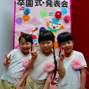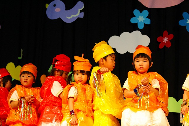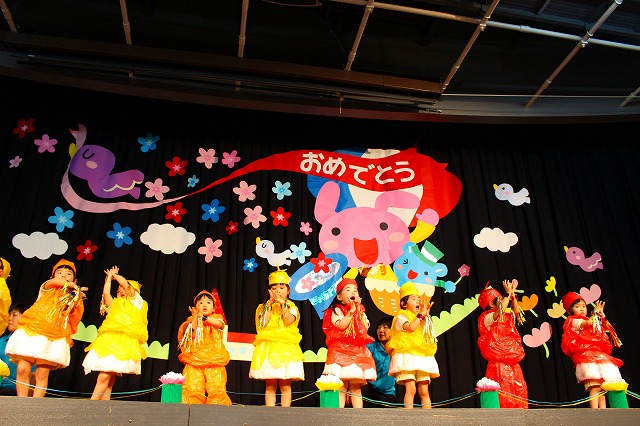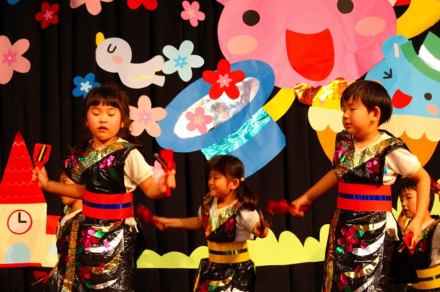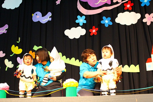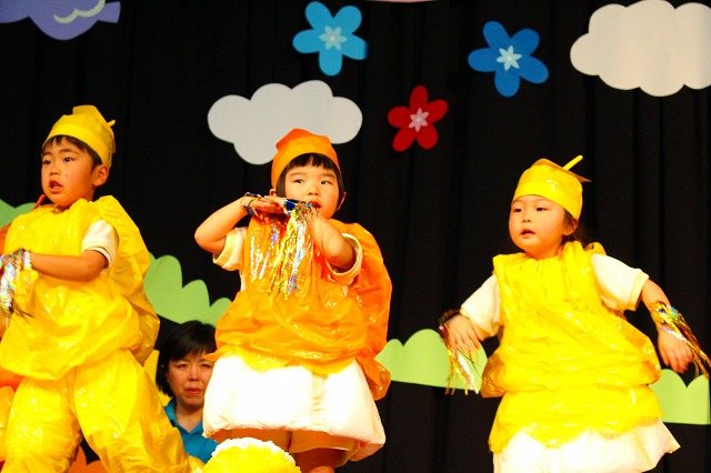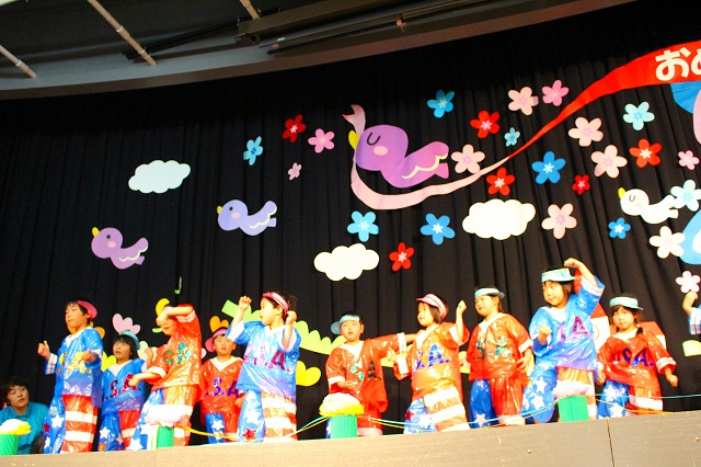 卒園式 / 発表会 2019.03.23 ブログ ちびっこランド南大分園・春日園・高砂園の合同卒園式と発表会が3月21日に行われました。頼もしいお兄さんお姉さんに成長したあお組さん16名が卒園しました。式の間もしっかりと前を向いて園長先生の言葉に耳を傾けていましたね。卒園してしまうのは寂しいけれど、これから新しい旅立ちの始まりです。 発表会 もも組さん 「おべんとうばこのうた」 「のねずみ」「バゲラッチョ」 あか組さん「ペンギンダンス」「ドキドキ平均台」 き組さん「小さなヒーロー」 ダンススクール 週に一回ちはる先生に教えてもらってます。 オペレッタ「やさいマン」 みどり組さん 「USA」 ふじ組さん「パプリカ」 あお組さん 「百鬼夜行」 Tweet Share +1 Hatena Pocket RSS feedly Pin it ブログ 3月のお知らせ 発表会(パスワード保護あり) ピックアップ記事 ブログ お泊り保育(出発編) 2018.06.09ブログ ブログ スイミングスクールの様子 2018.06.26ブログ ブログ 突撃給食調査隊! 2018.07.14ブログ 関連記事一覧 ブログ 歯科検診・内科検診の様子です 2018.11.22 ブログ 🌞大掃除🌞(12/17) 2020.12.20 ブログ 🎃HAPPY HALLOWEEN IN 英会... 2021.10.28 ブログ ☆内科歯科検診☆彡 2019.11.15 ブログ 🎇あきまつり🎇 2023.10.16 ブログ 🎂8月生まれのお誕生日会🍰 2021.08.26 ブログ お外でシャボン玉あそび 2018.11.01 ブログ 1月製作 2024.01.25