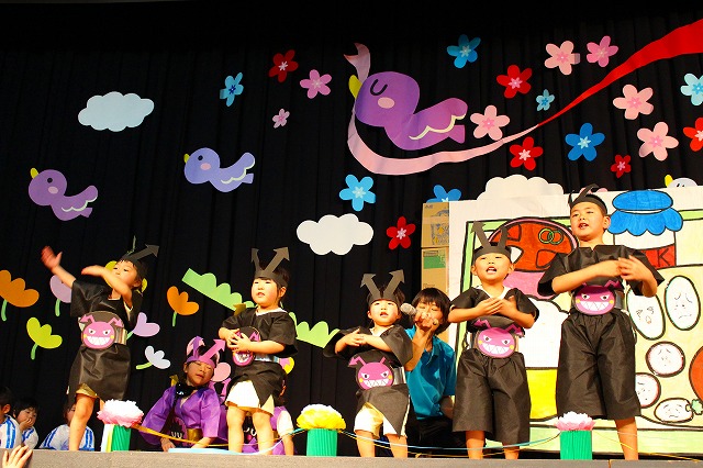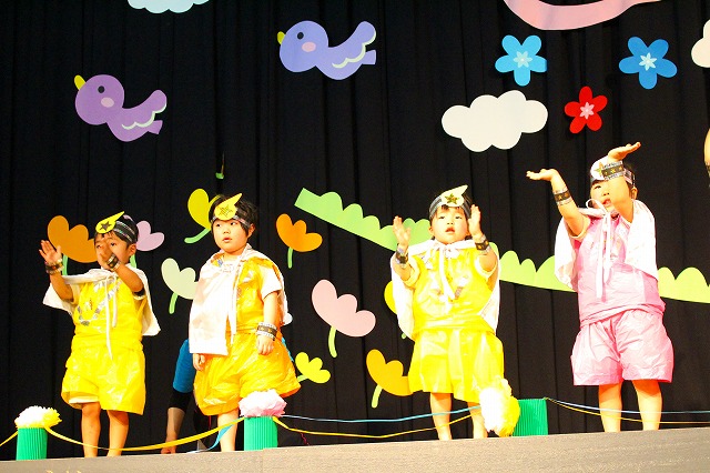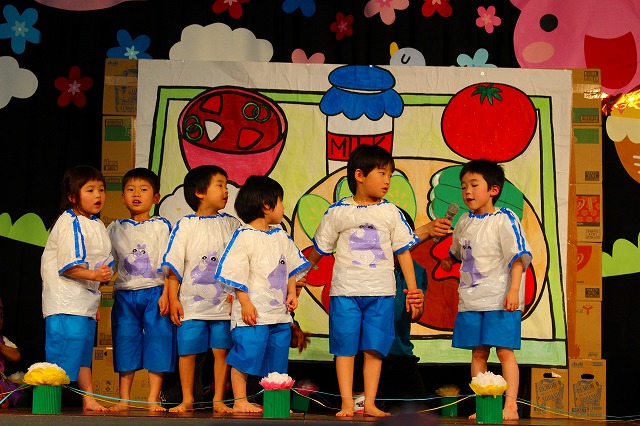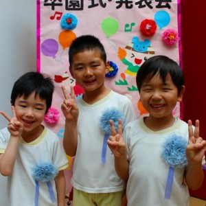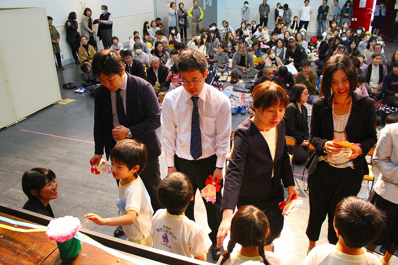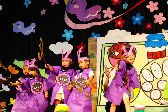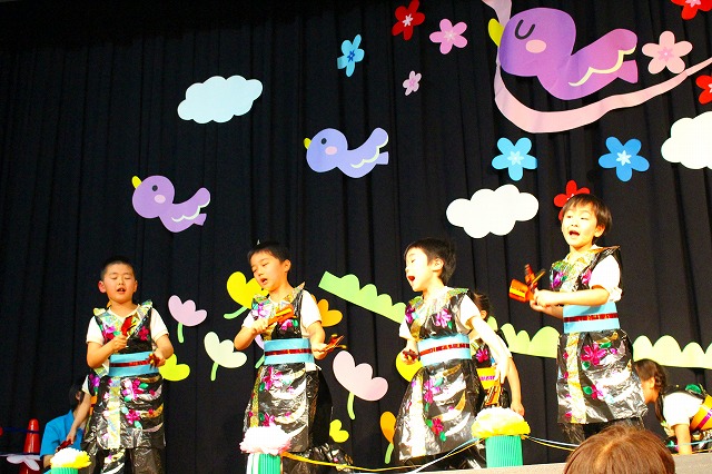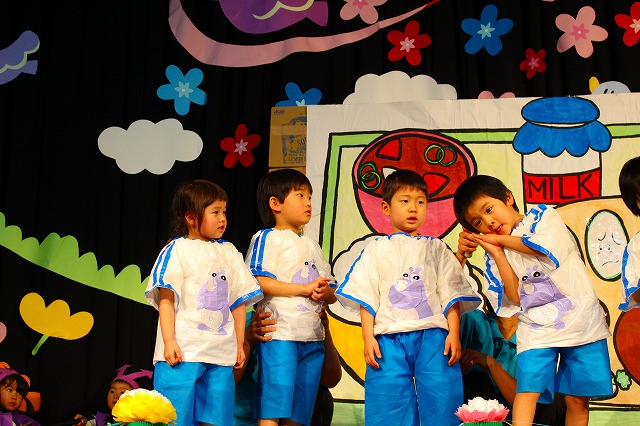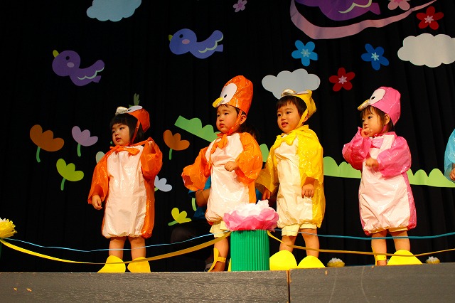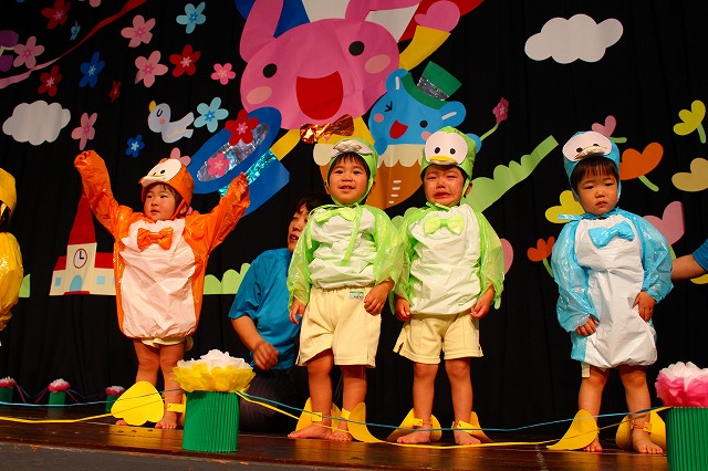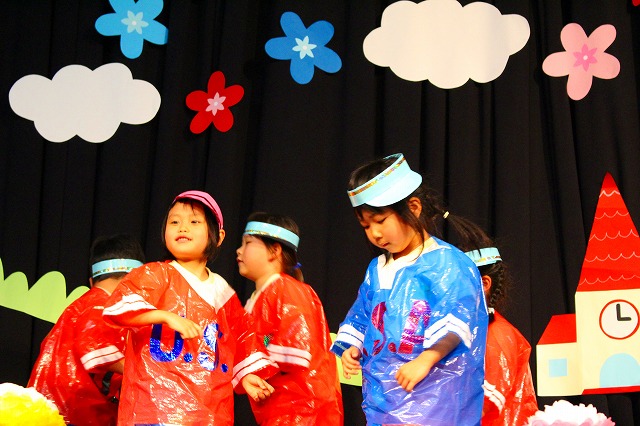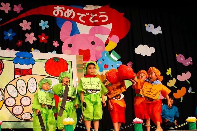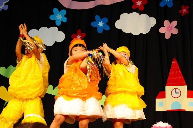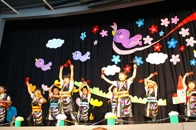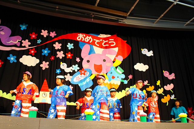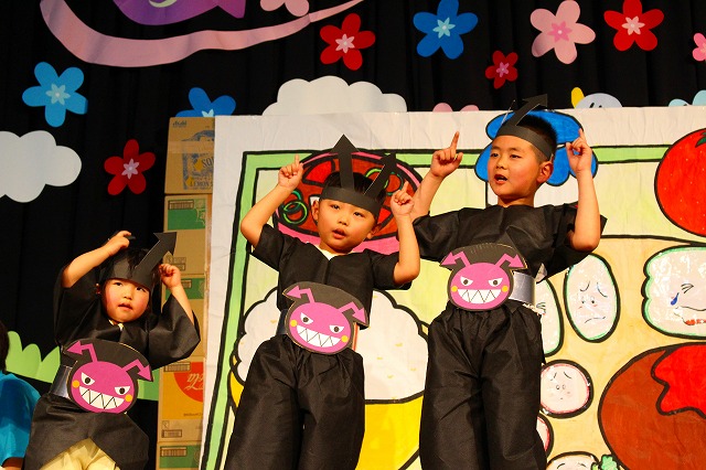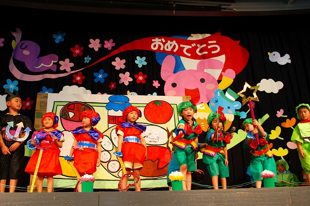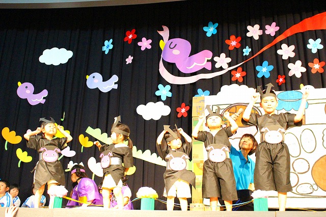 卒園式 / 発表会 2019.03.23 ブログ ちびっこランド南大分園・春日園・高砂園の合同卒園式と発表会が3月21日に行われました。頼もしいお兄さんお姉さんに成長したあお組さん16名が卒園しました。式の間もしっかりと前を向いて園長先生の言葉に耳を傾けていましたね。卒園してしまうのは寂しいけれど、これから新しい旅立ちの始まりです。 発表会 もも組さん 「おべんとうばこのうた」 「のねずみ」「バゲラッチョ」 あか組さん「ペンギンダンス」「ドキドキ平均台」 き組さん「小さなヒーロー」 ダンススクール 週に一回ちはる先生に教えてもらってます。 オペレッタ「やさいマン」 みどり組さん 「USA」 ふじ組さん「パプリカ」 あお組さん 「百鬼夜行」 Tweet Share +1 Hatena Pocket RSS feedly Pin it ブログ 3月のお知らせ 発表会(パスワード保護あり) ピックアップ記事 ブログ お泊り保育(出発編) 2018.06.09ブログ ブログ スイミングスクールの様子 2018.06.26ブログ ブログ 突撃給食調査隊! 2018.07.14ブログ 関連記事一覧 ブログ 歯科検診・内科検診の様子です 2018.11.22 ブログ 🌞大掃除🌞(12/17) 2020.12.20 ブログ 🎃HAPPY HALLOWEEN IN 英会... 2021.10.28 ブログ ☆内科歯科検診☆彡 2019.11.15 ブログ 🎇あきまつり🎇 2023.10.16 ブログ 🎂8月生まれのお誕生日会🍰 2021.08.26 ブログ お外でシャボン玉あそび 2018.11.01 ブログ 1月製作 2024.01.25