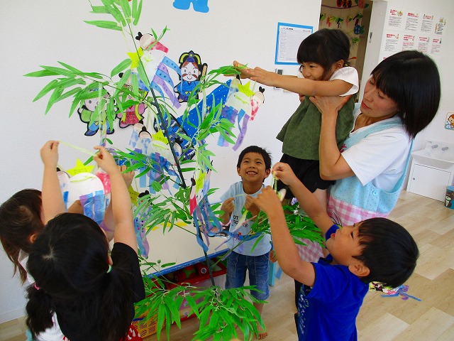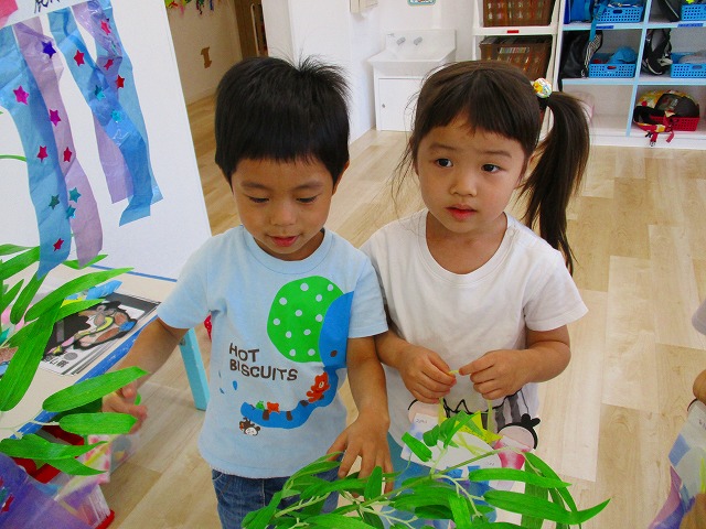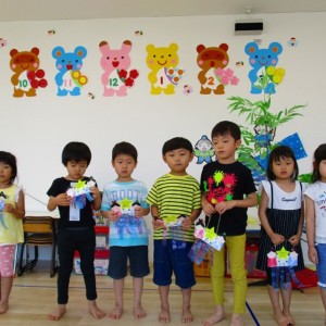 七夕の飾りつけ☆ 2019.06.28 ブログ かわいい織姫と彦星を作って、お願い事を書きました。クリスマス???というようなお願い事もありましたが・・・ 「イケメンになりたい」「お金持ちになりたい」などなどかわいいものが、たくさんありました。みんなの願いが届きます様に☆☆☆ Tweet Share +1 Hatena Pocket RSS feedly Pin it ブログ 年長さんお泊り保育で犬飼リバーパークへ 朝顔制作! ピックアップ記事 おしらせ ちびっこランド大分高砂園いよいよ開園です! 2018.04.02おしらせ ブログ 突撃給食調査隊! 2018.07.14ブログ ブログ スイミングスクールの様子 2018.06.26ブログ 関連記事一覧 ブログ 😊スライム遊び😊 2022.07.15 ブログ 体を使って遊びました! 2019.01.15 ブログ 保護中: 発表会 第一部🎉 2023.03.26 ブログ 保護中: 9/21大運動会 2020.09.21 ブログ 園の様子😊 2020.03.24 ブログ お誕生日会🎂 2020.06.25 ブログ コマ回し大会 2020.01.22 ブログ 🎄クリスマス会🎄 2023.12.25