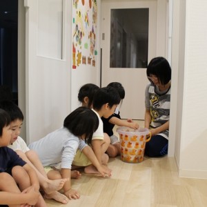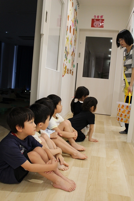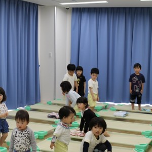 年長さんはお昼寝の時間が短いので、小さいおともだちがまだ寝ている間に先生に集められ、秘密の特訓を行います