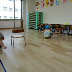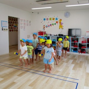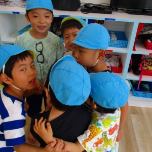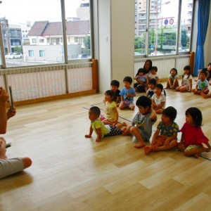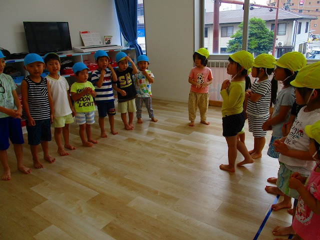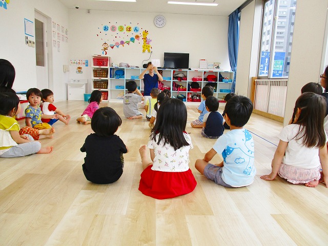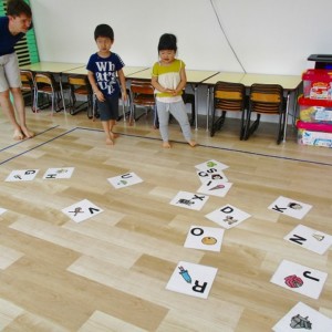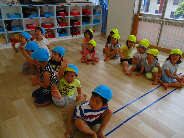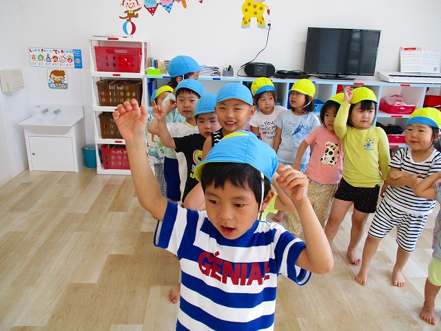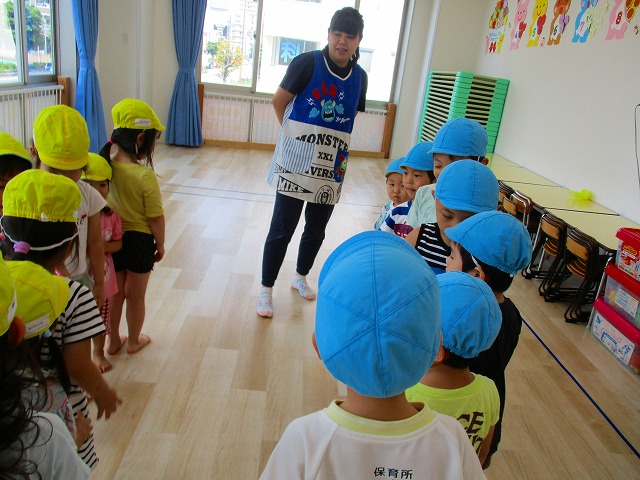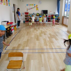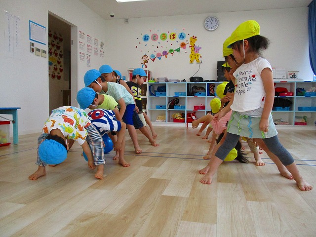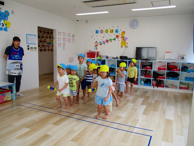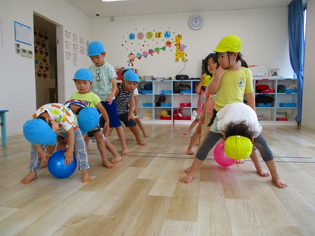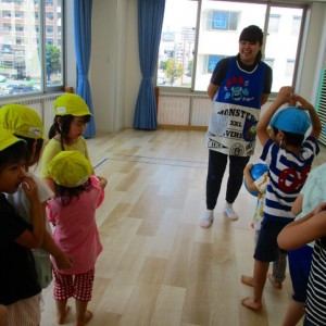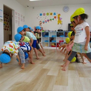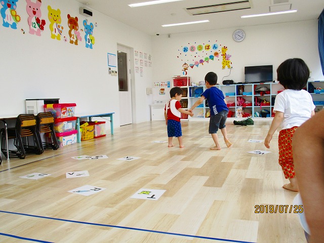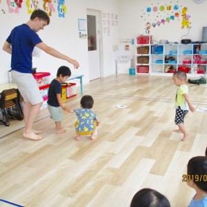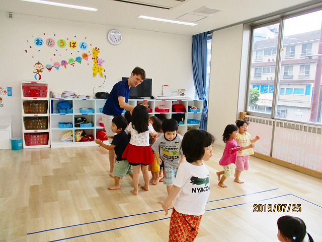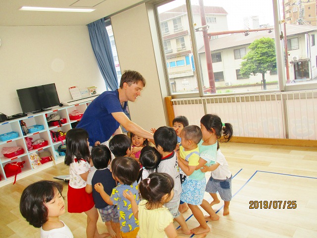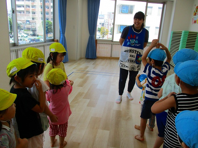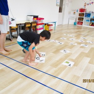 毎週、みんなが楽しみにしているデイビット先生の英会話♪ボールを使ったり、カードを使ったり、毎週いろいろな道具を使って、英単語を身近に感じれるよう丁寧に教えて下さってます♪そんなデイビット先生を子どもたちは大好きです。