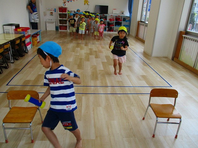 男の子は「チームジオウ」女の子は「チームプリキュア」自分たちでチーム名を決めて、いざ勝負!!どの競技もみんな真剣です!!どういう並び順が勝てるのか・・・など自分たちで考えながら工夫して戦っていました。いい汗かきましたよっ✨✨