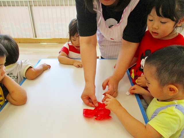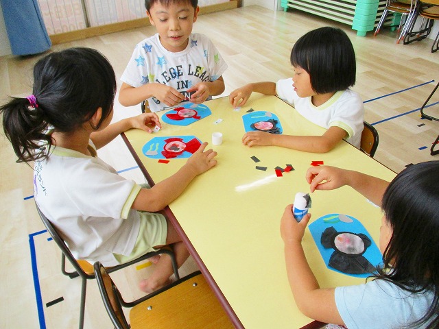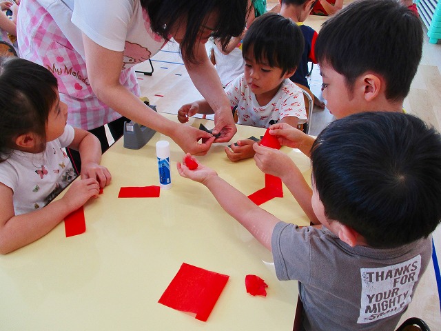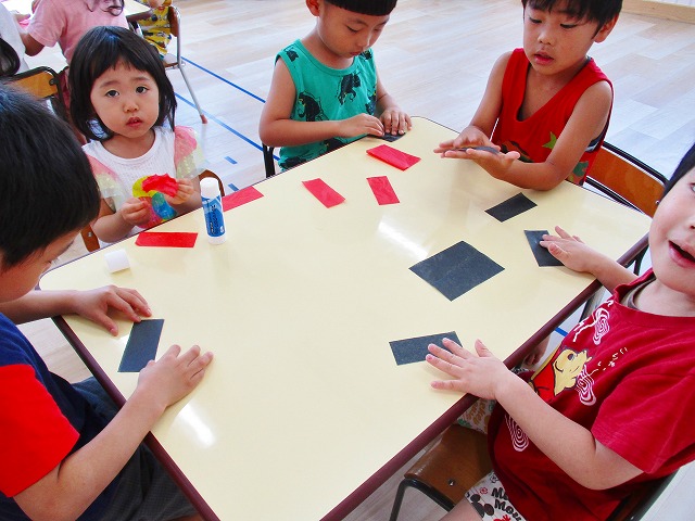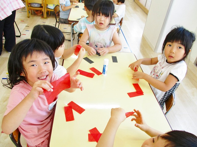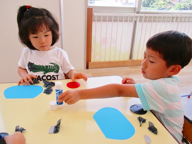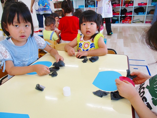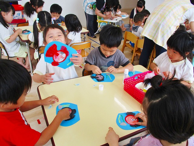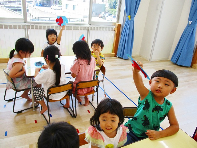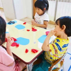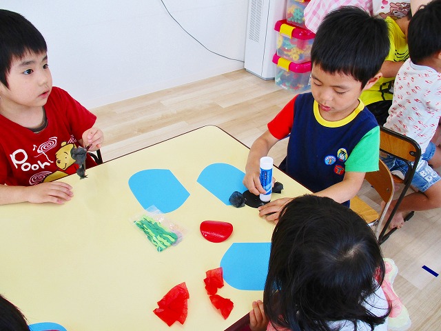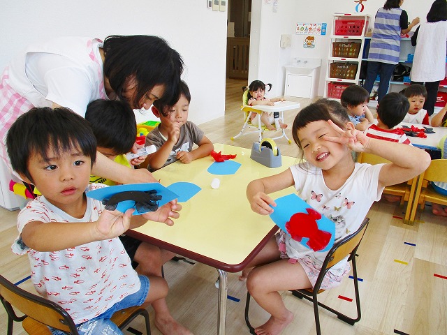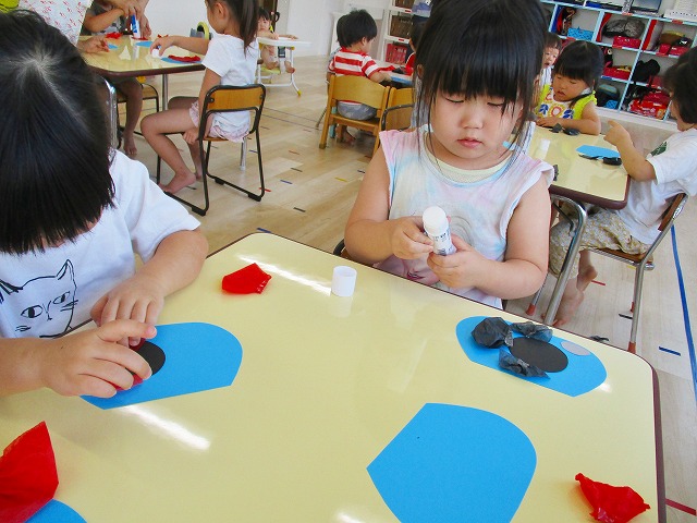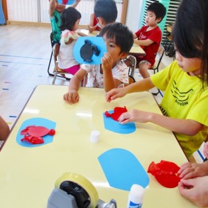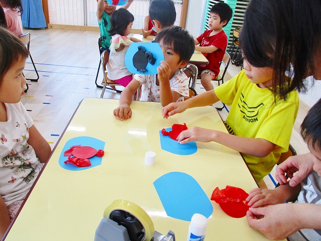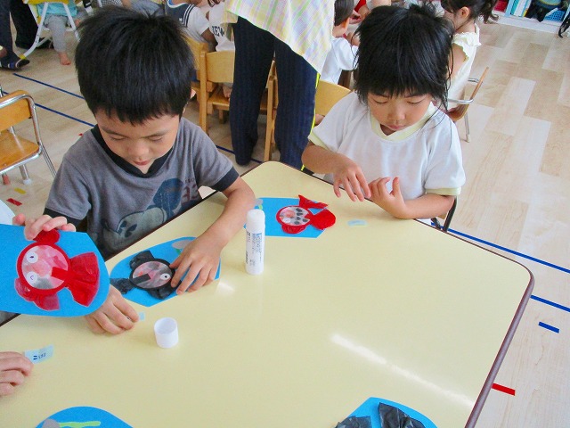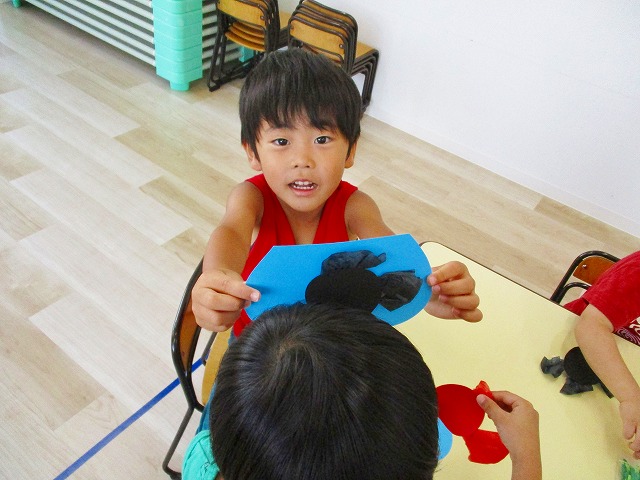 🌻製作 今回は「金魚」の製作をしました。水草を貼ったり、尾びれ背びれをお花紙で作ったり。ひだを作るのに苦戦していましたが、みんなとても上手に仕上げてくれました。かわいい金魚が出来上がりましたよ!